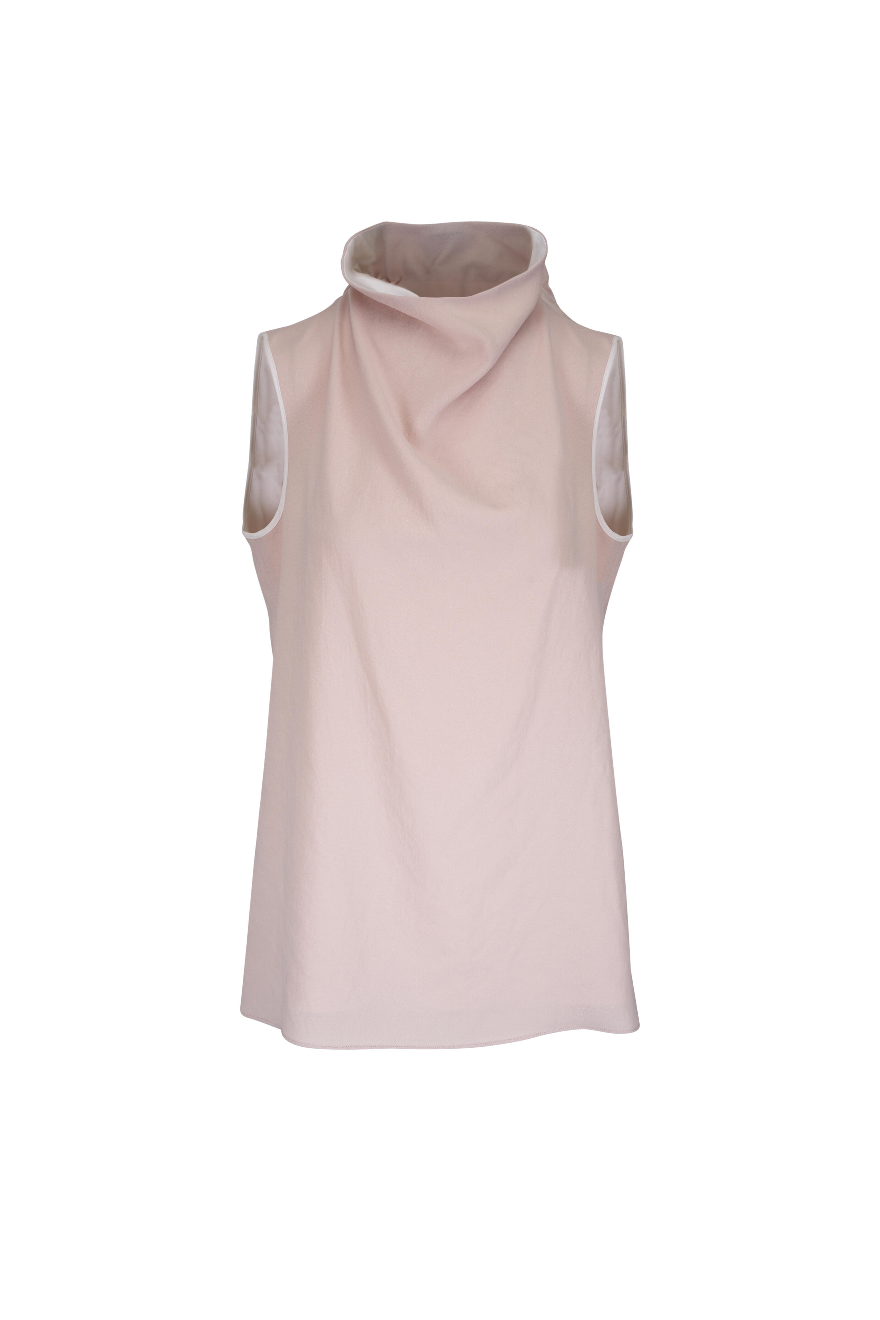 - Cowl neckline; back-neck elasticized ribbon cinch detail