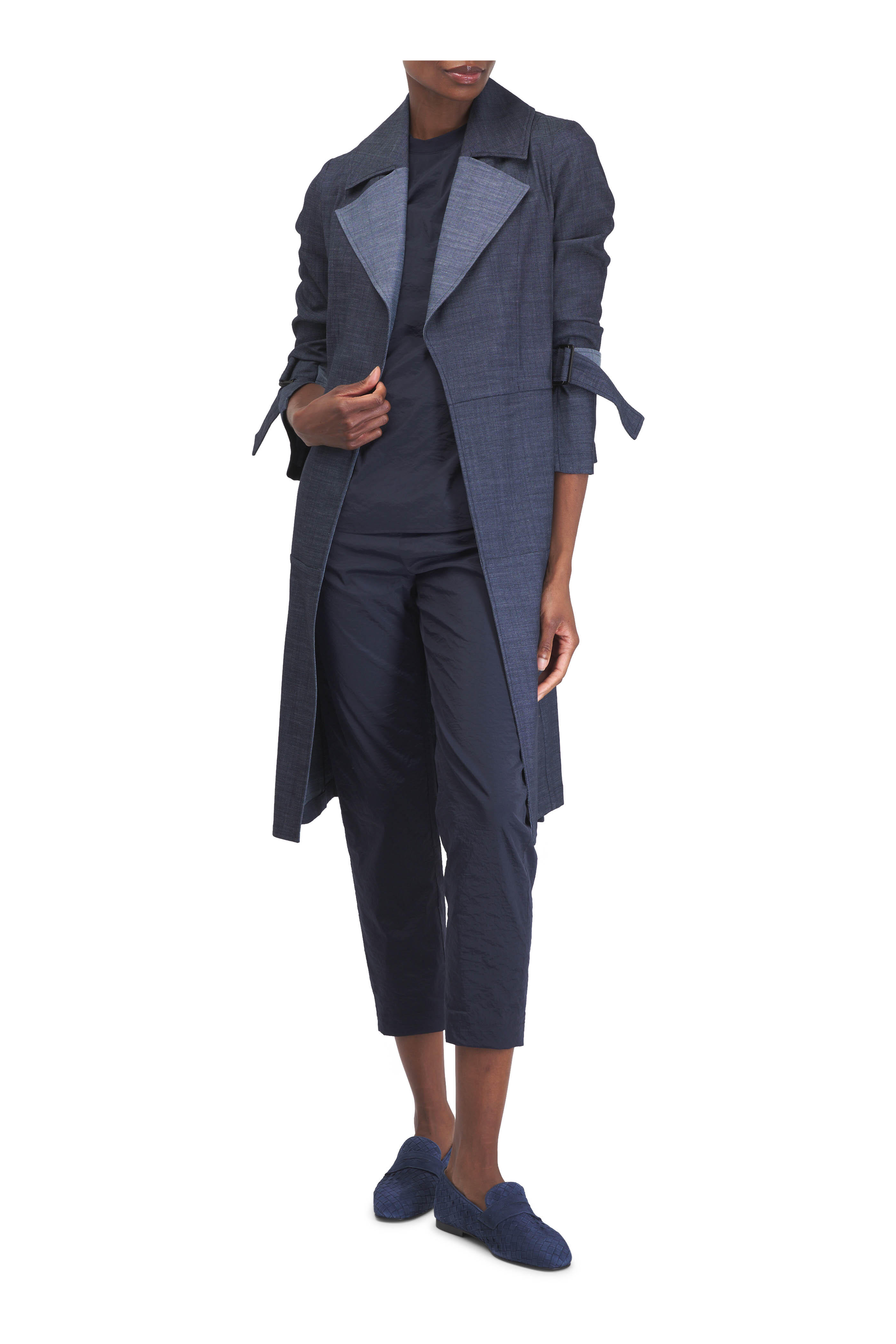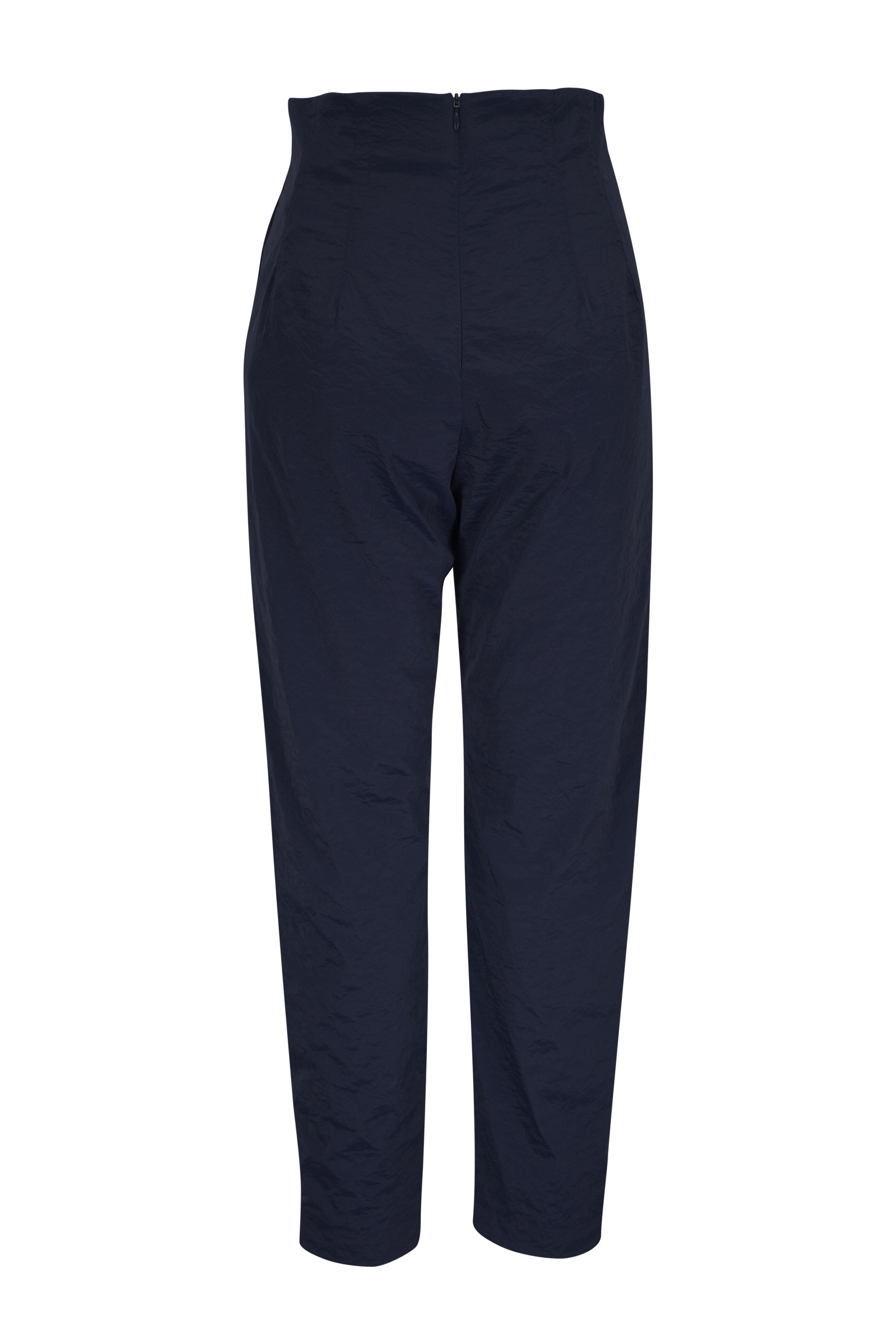 Banded waistband; concealed back zip. Side slip pockets. Straight hem. Made in Italy. 27" inseam (size xs). 89% Polyamide, 11% Polyurethane; lined. Dry clean.
