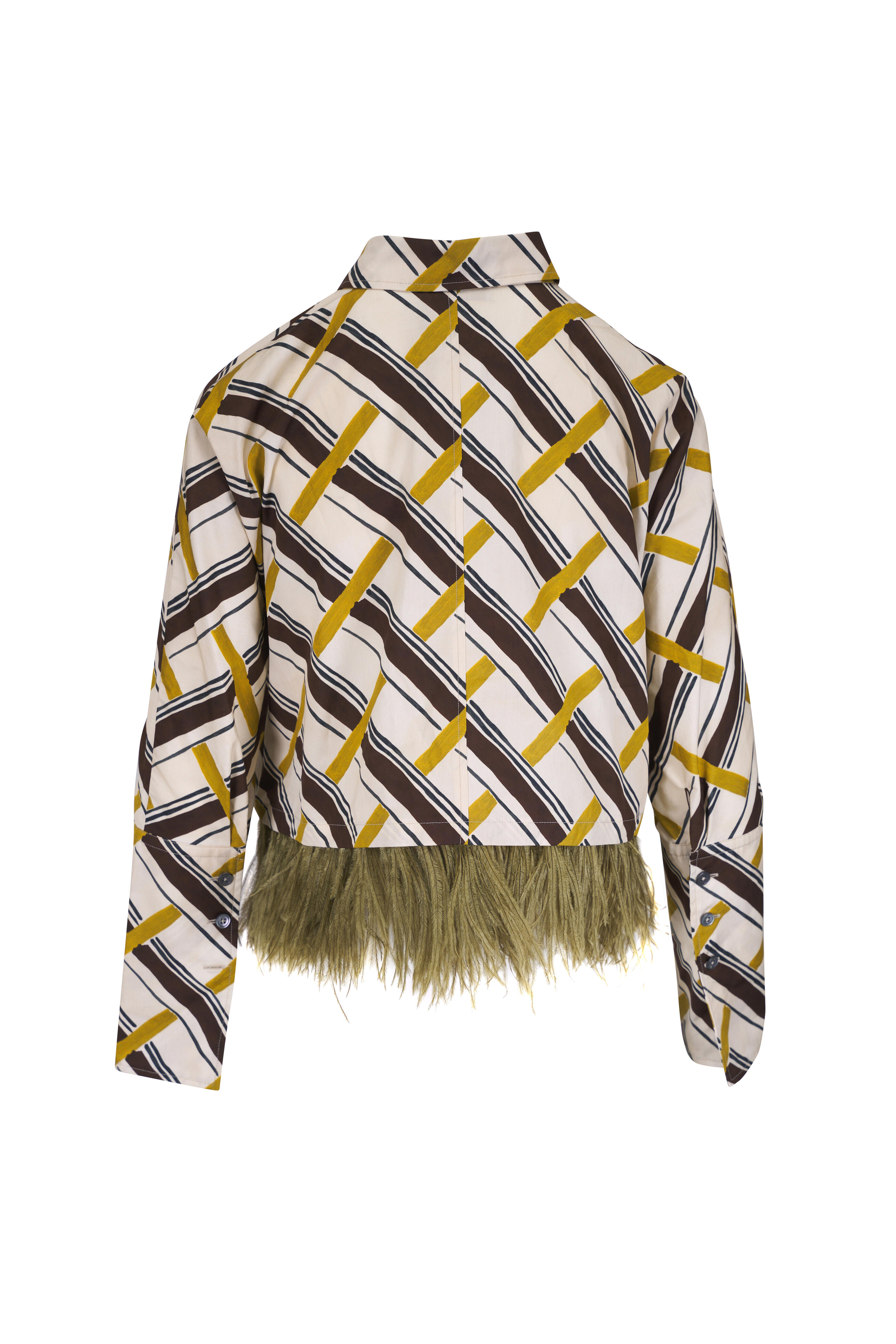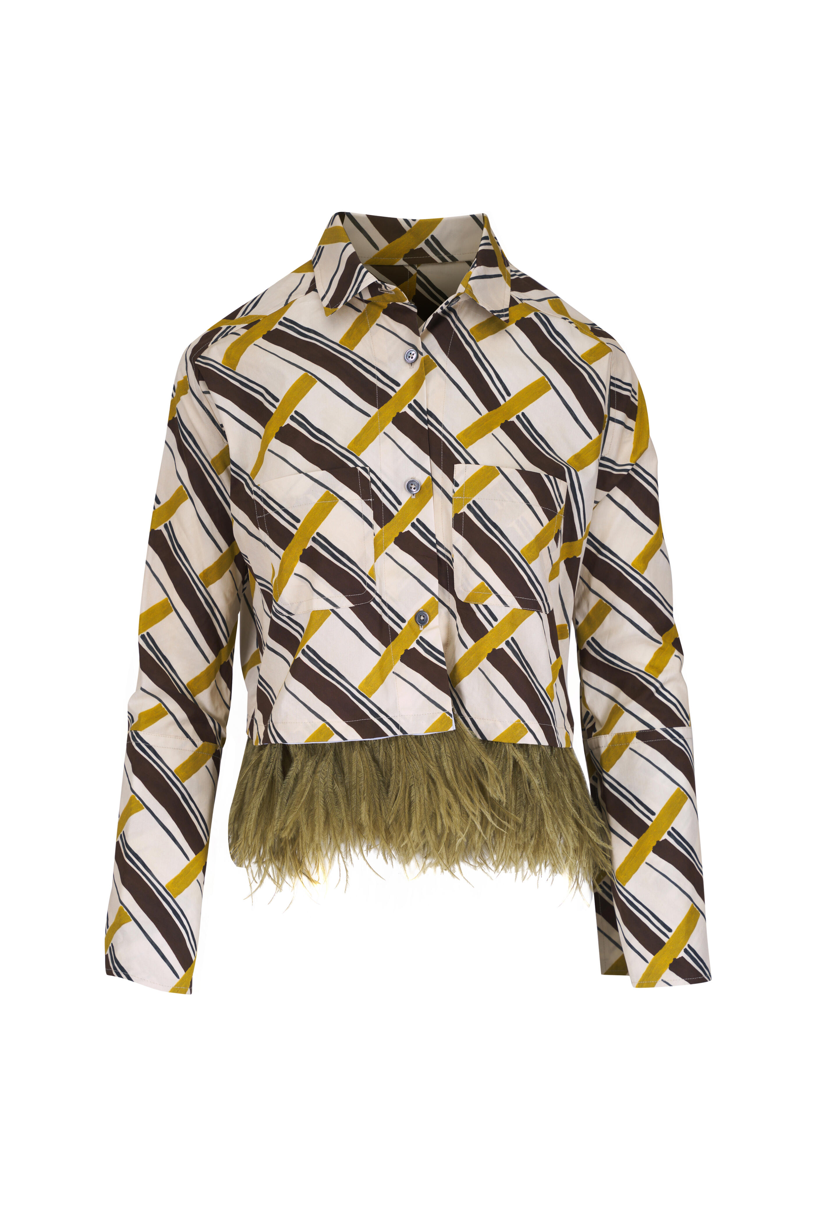 Gold & Green Print Feather Trim Blouse