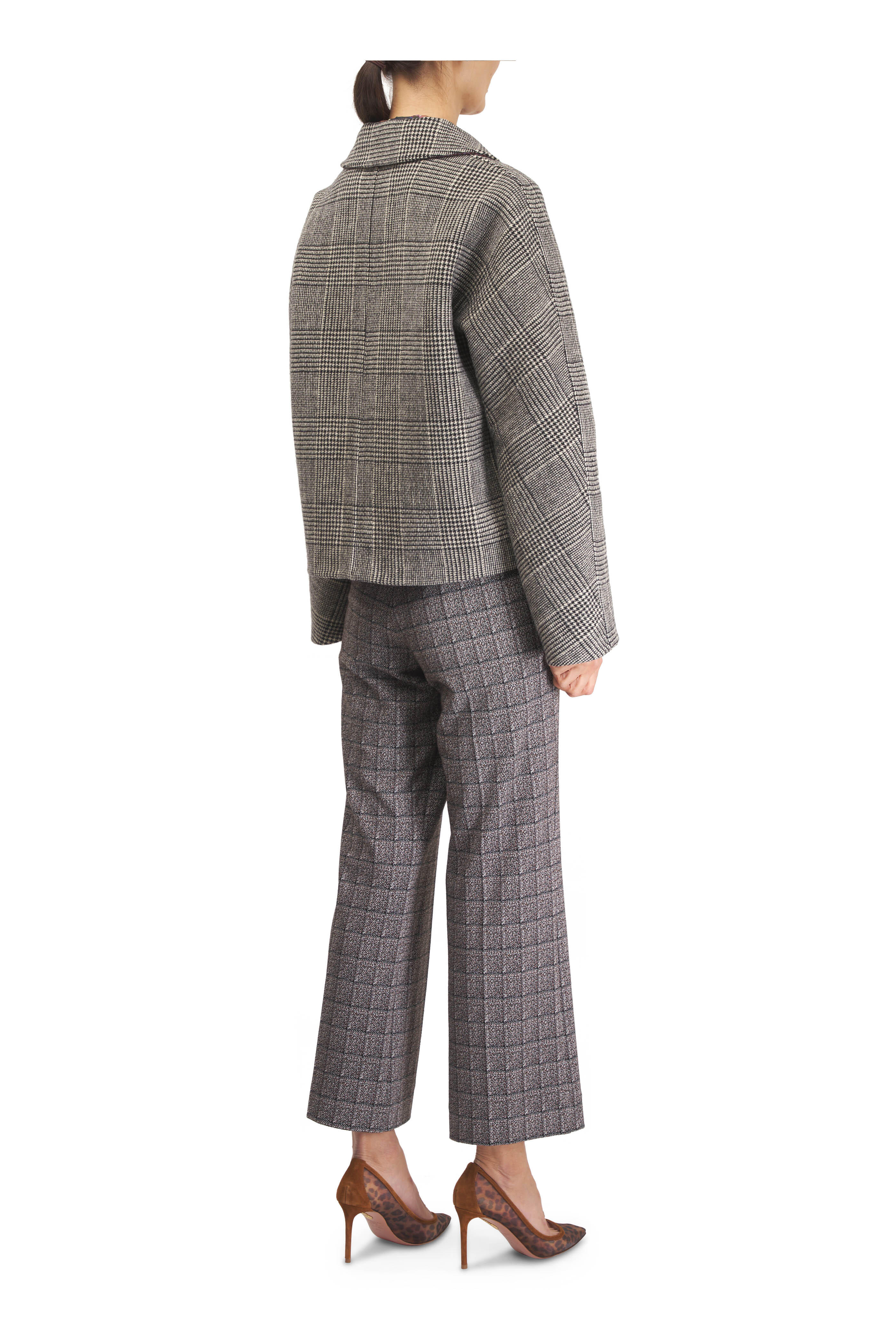 Wool blend. Banded waistband. Side slip pockets. Elasticized hem. Fabric from Italy. Dry clean.