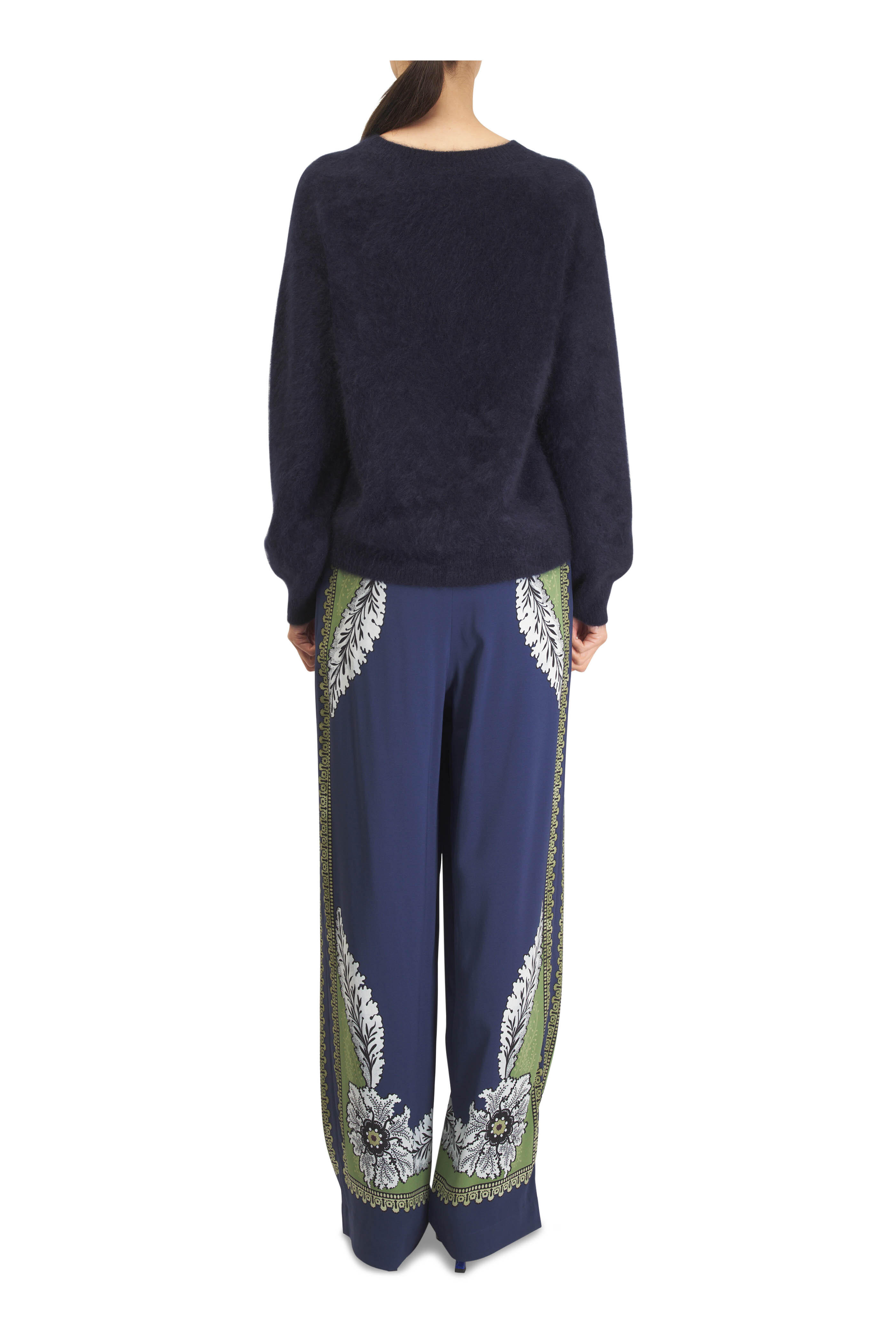Crew neckline. Slip-on style. Ribbed knit trim. Imported. Approximately 23" shoulder to hem (measurements taken from size 2). 100% cashmere. Dry clean.