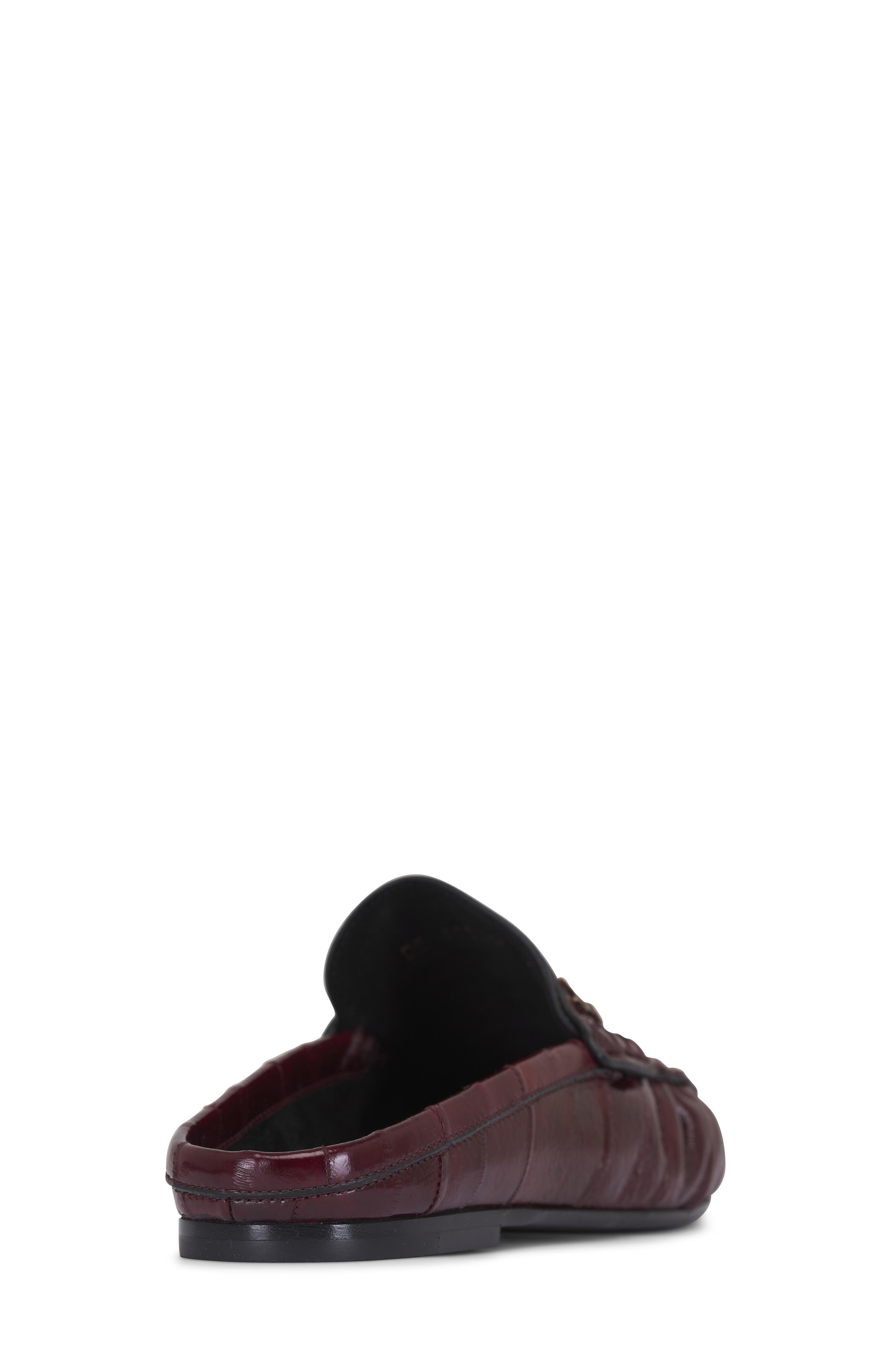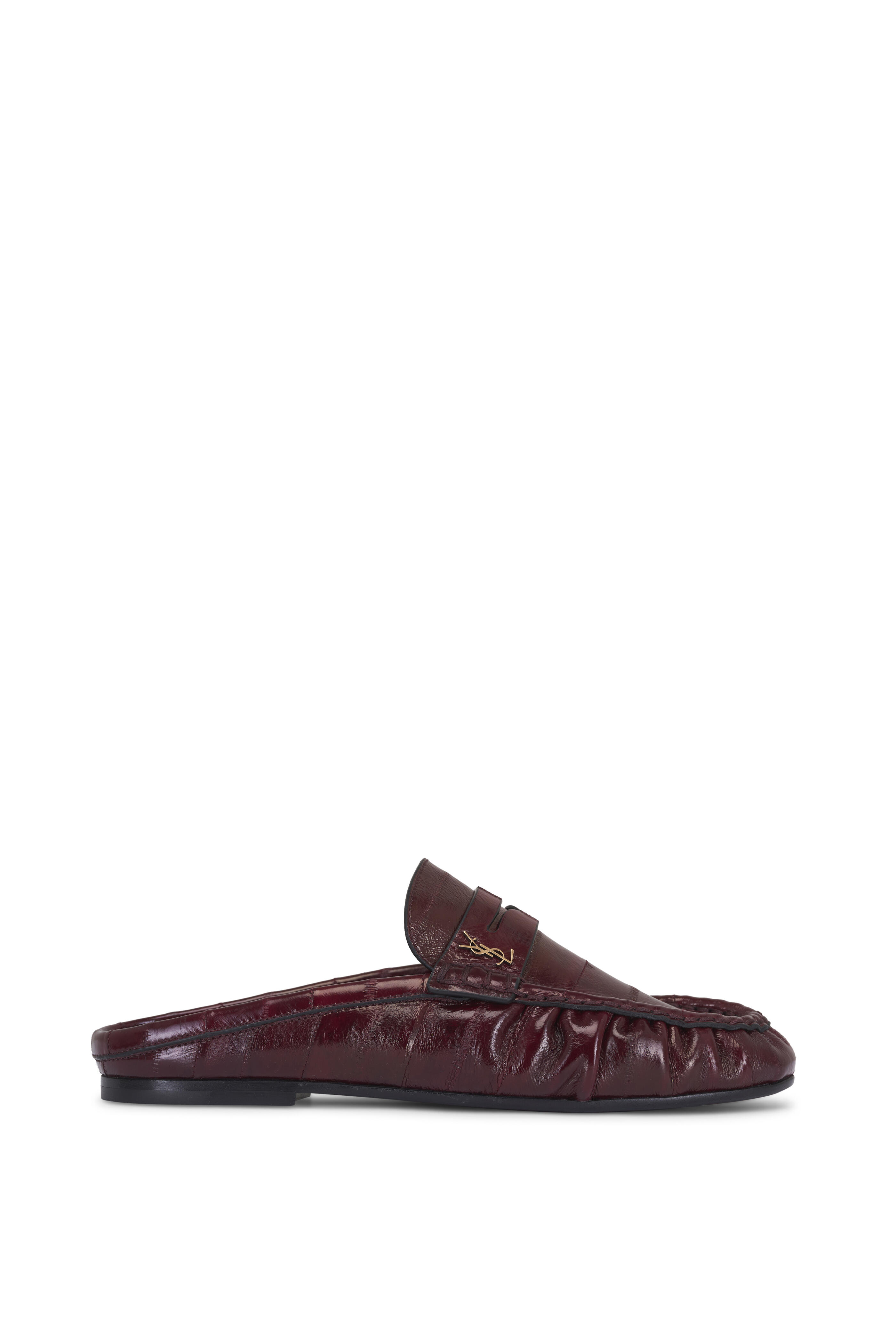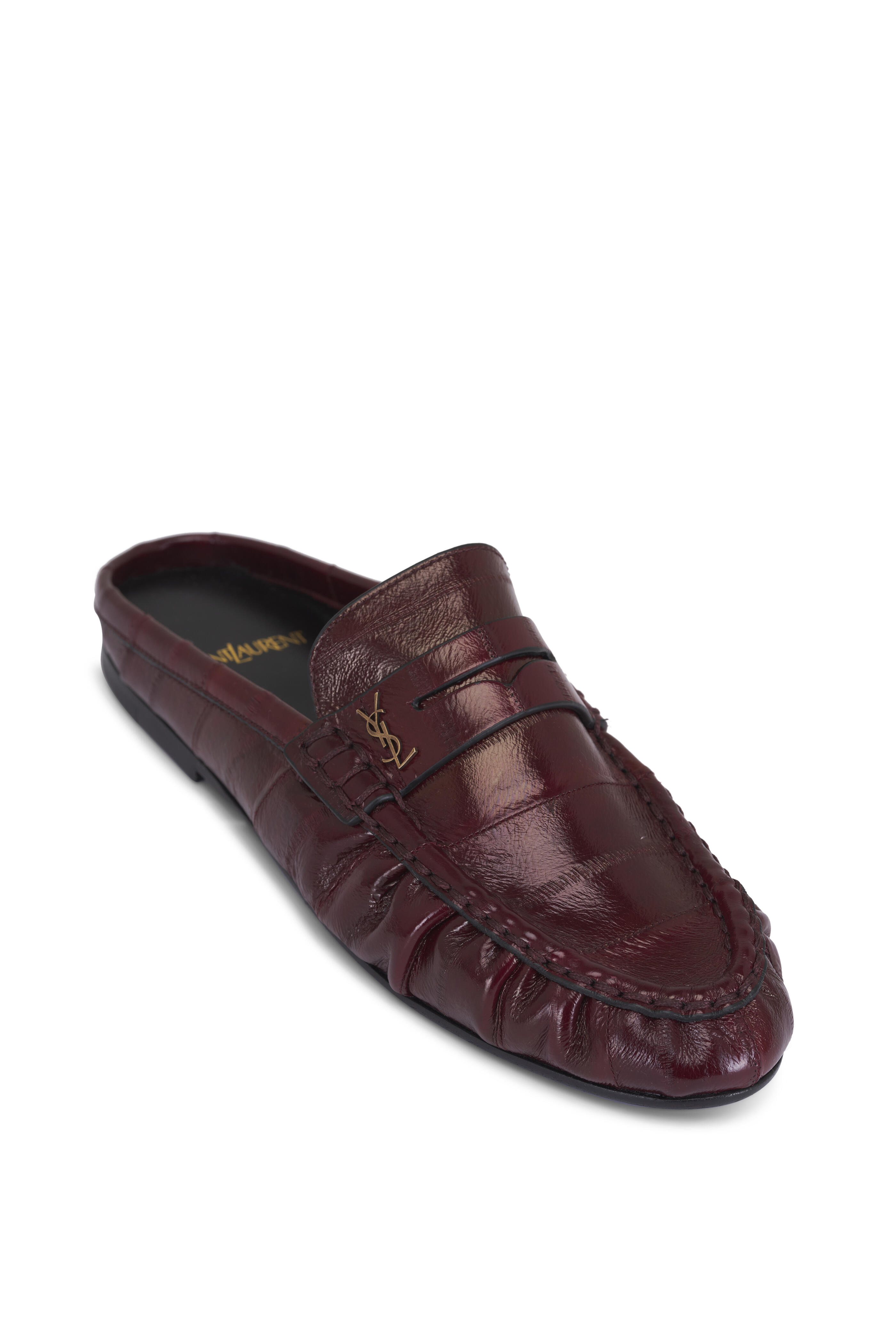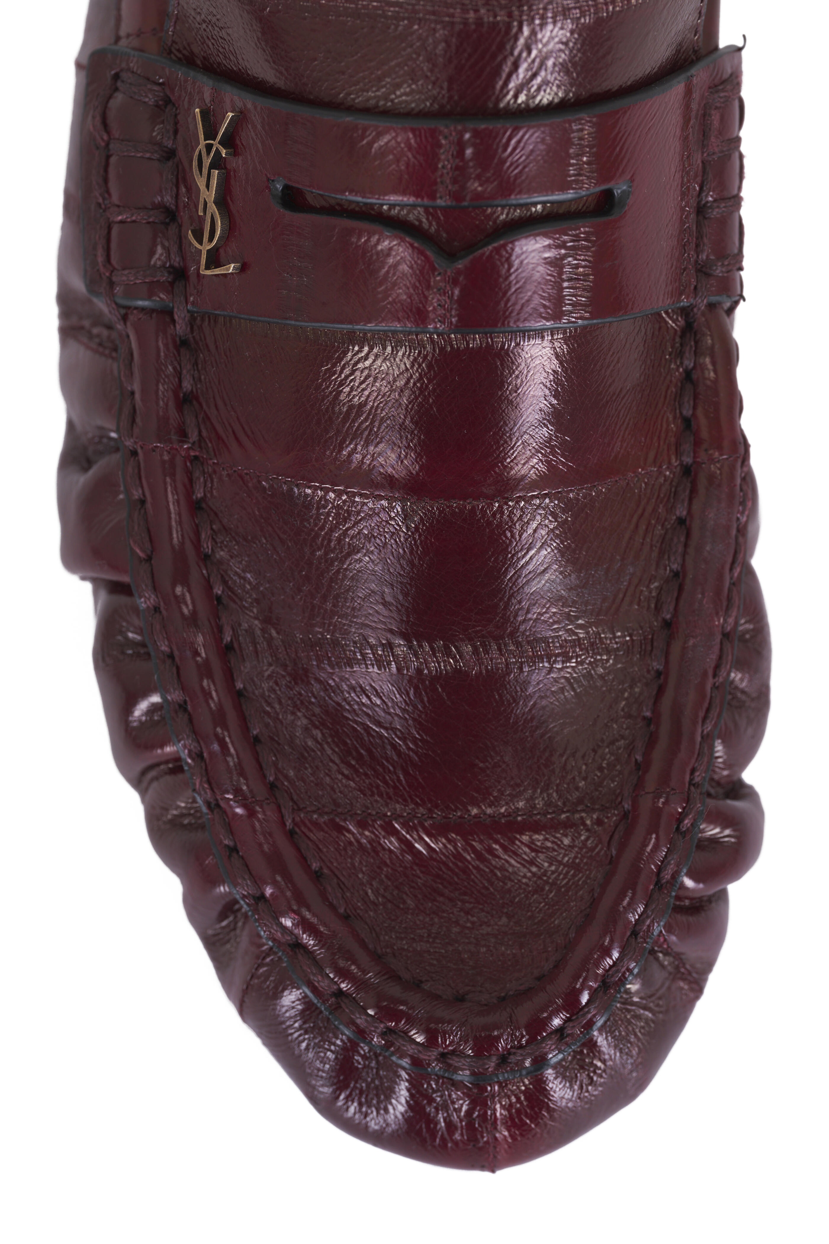 Eel upper. Moc toe. Slip on style. Penny strap at vamp. Leather lining and insole. Leather sole. Gold tone Cassandre detailing. Made in Italy. Heel height: 0.2".