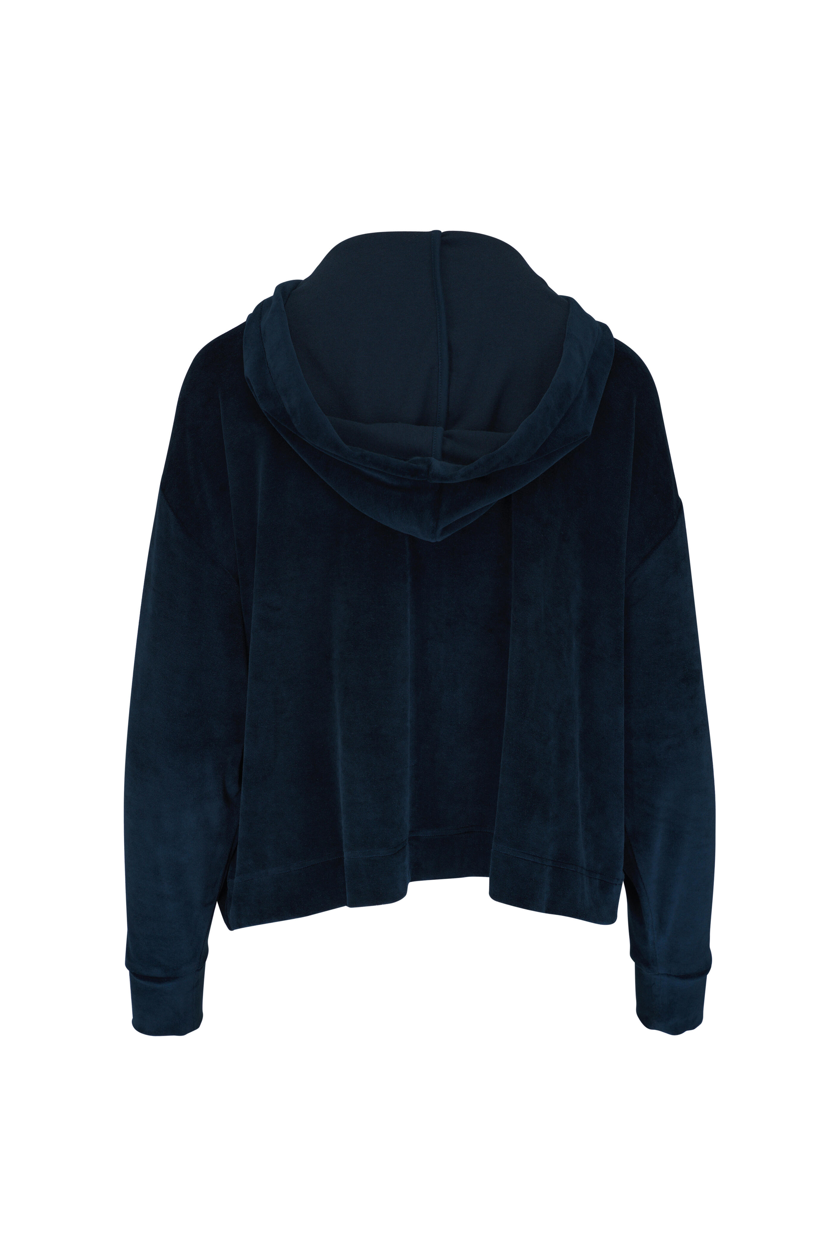 Attached drawstring hood. Front zip. Imported. 48% cotton, 48% modal, 4% elastane. Machine wash.