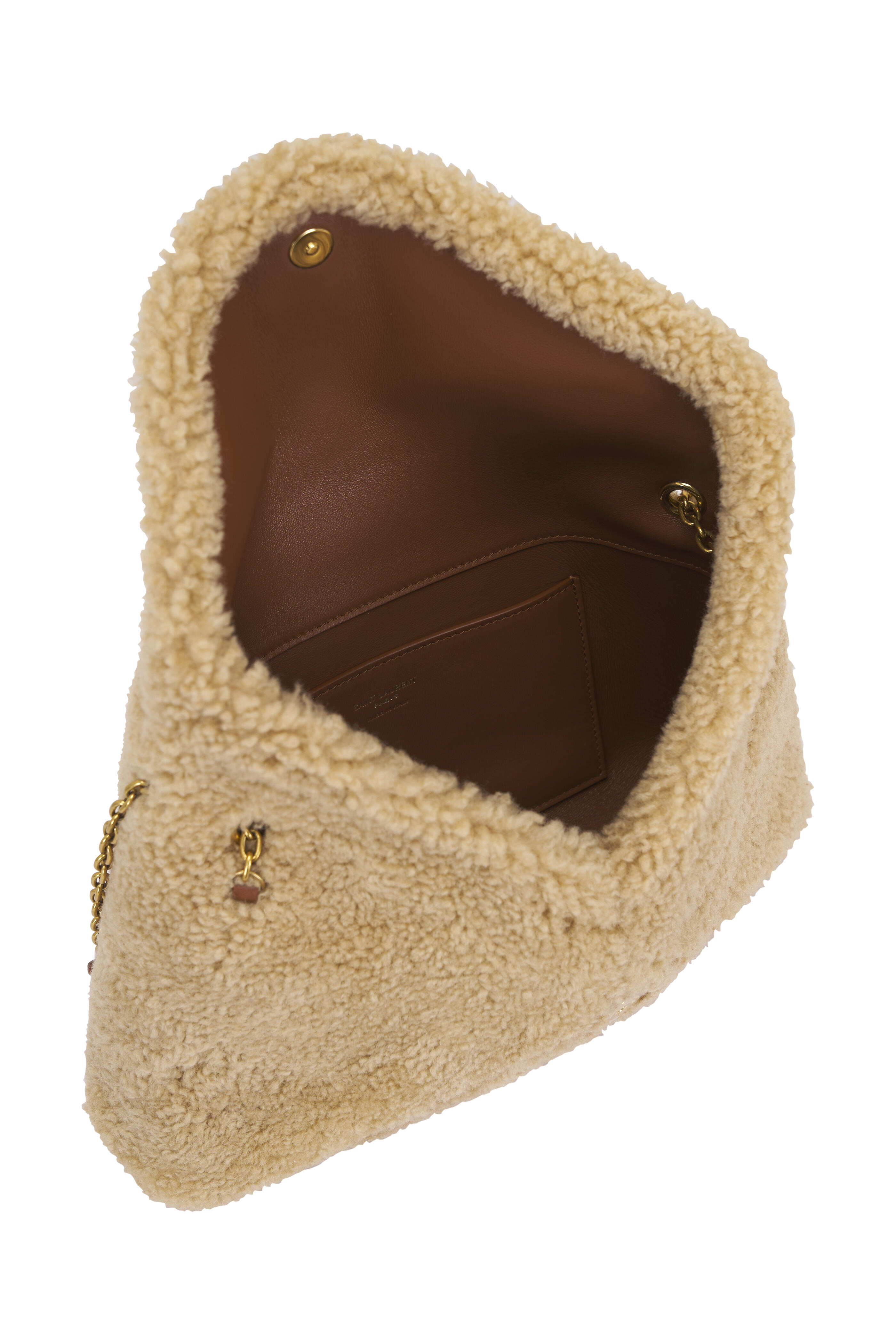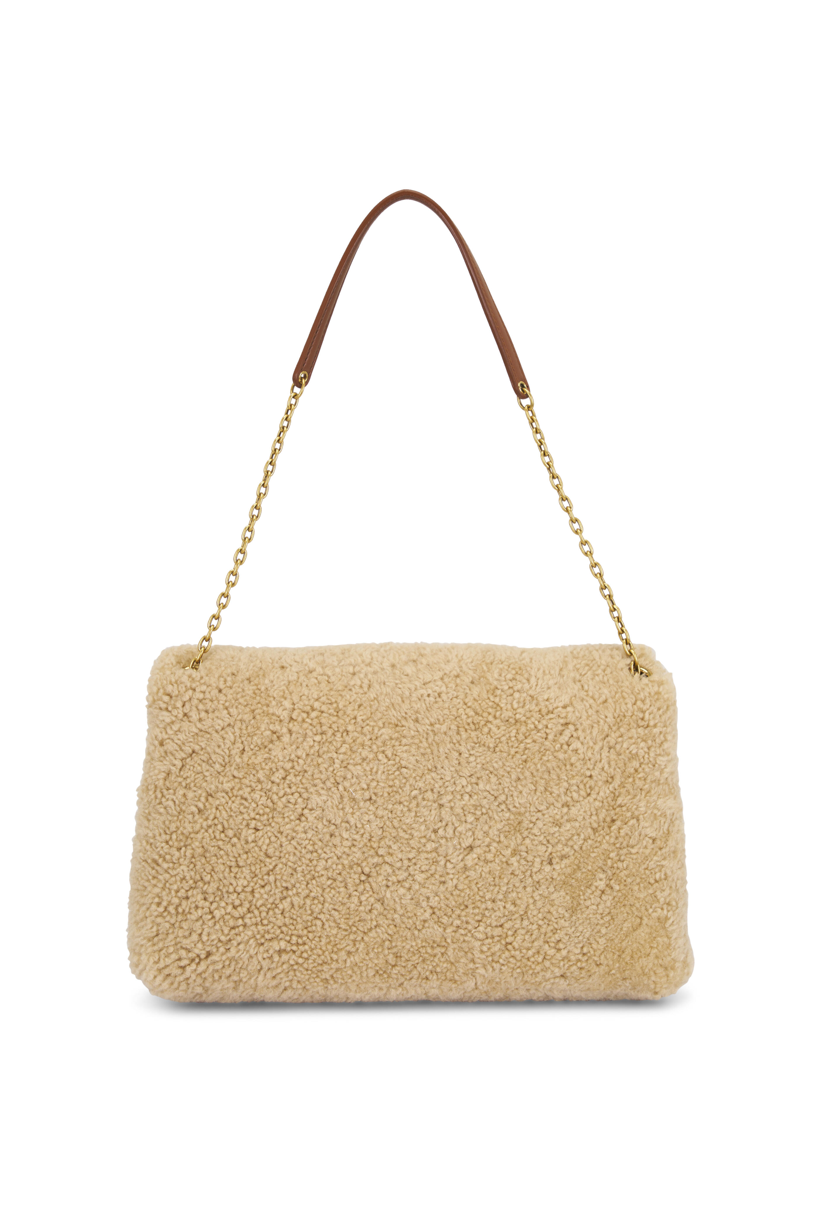 Lambskin. Flap with snap button closure. Stowable cable chain strap. Interior zip pocket. Leather lining. Bronze-tone hardware. Made in Italy. 11.6" x 7" x 2". Strap drop: 9.8".