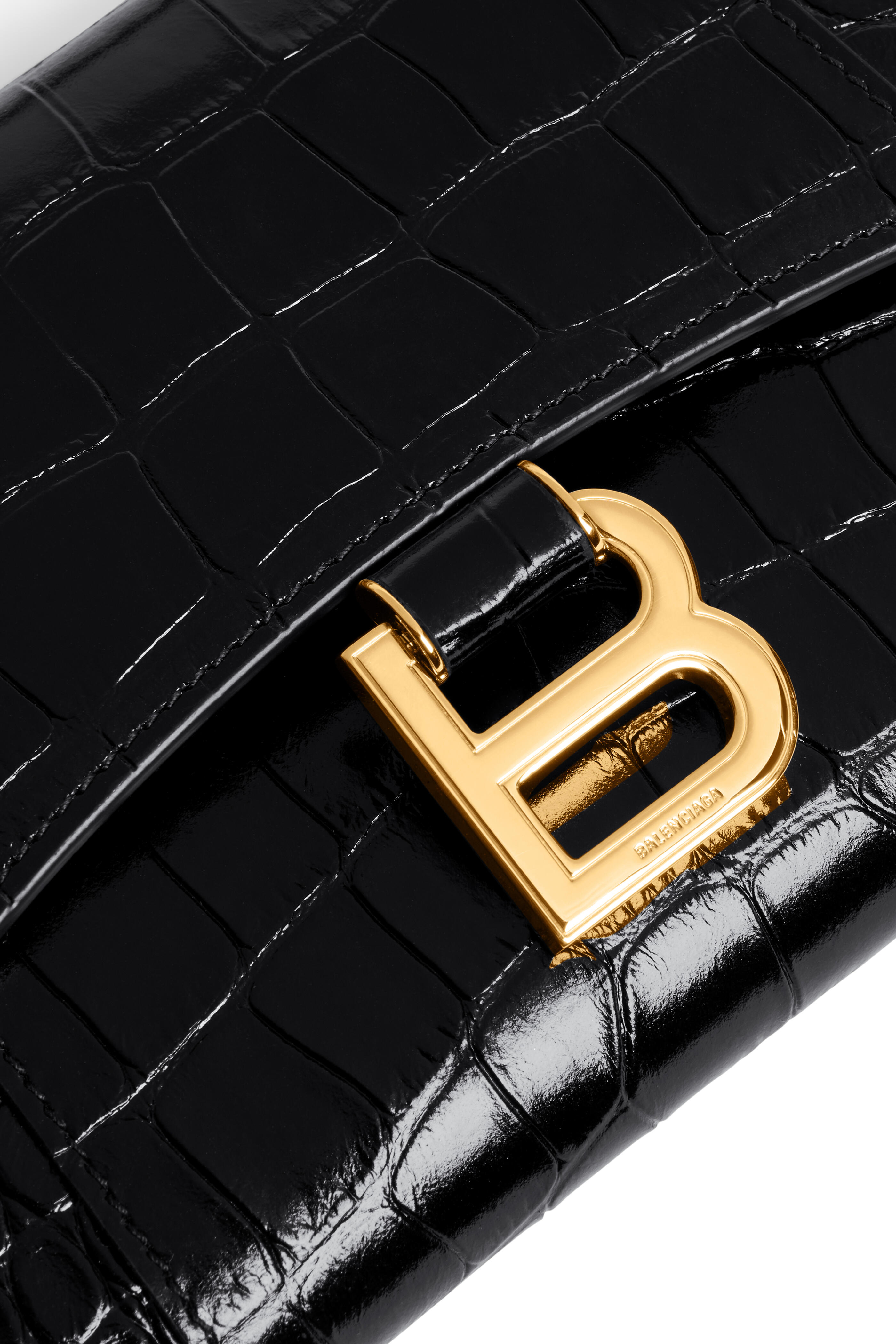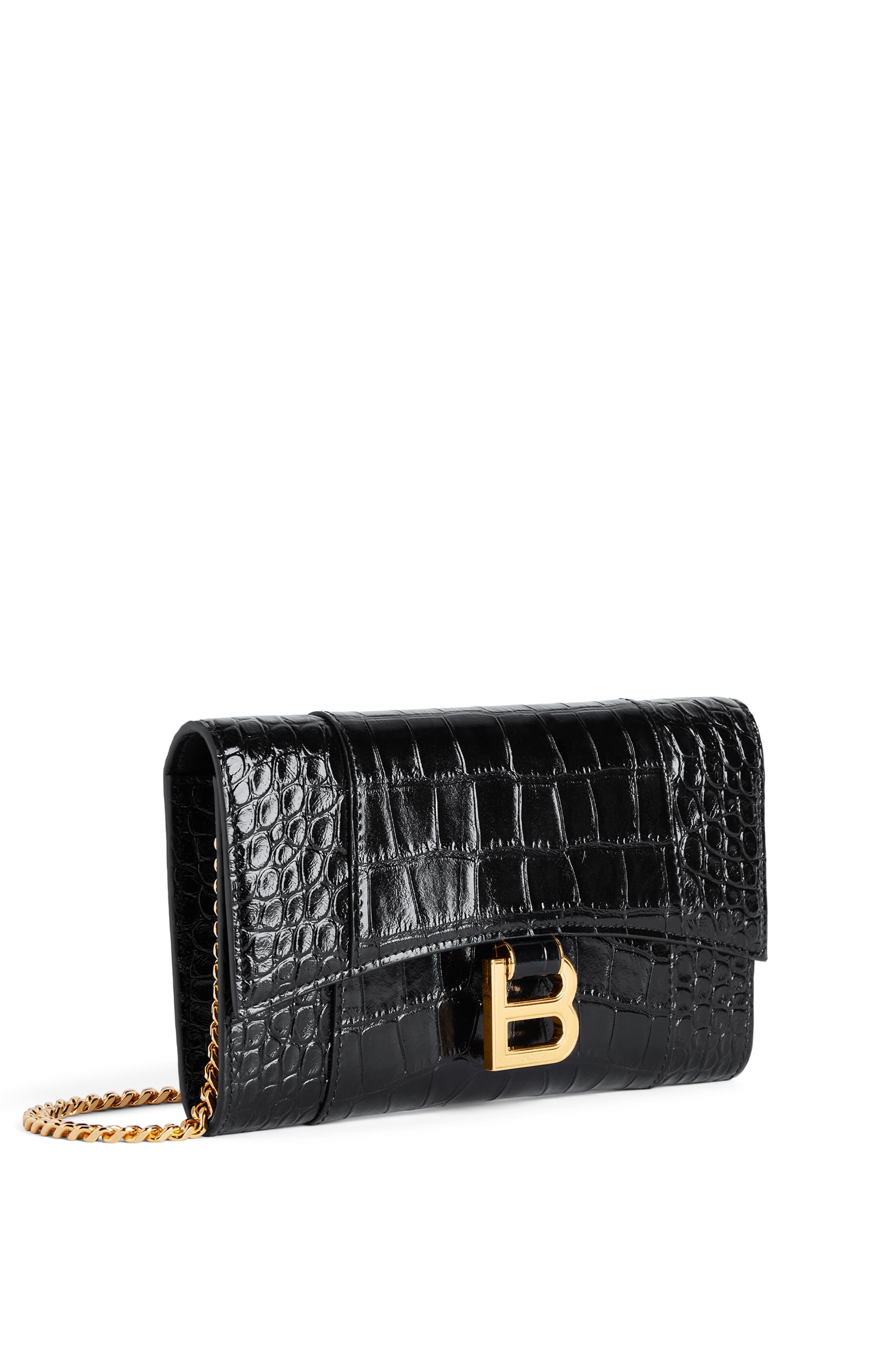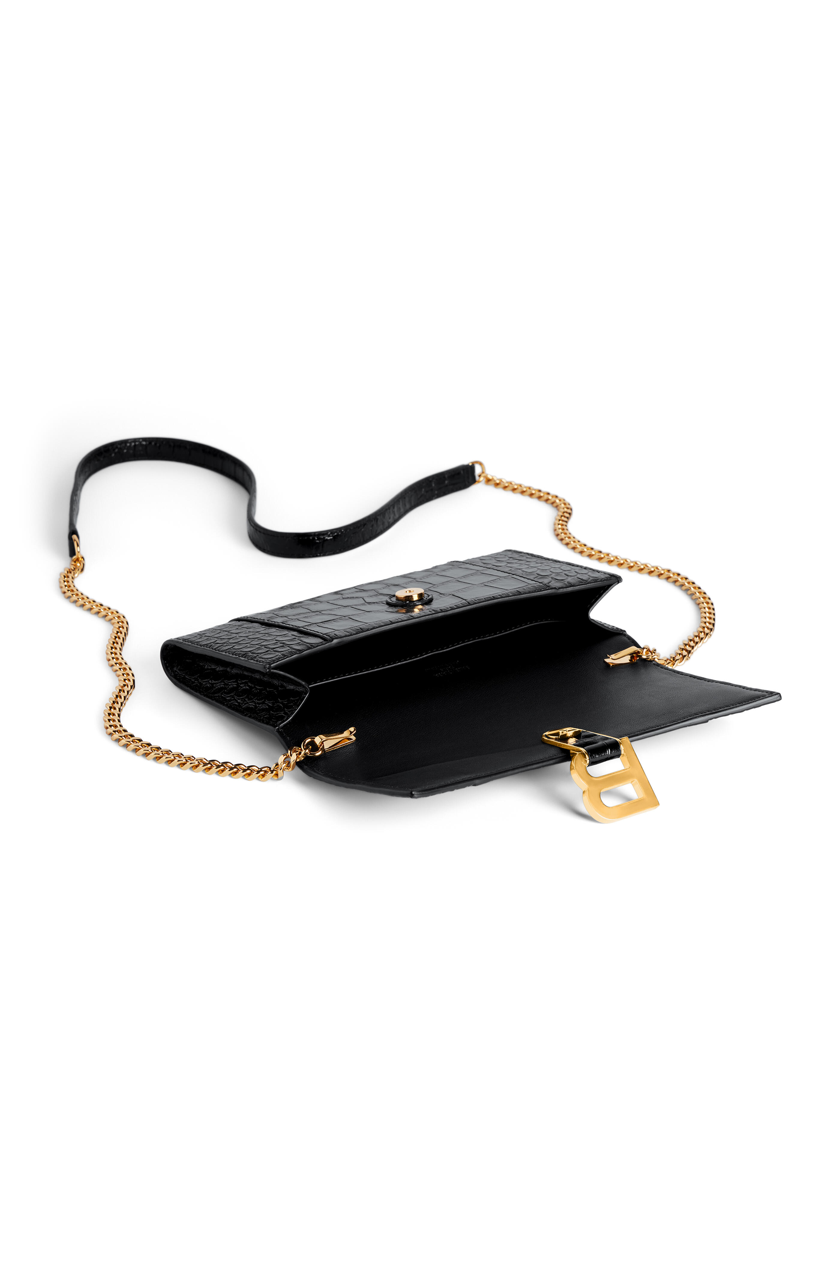Croc embossed calfskin leather. Flap with studded magnet closure. Adjustable chain strap. Shiny gold B logo hardware. Nappa lambskin lining. Made in Italy. Length: 7.6". Height: 4.7". Width: 1.9". Strap drop: 20.4".