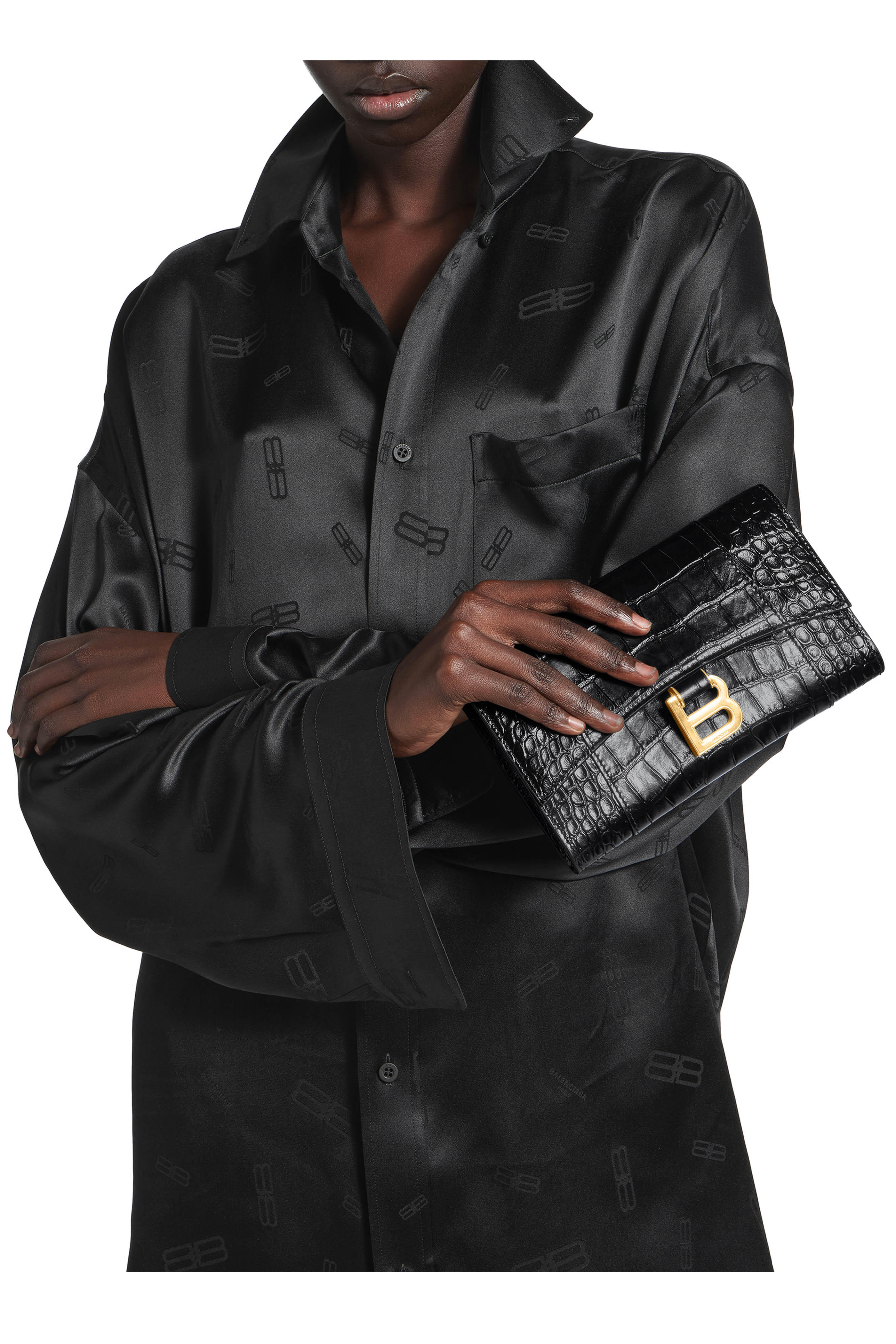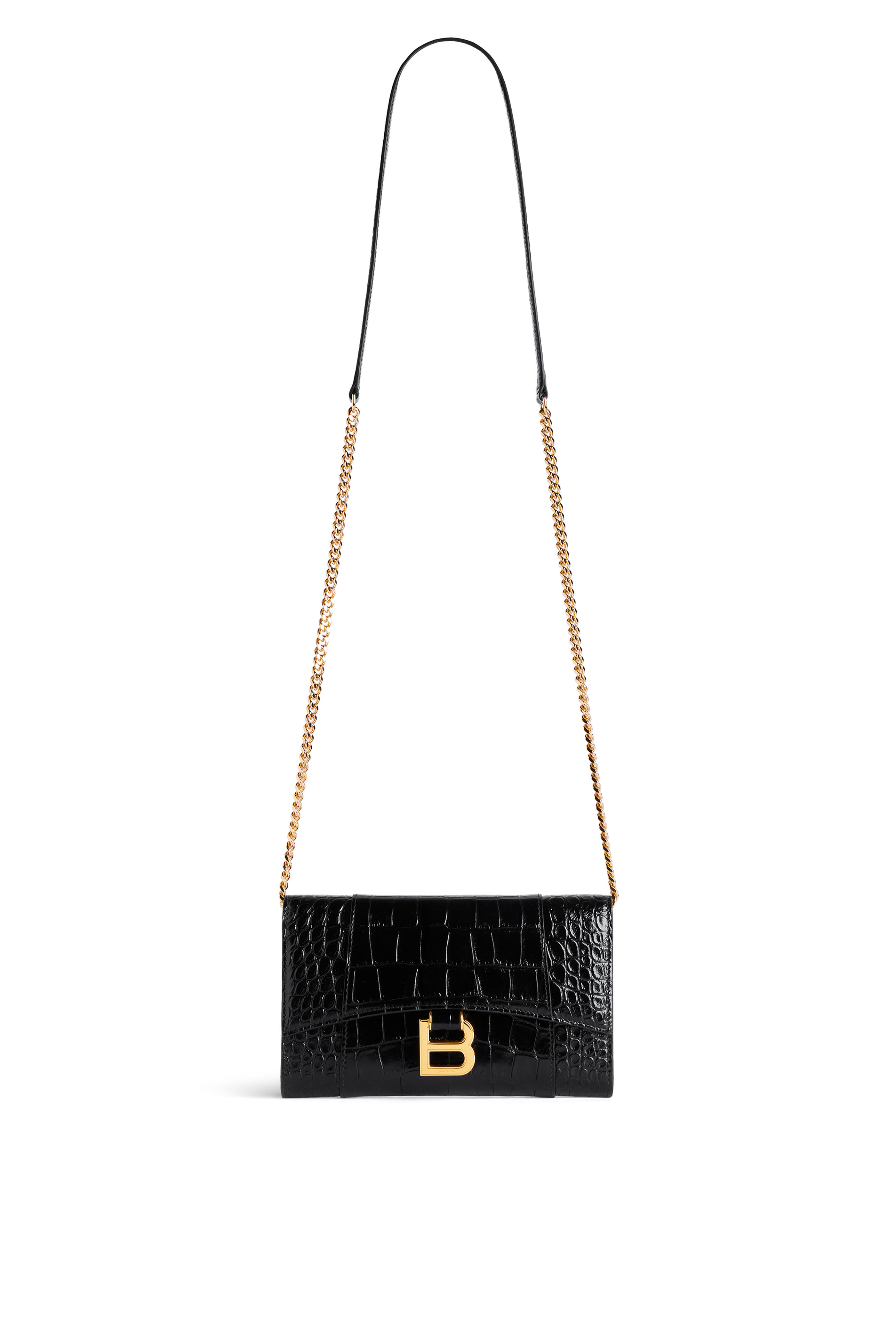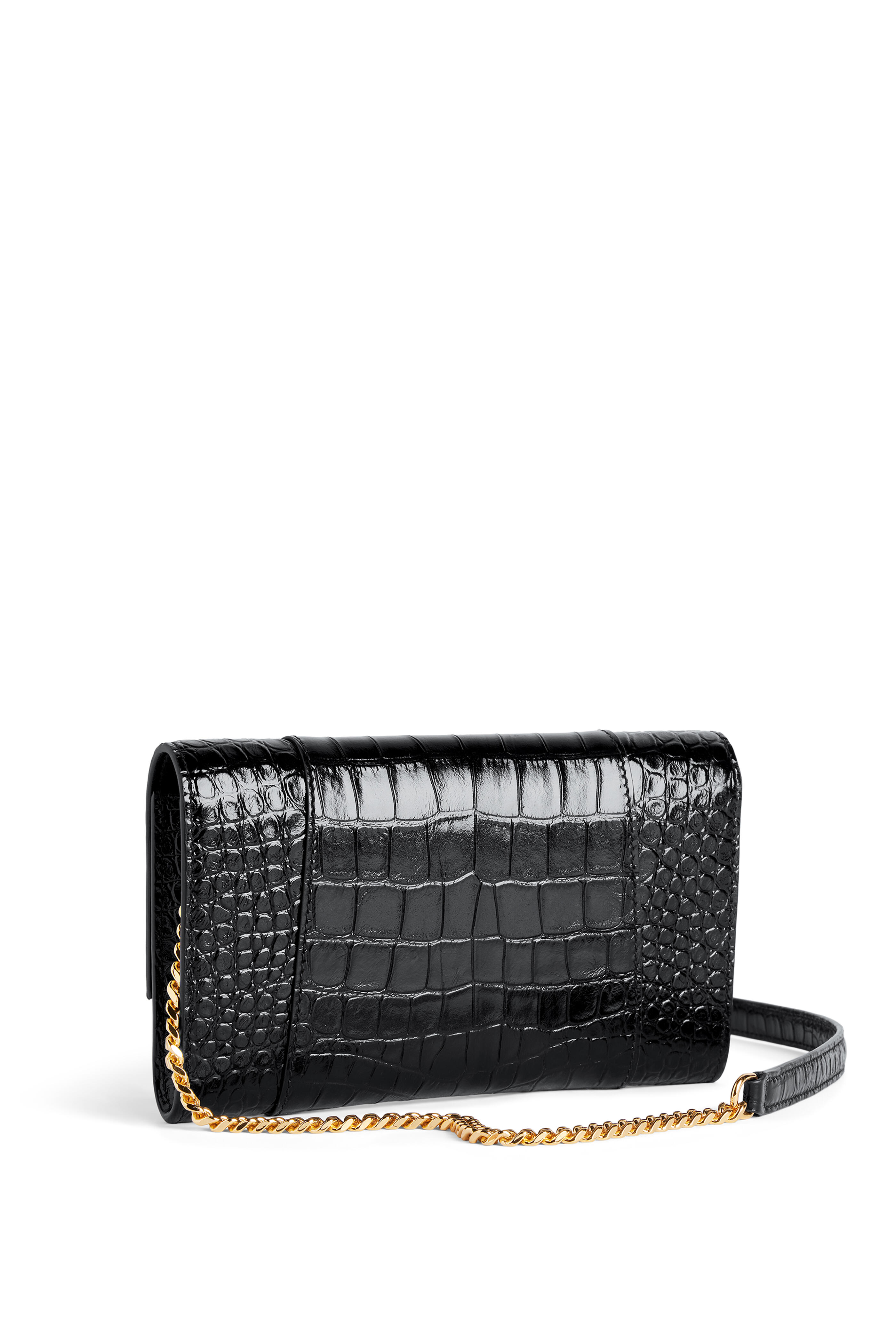 Croc embossed calfskin leather. Flap with studded magnet closure. Adjustable chain strap. Shiny gold B logo hardware. Nappa lambskin lining. Made in Italy. Length: 7.6". Height: 4.7". Width: 1.9". Strap drop: 20.4".