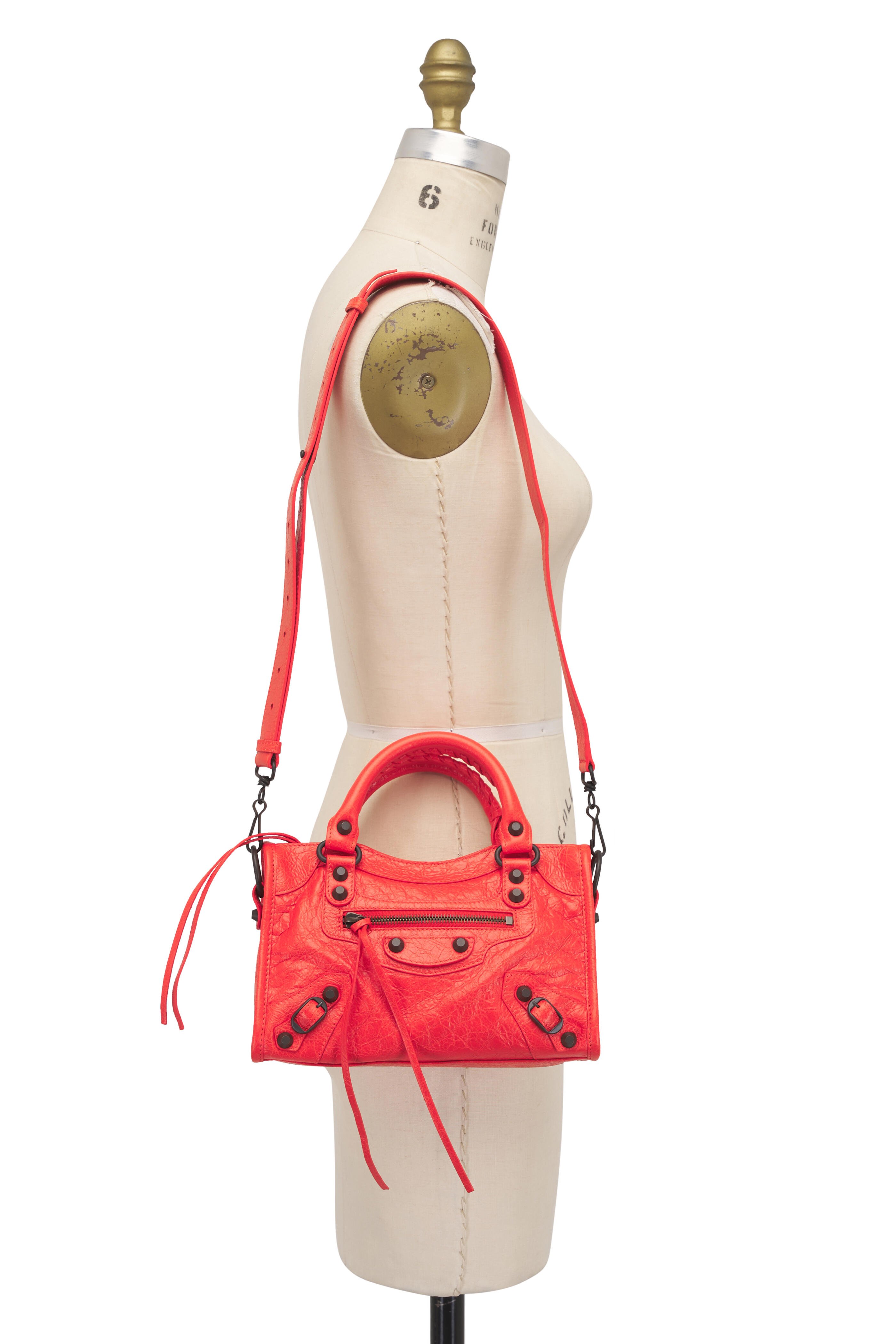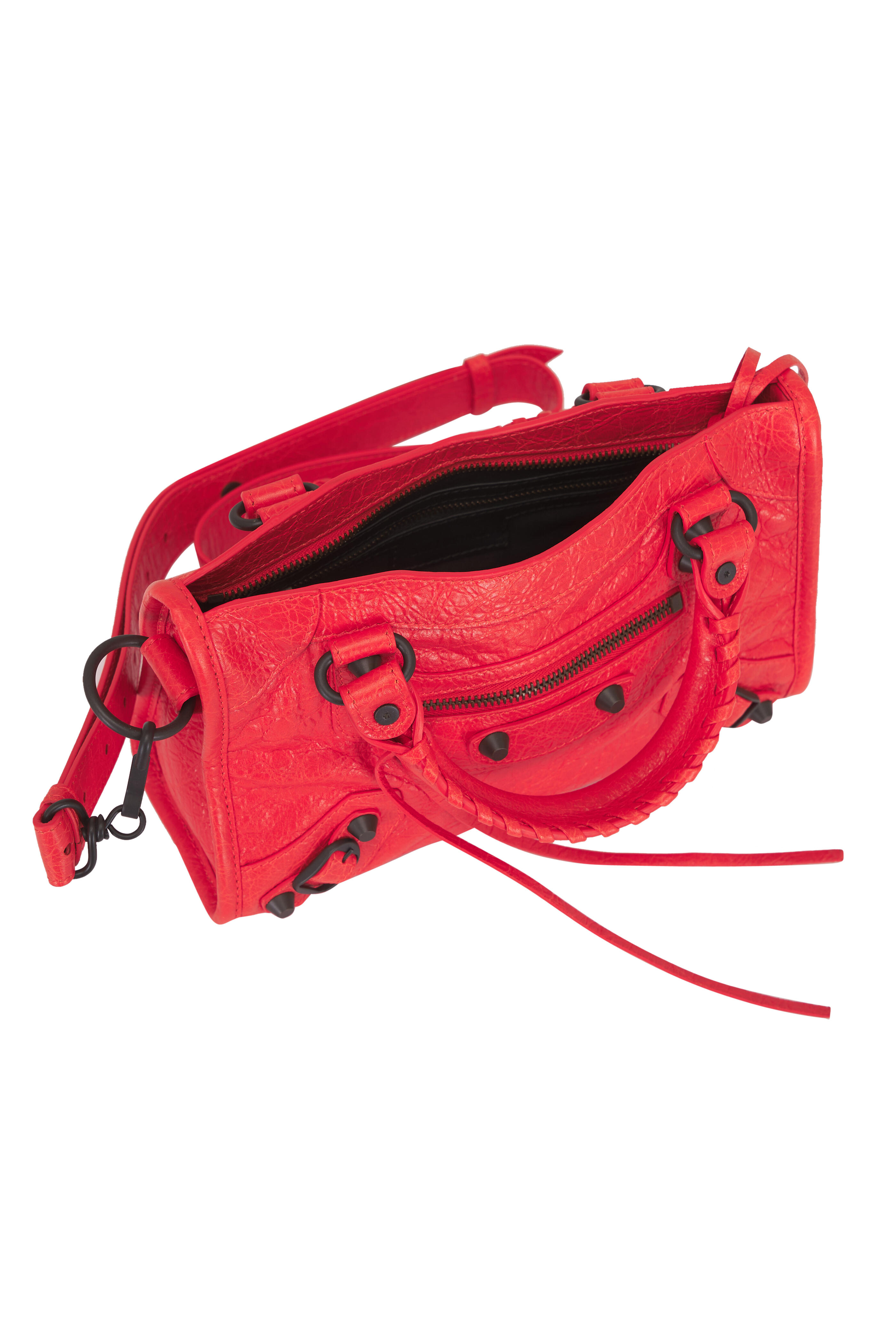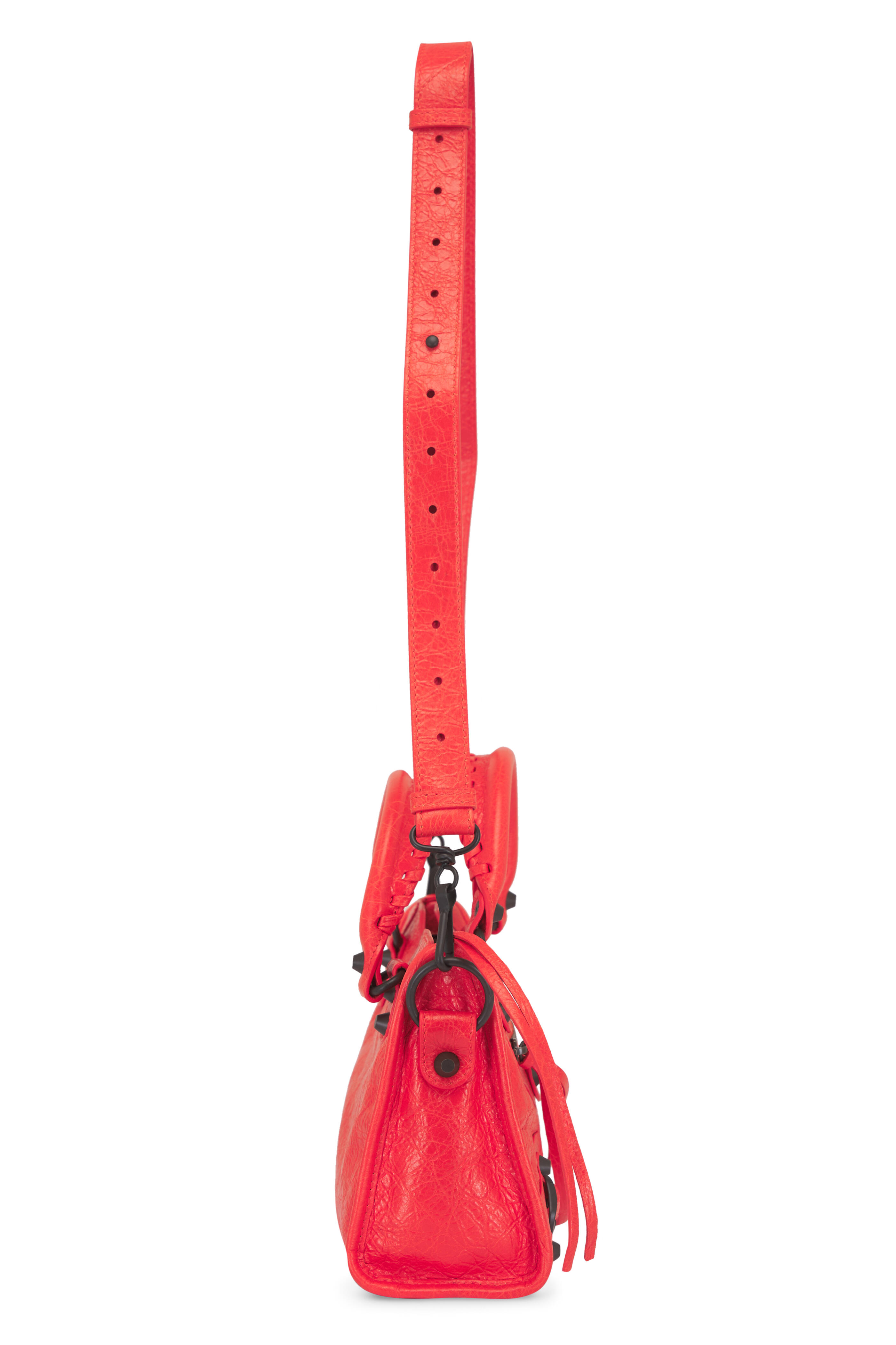 Arena Storico lambskin. Top zip closure; knotted leather puller. Dual leather hand-braided handles; removable and adjustable shoulder strap. Brass hardware. Front zip pocket with knotted leather puller. 1 inner zipped pocket. Cotton canvas lining. Made in Italy. Length: 24 cm | 9.45". Height: 16 cm | 6.3". Width: 6.5 cm | 2.5". Handle drop: 9 cm | 3.5". Strap drop: 55 cm | 21.6". Can fit the largest smartphones.
