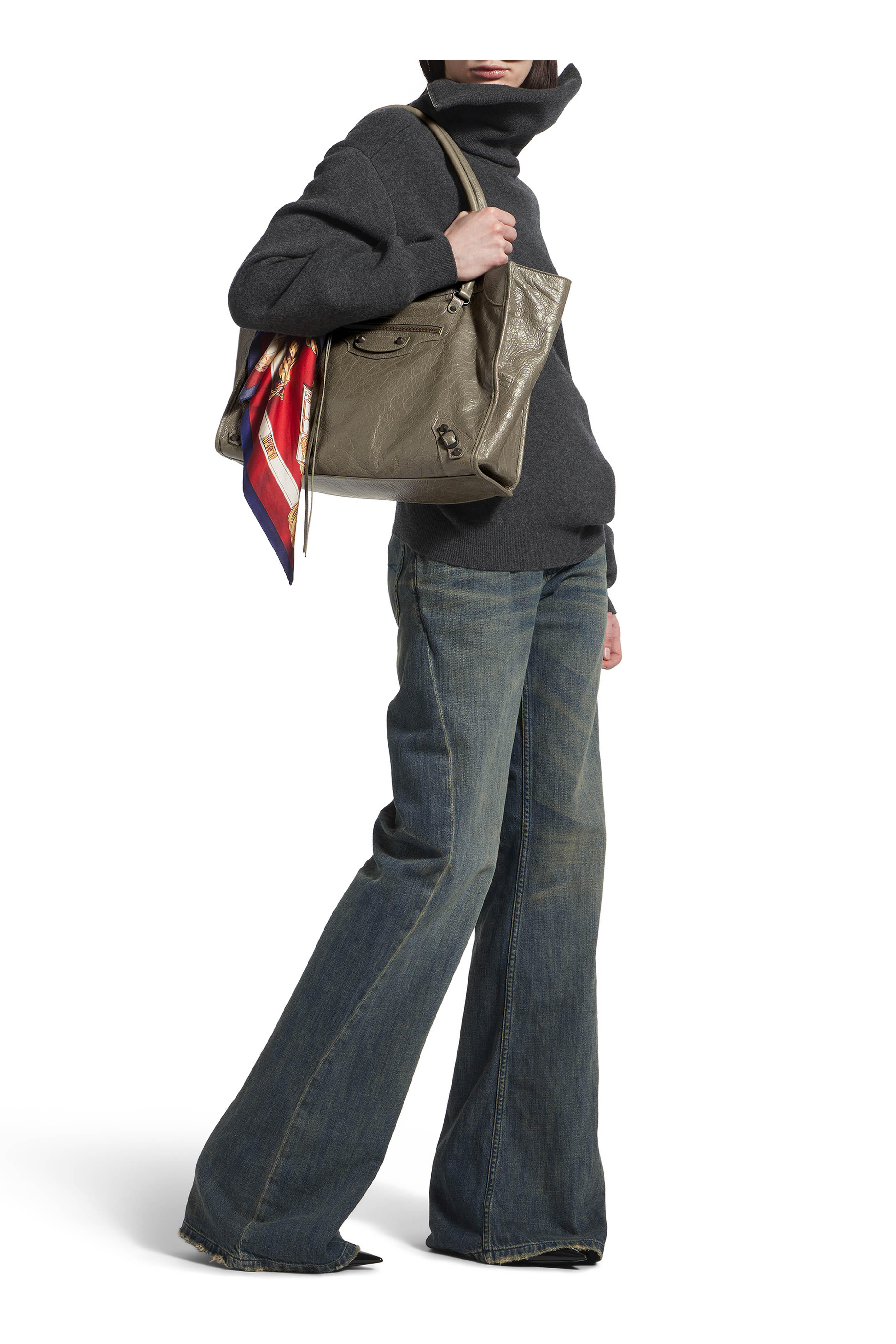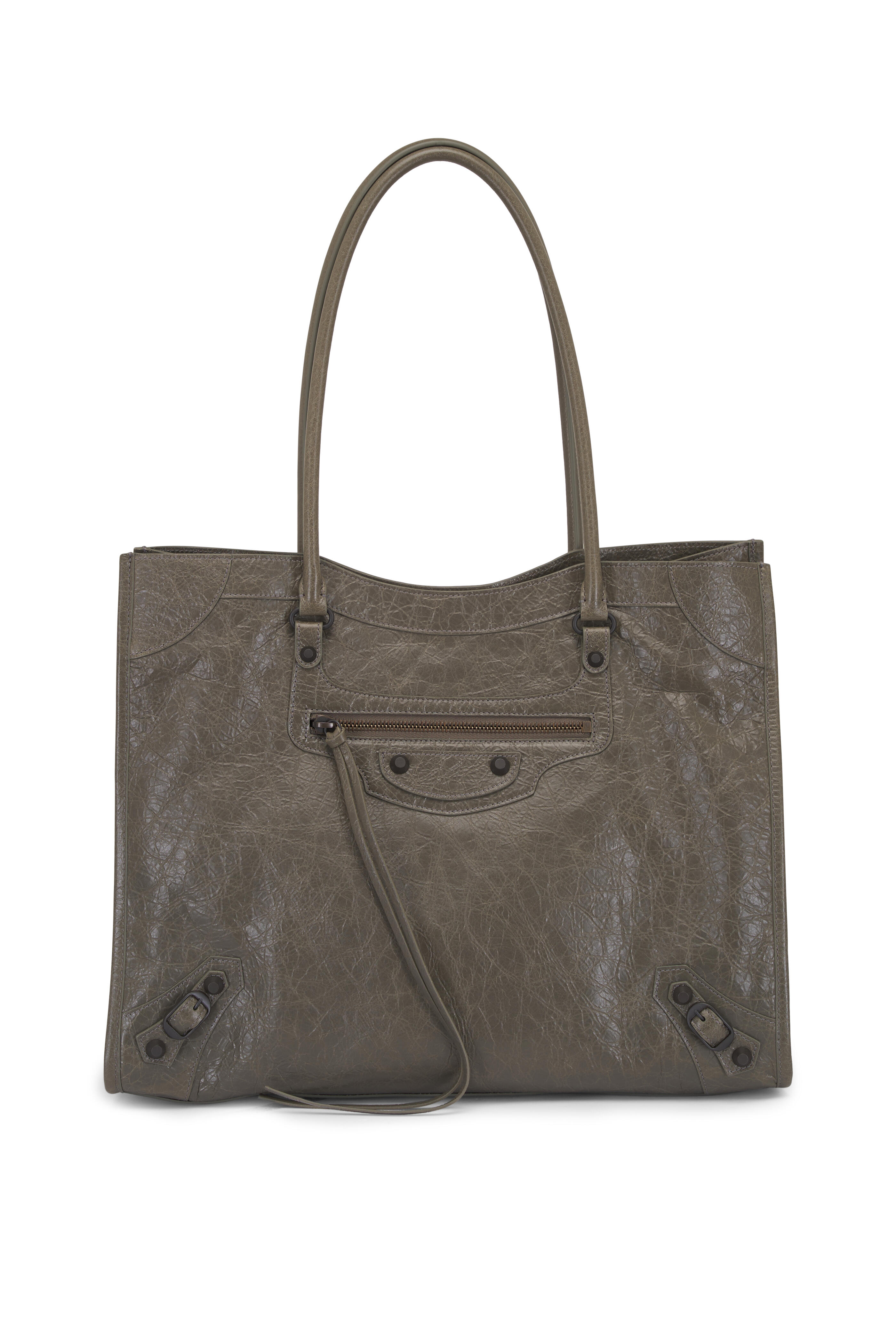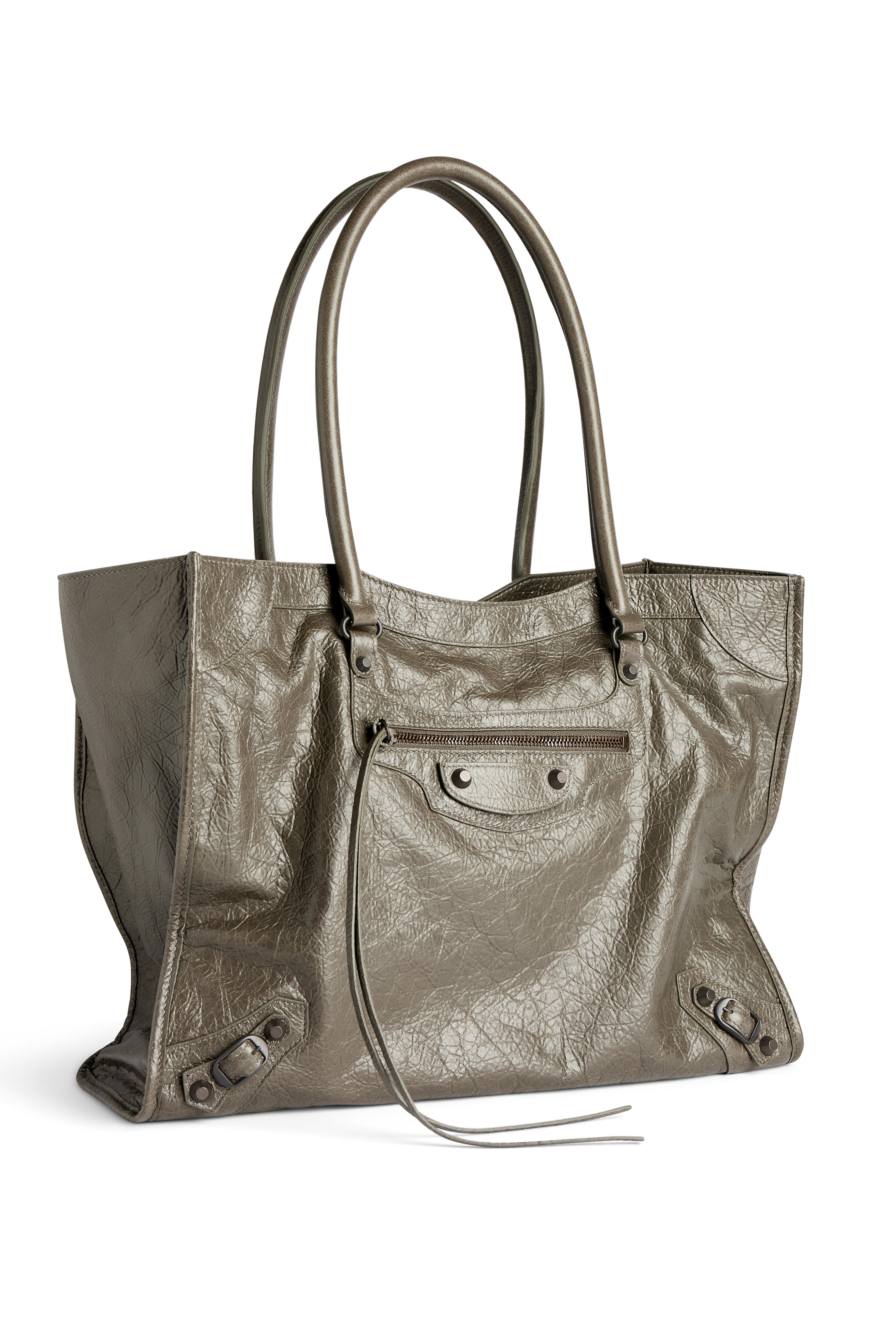 Arena Storico lambskin. Dual top handles. Magnet closure. 1 main compartment; 1 inner zip pocket. Brass hardware. Front zipped pocket with knotted leather pull. Cotton canvas lining. Made in Italy. Length: 39 cm | 15.3". Height: 29 cm | 11.4". Width: 13 cm | 5.1". Handle drop: 24 cm | 9.4". Can fit a smartphone, a laptop, a tablet, a book and a wallet.