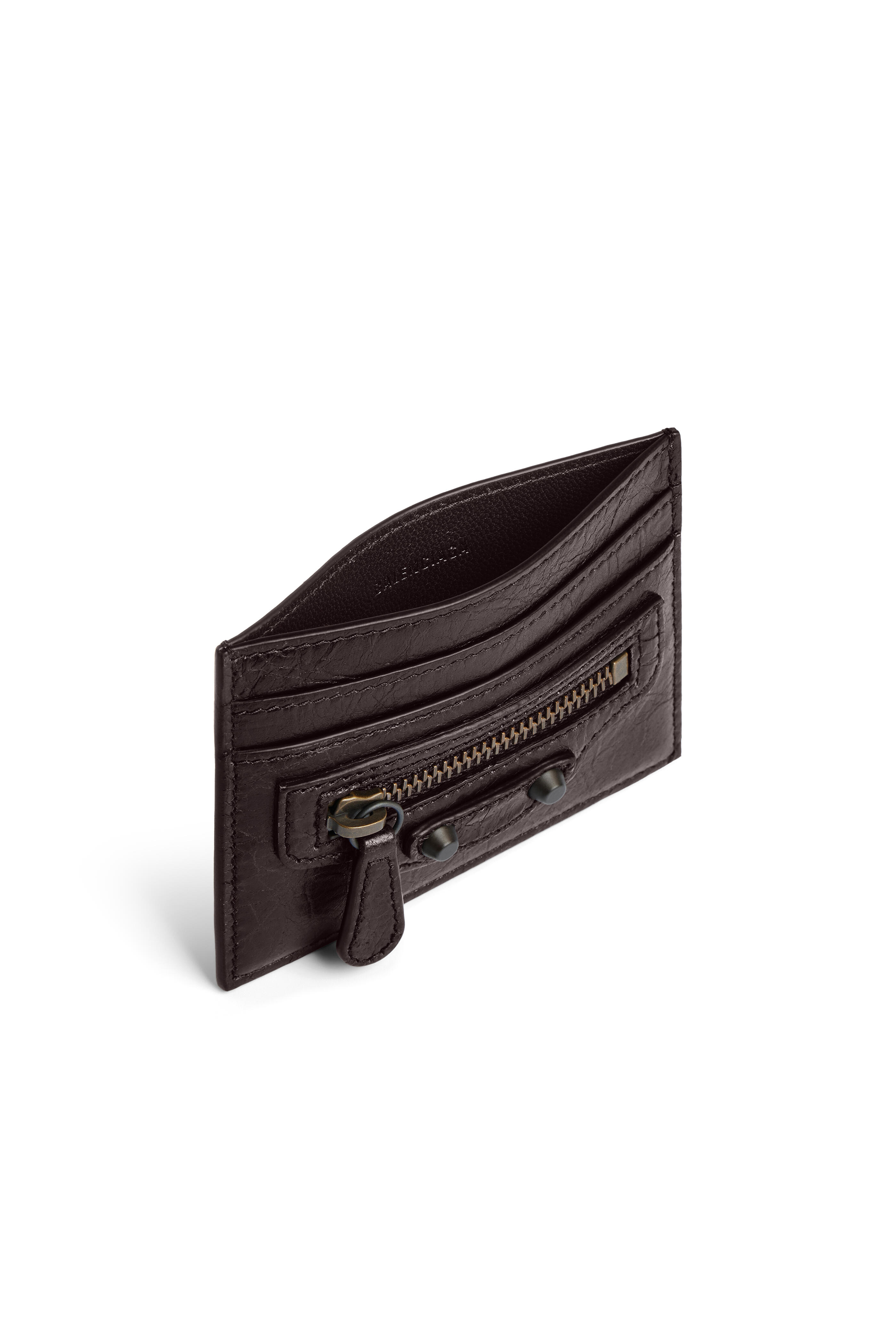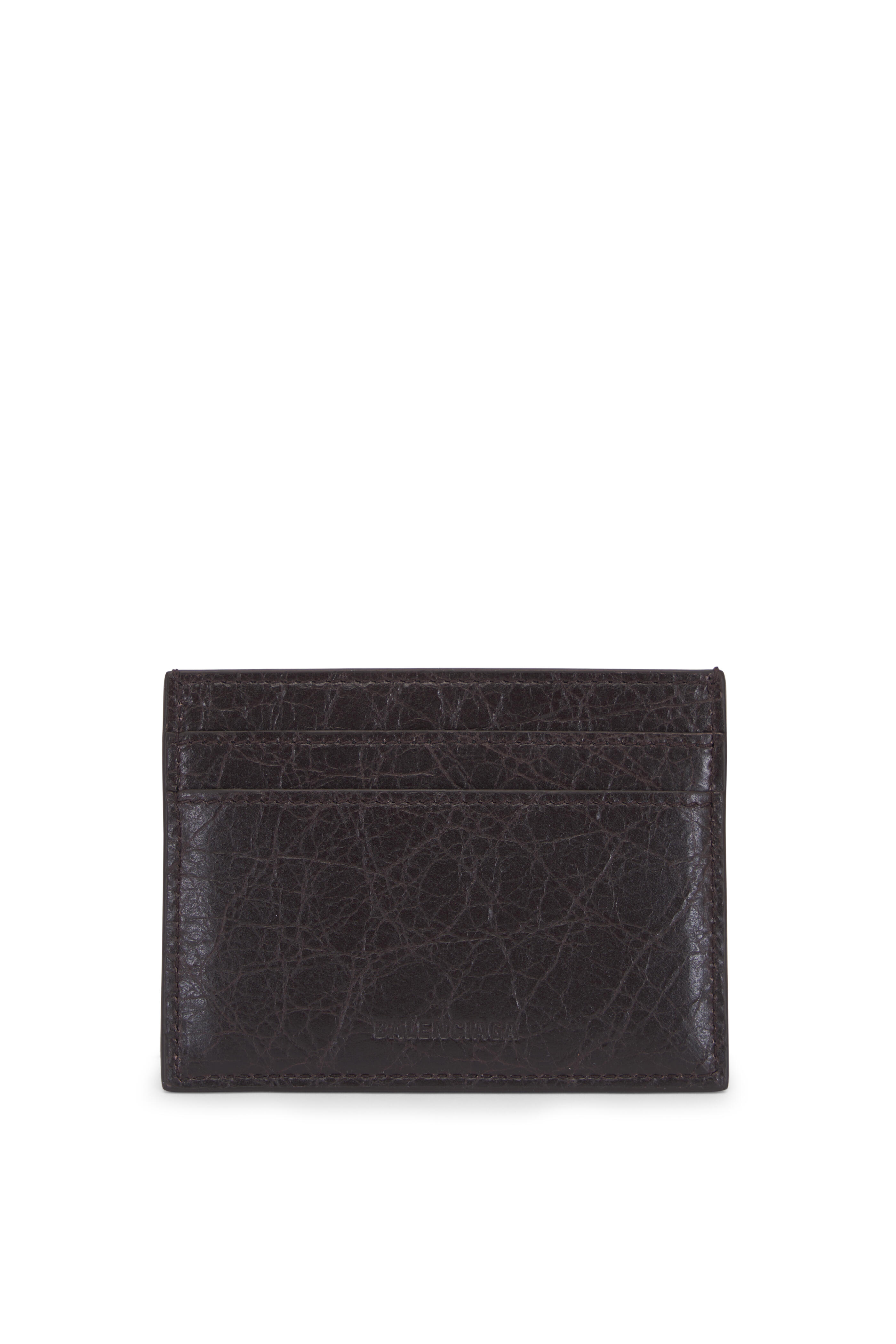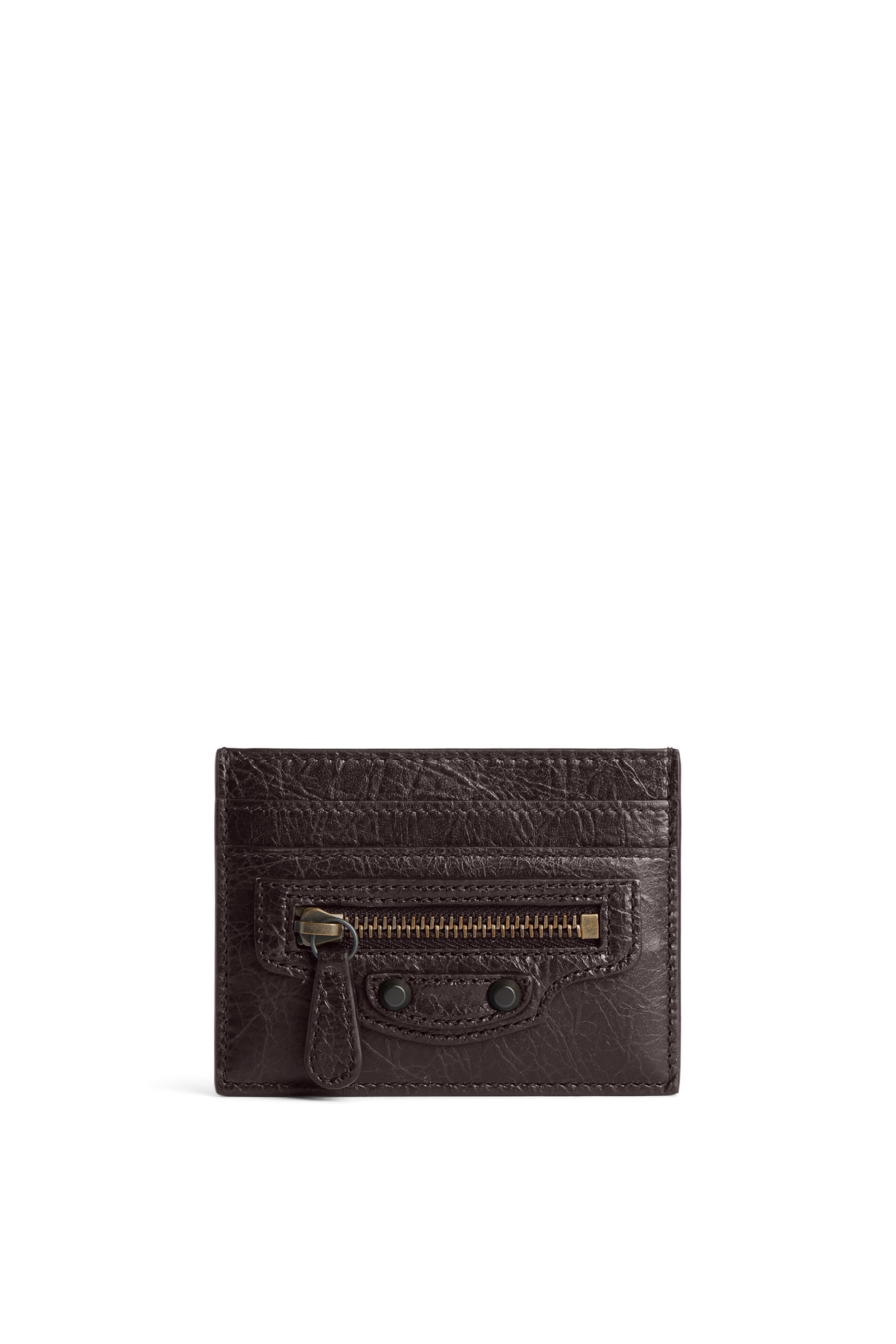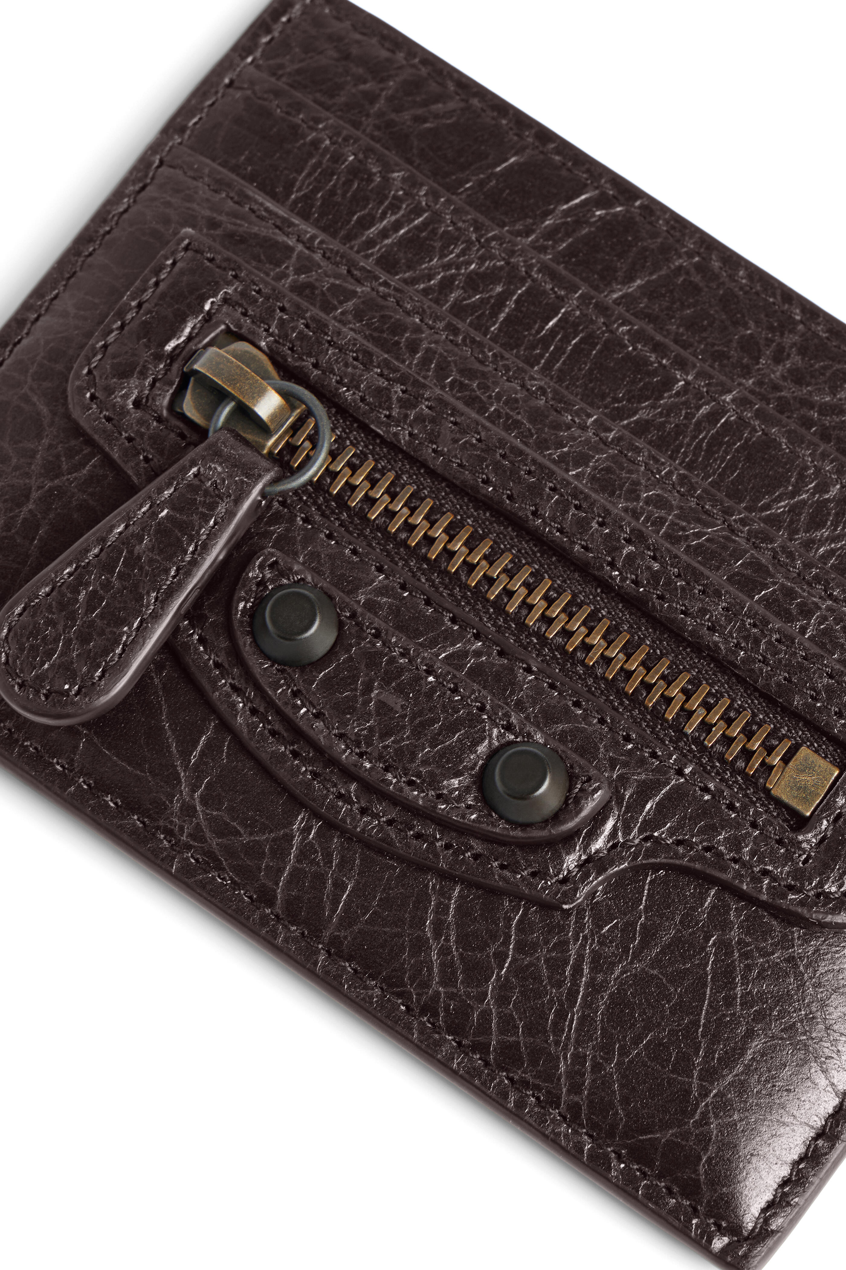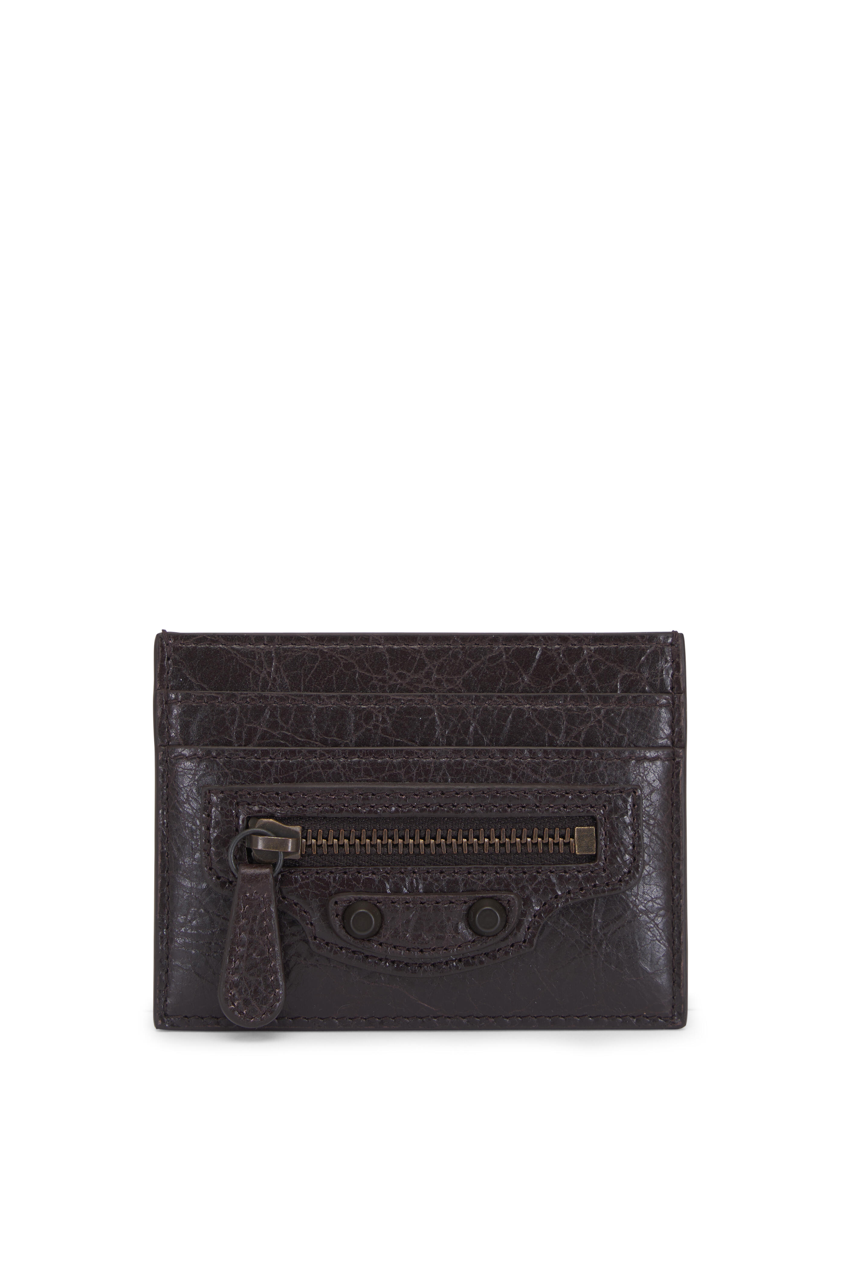 Arena Storico lambskin leather. Logo debossed tone-on-tone at back. Front zipped pocket. Four card slots; one bill pocket. Brass hardware. Made in Italy. Length: 3.9". Height: 3.1". Width: 0.2".