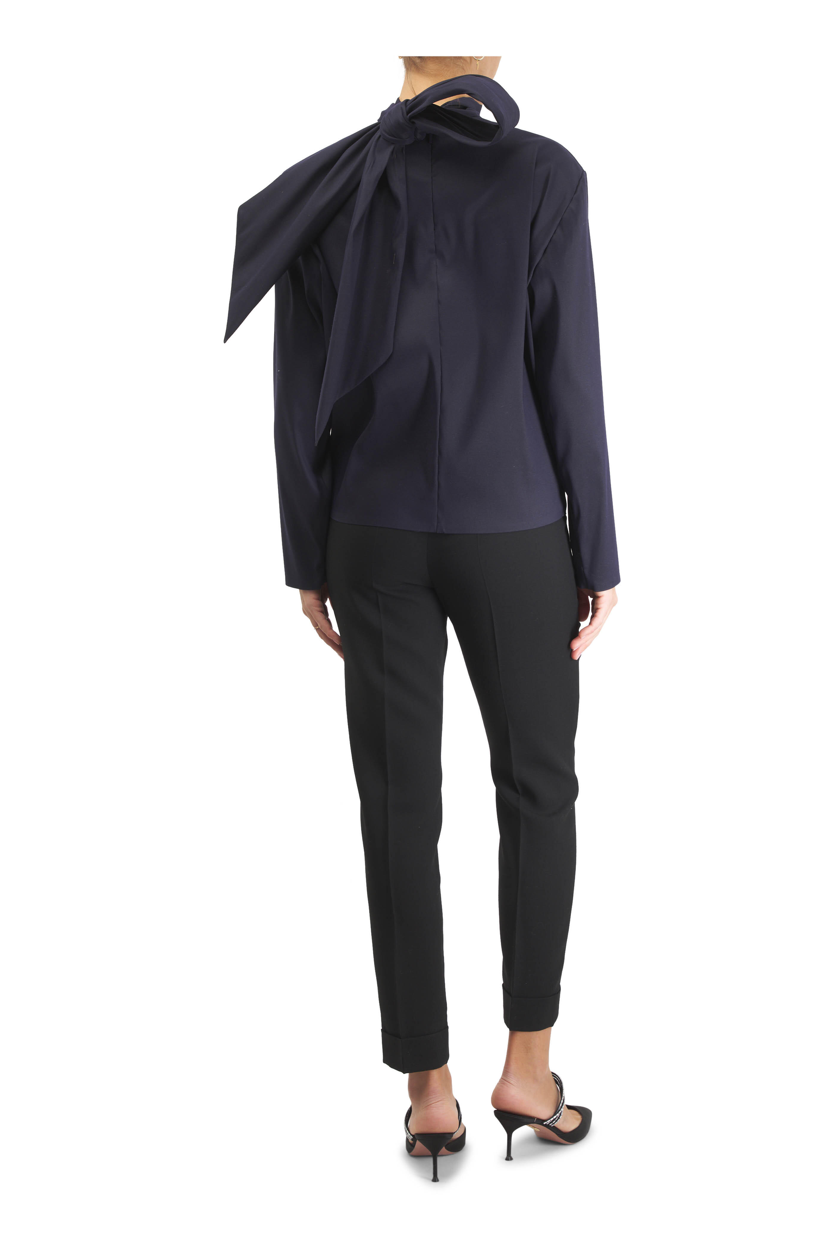 - Stand collar with lavallière tie