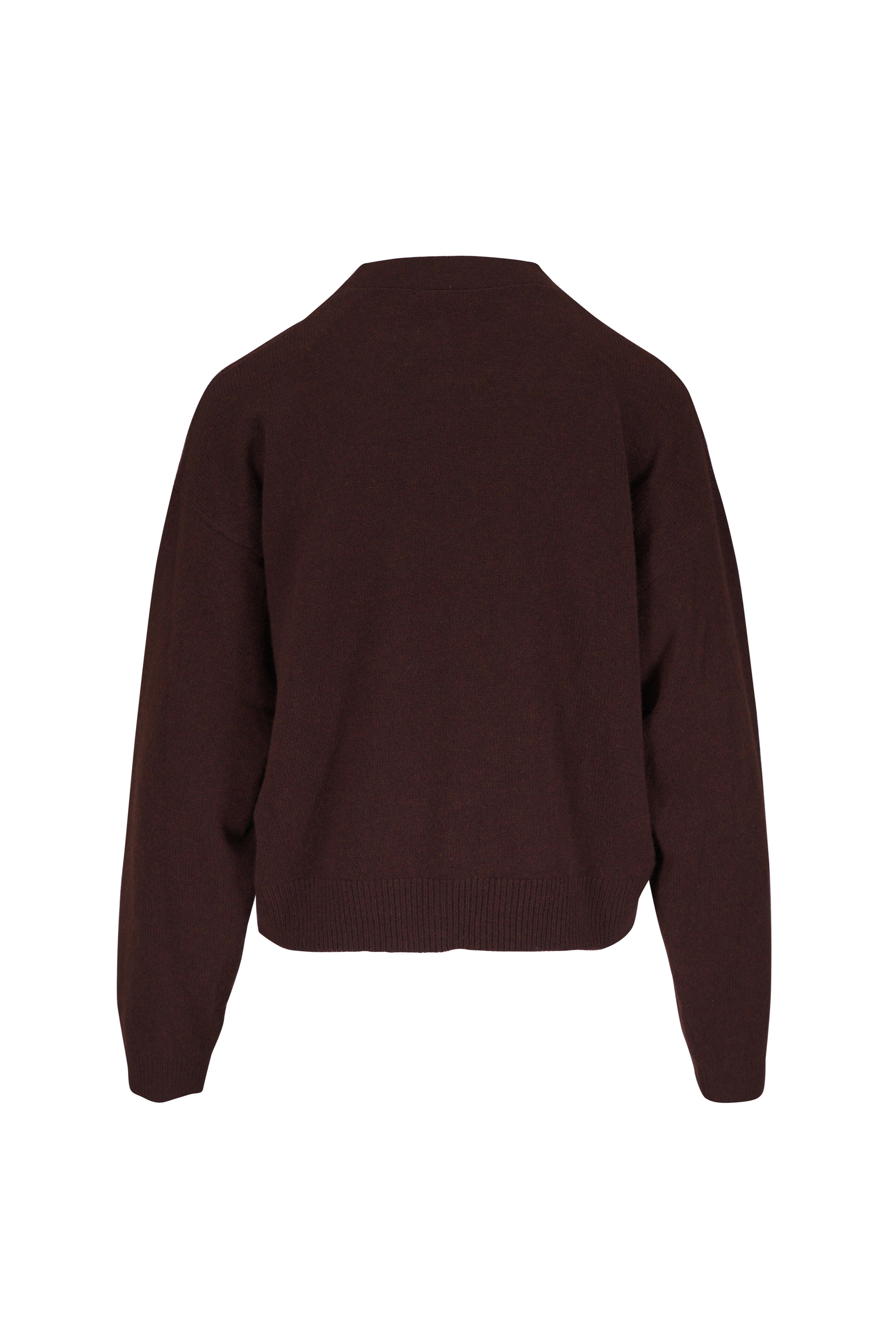 V-neckline. Front button placket. Made in the USA. Relaxed fit. 100% cashmere. Dry clean.