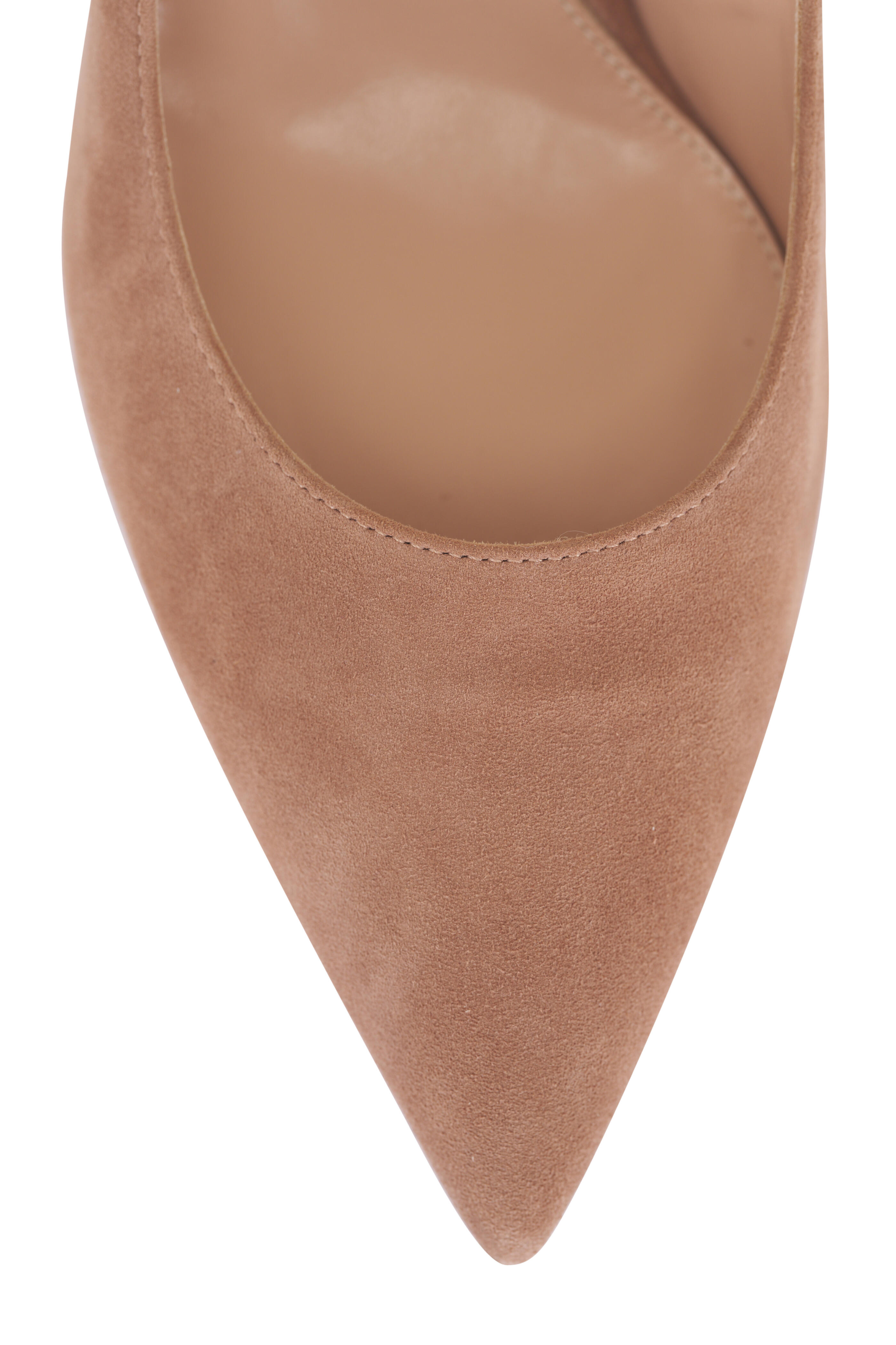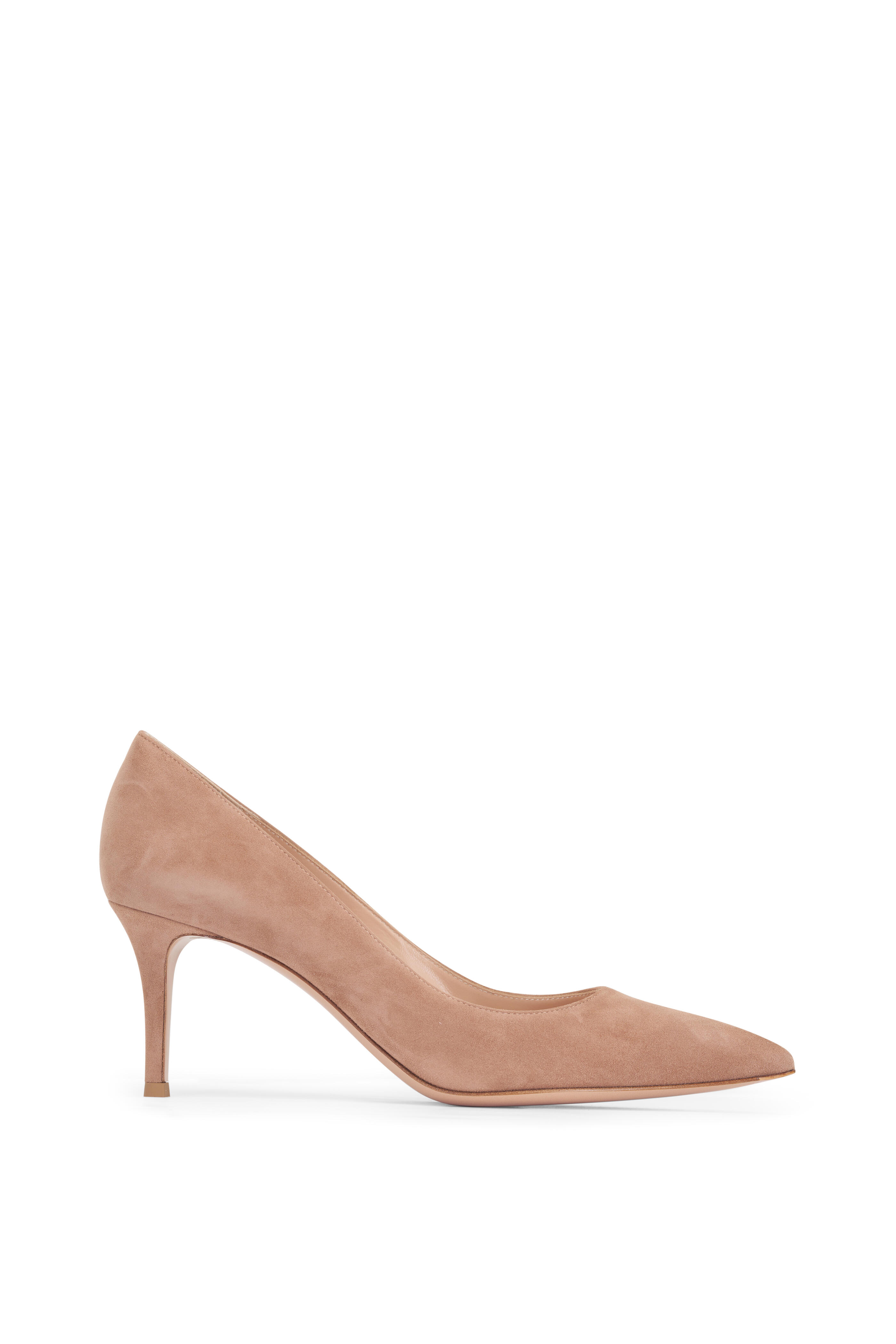 Suede upper. Pointed toe. Slip-on style. Self-covered stiletto heel. Leather lining and insole. Leather sole. Made in Italy. Heel measurement: 70mm.