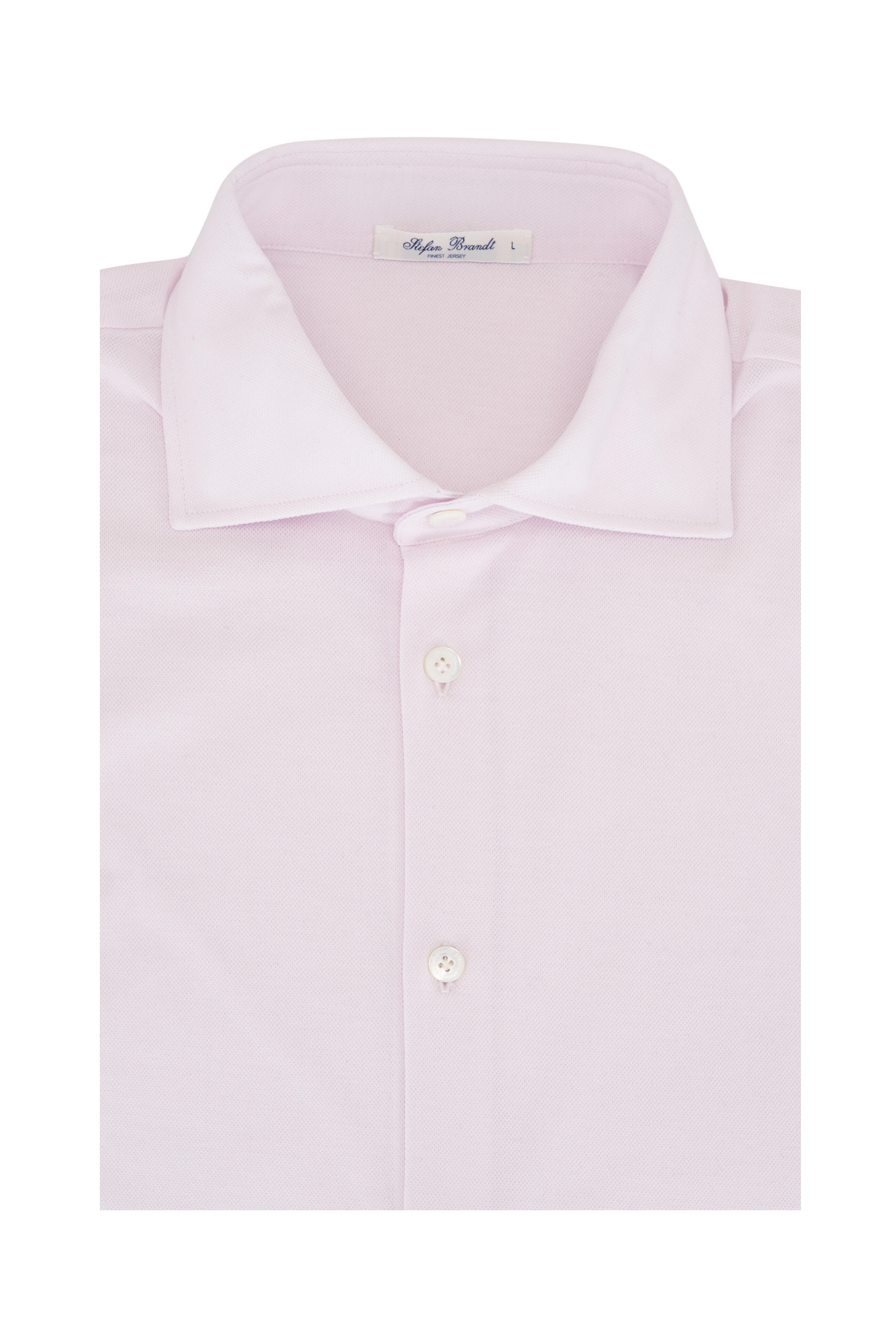 Spread collar. Front button placket. Single button mitered cuffs. Imported. 100% cotton. Machine wash.