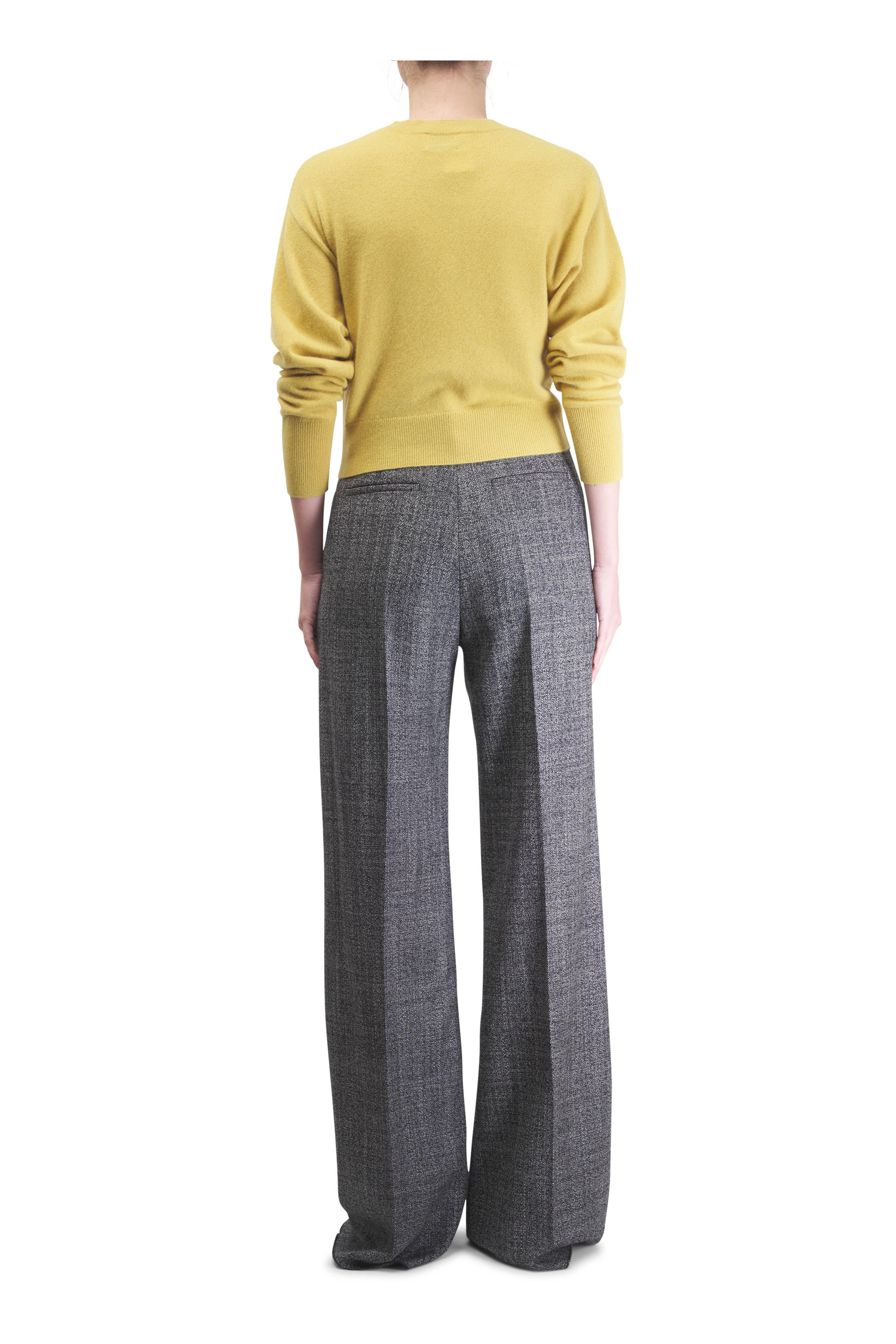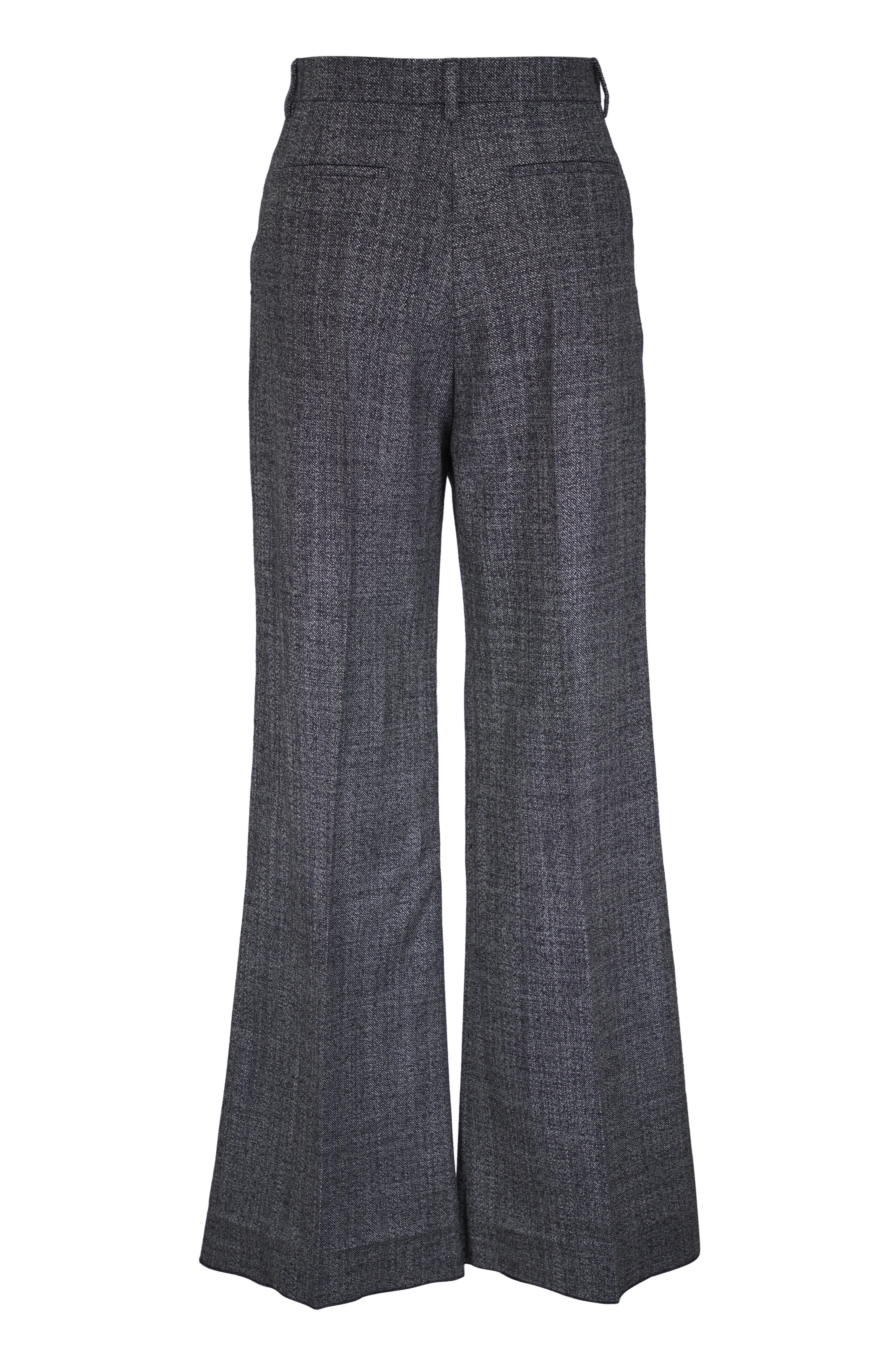 Banded waist; belt loops. Button tab closure. Side slip pockets; back welt pockets. Unfinished hem. Made in Italy. 36" inseam. 100% virgin wool; lined. Dry clean.