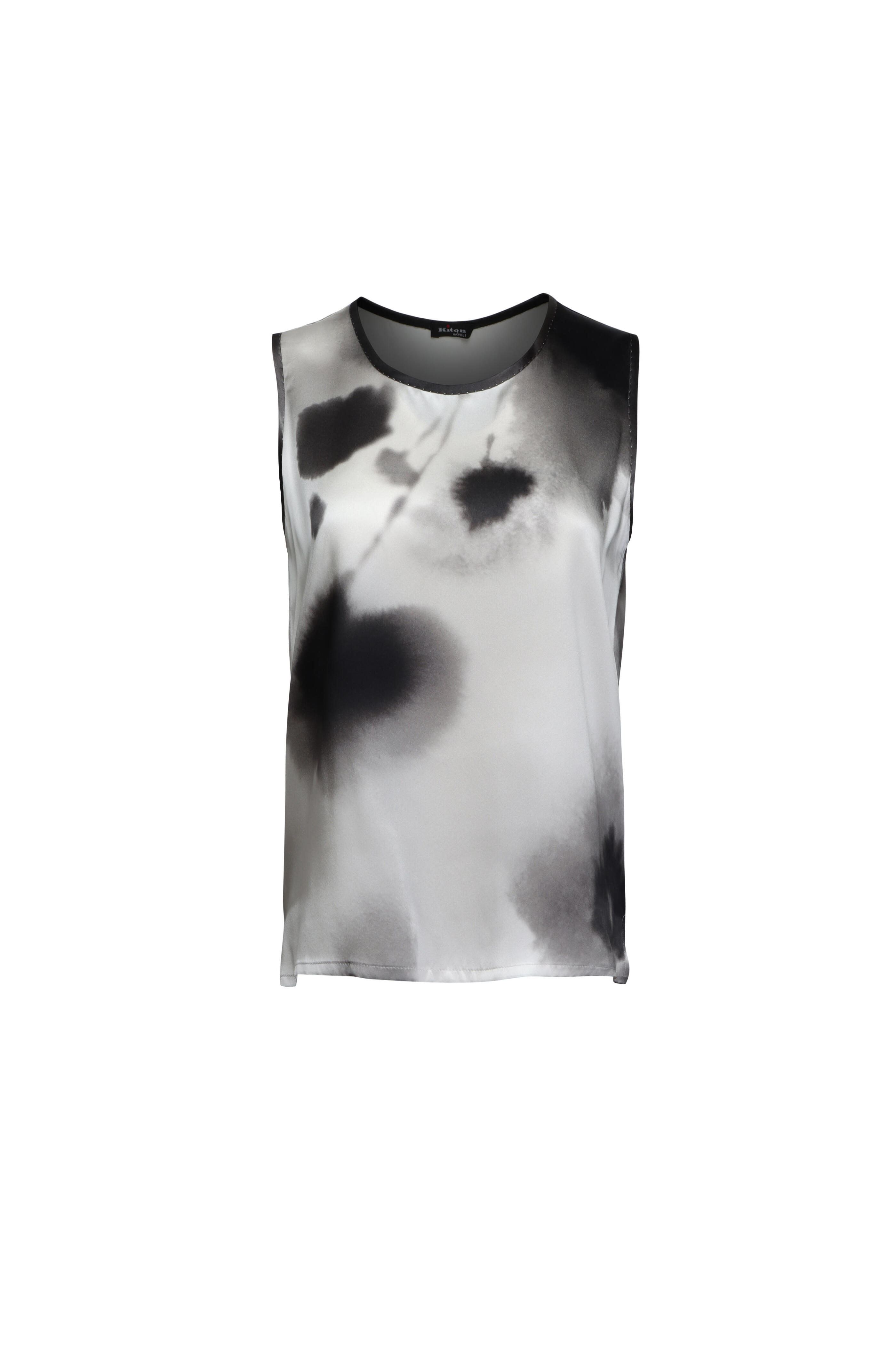 Round neck. Sleeveless. Relaxed fit. Straight hem. Made in Italy. 100% silk. Dry clean.
