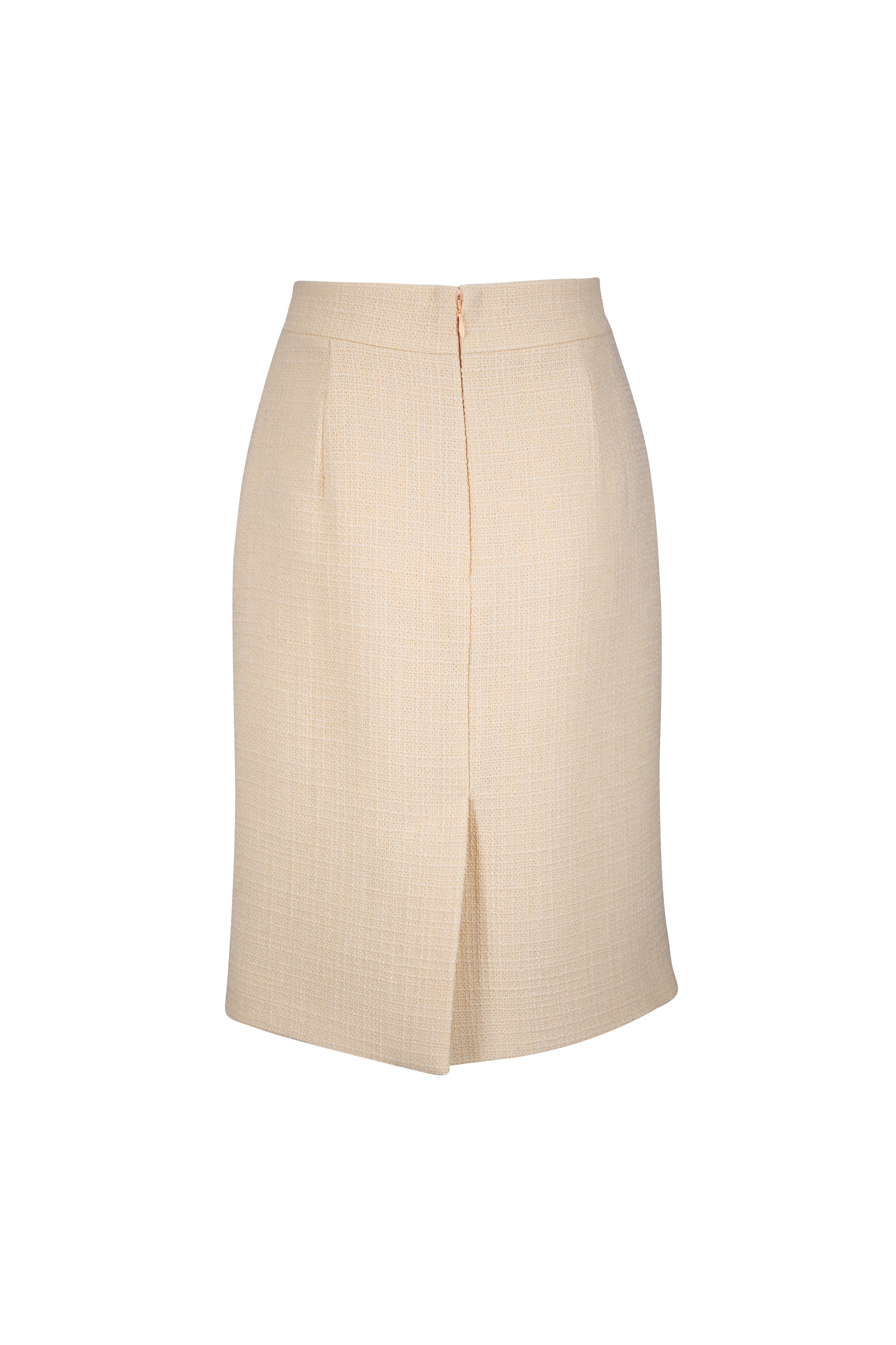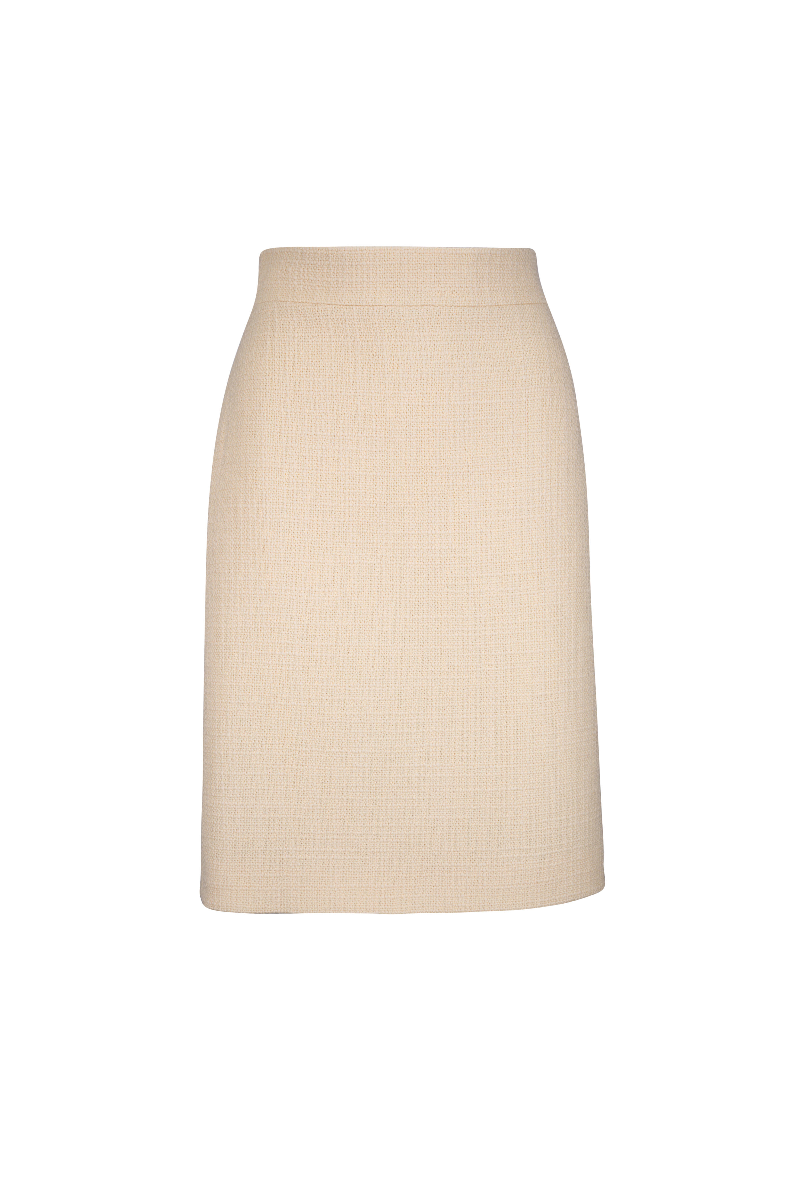 Banded waist. Concealed back zip. Back vent. Made in Italy. Waist to hem 25" (size 4). 97% Virgin wool, 3% polyamide; lined. Dry clean.