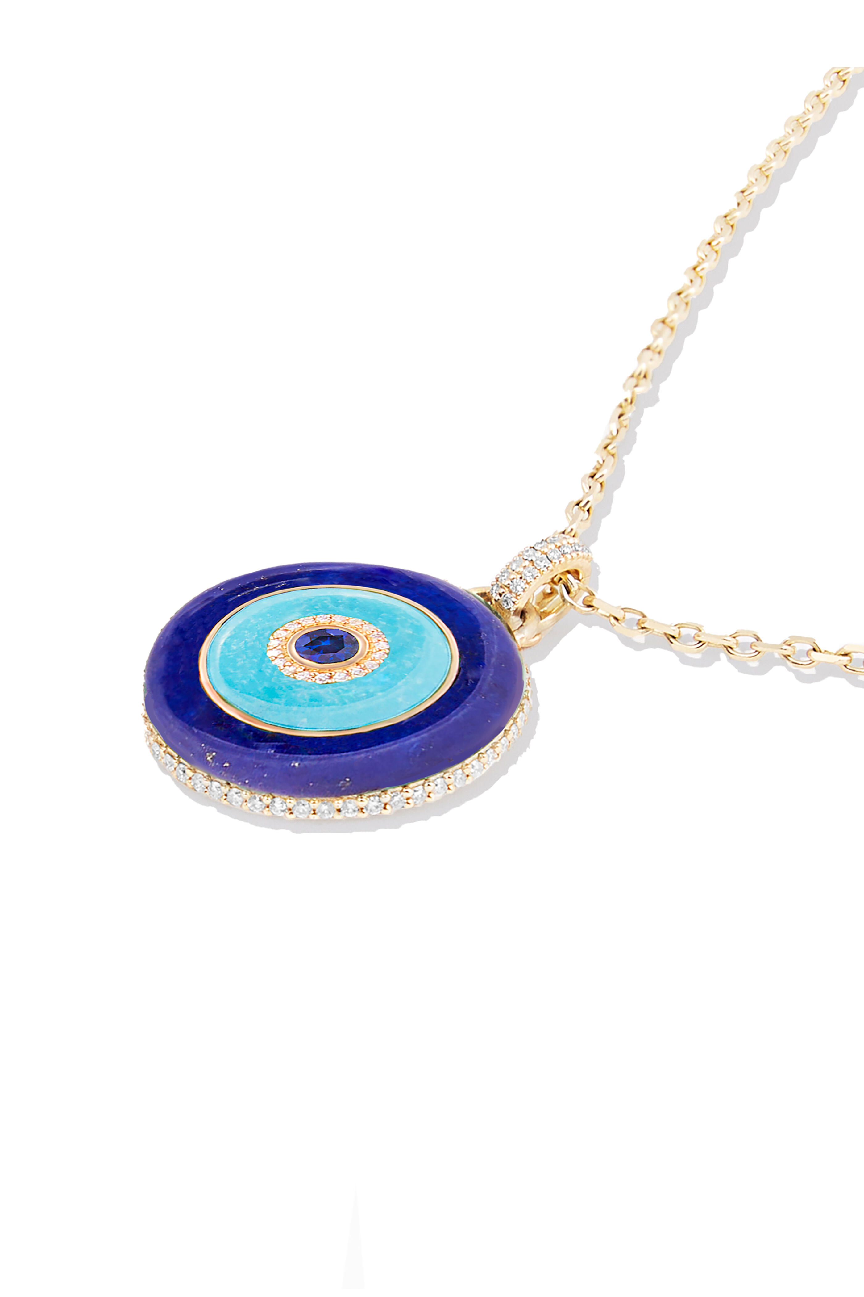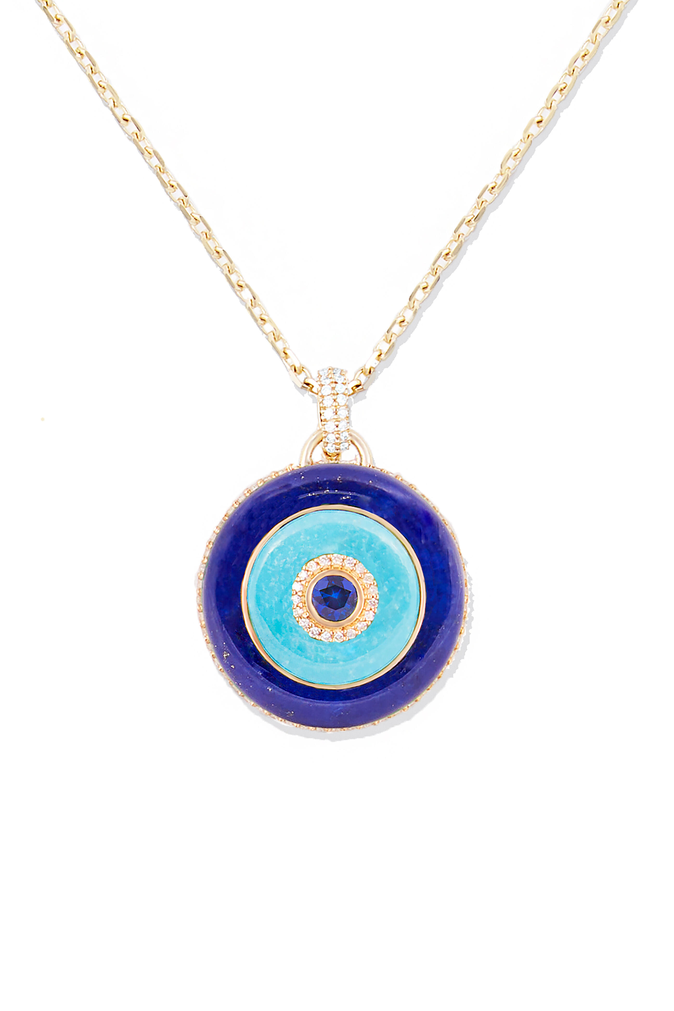 14k Yellow Gold. Turquoise. Lapis. White Diamond. Blue Sapphire.