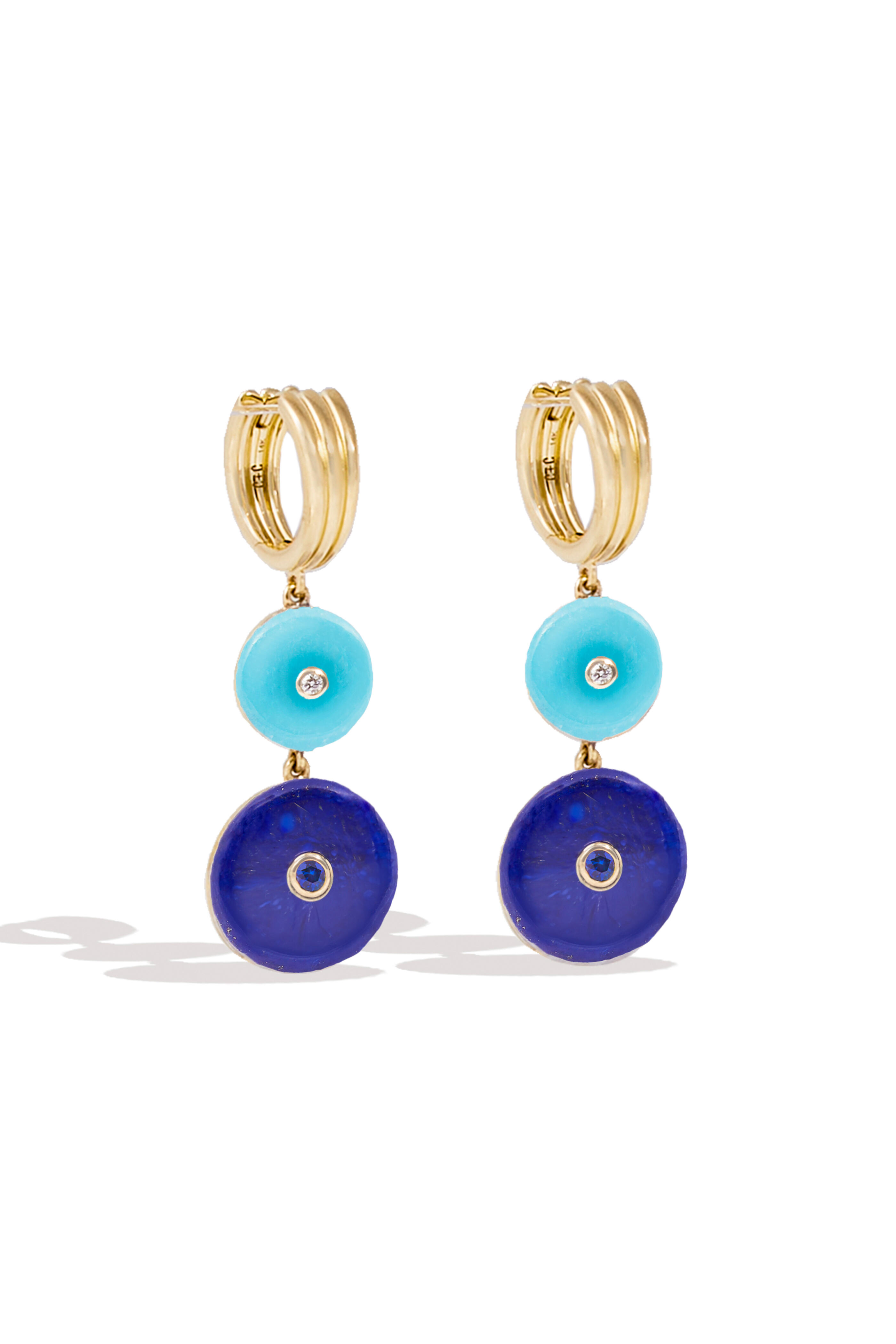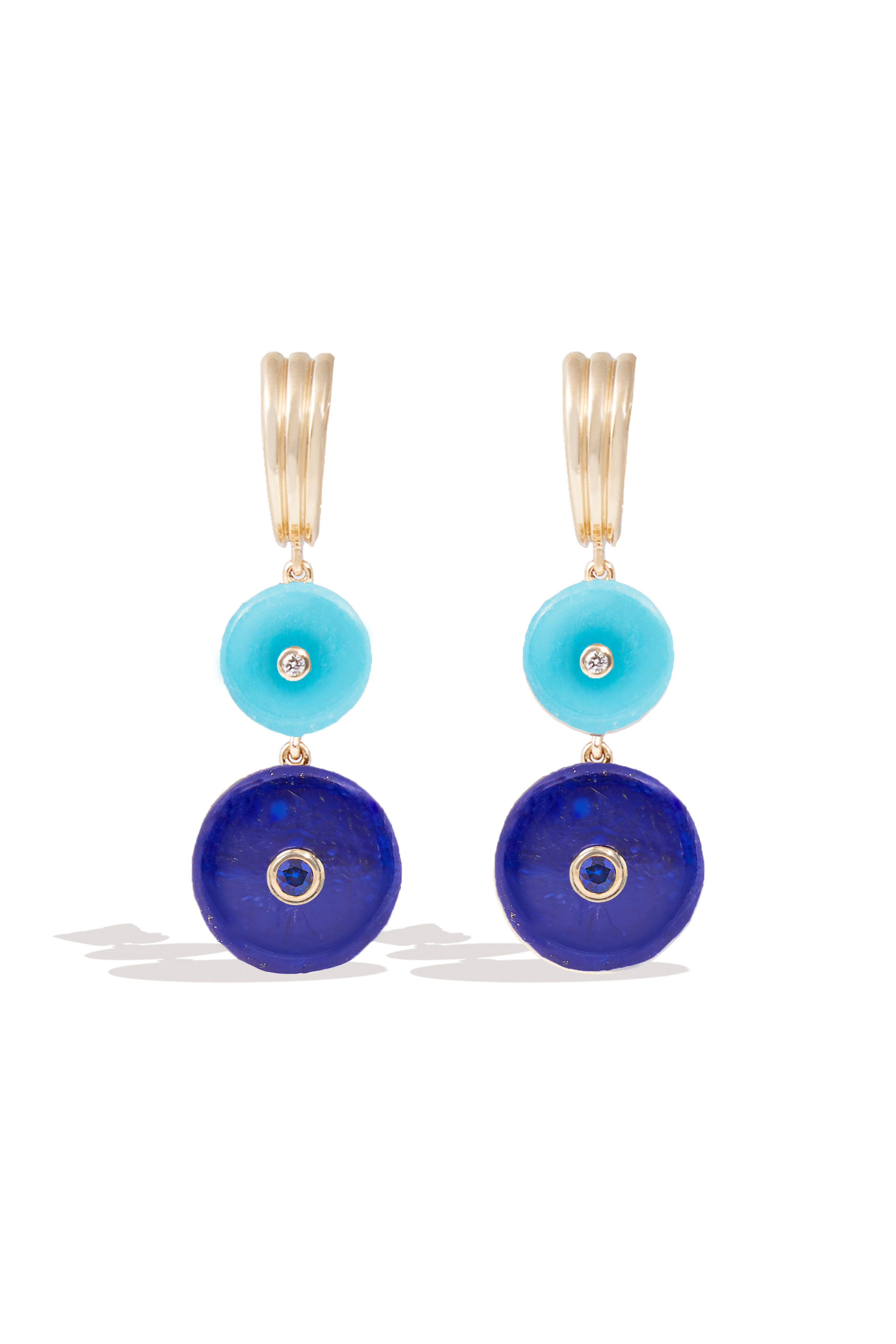 14k Yellow Gold. White Diamond. Turquoise. Lapis.