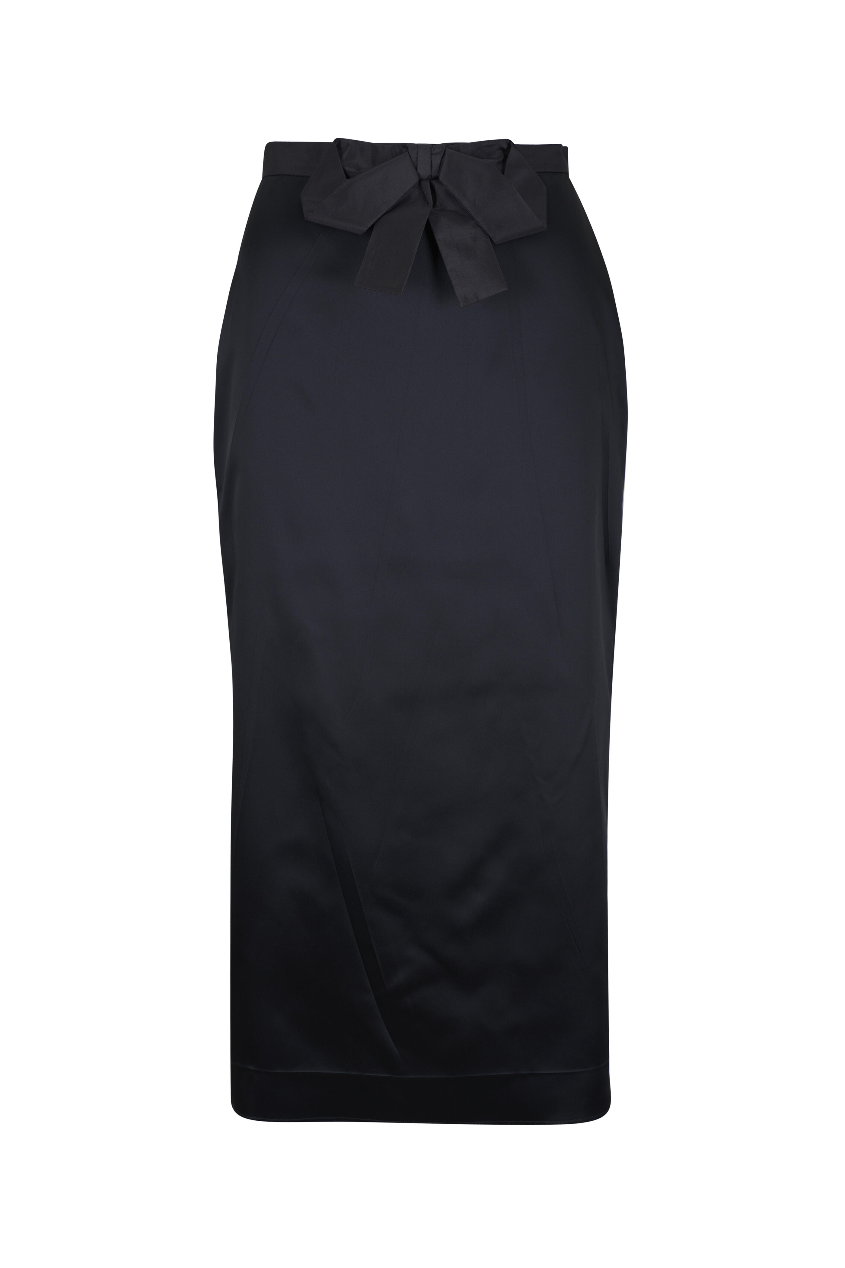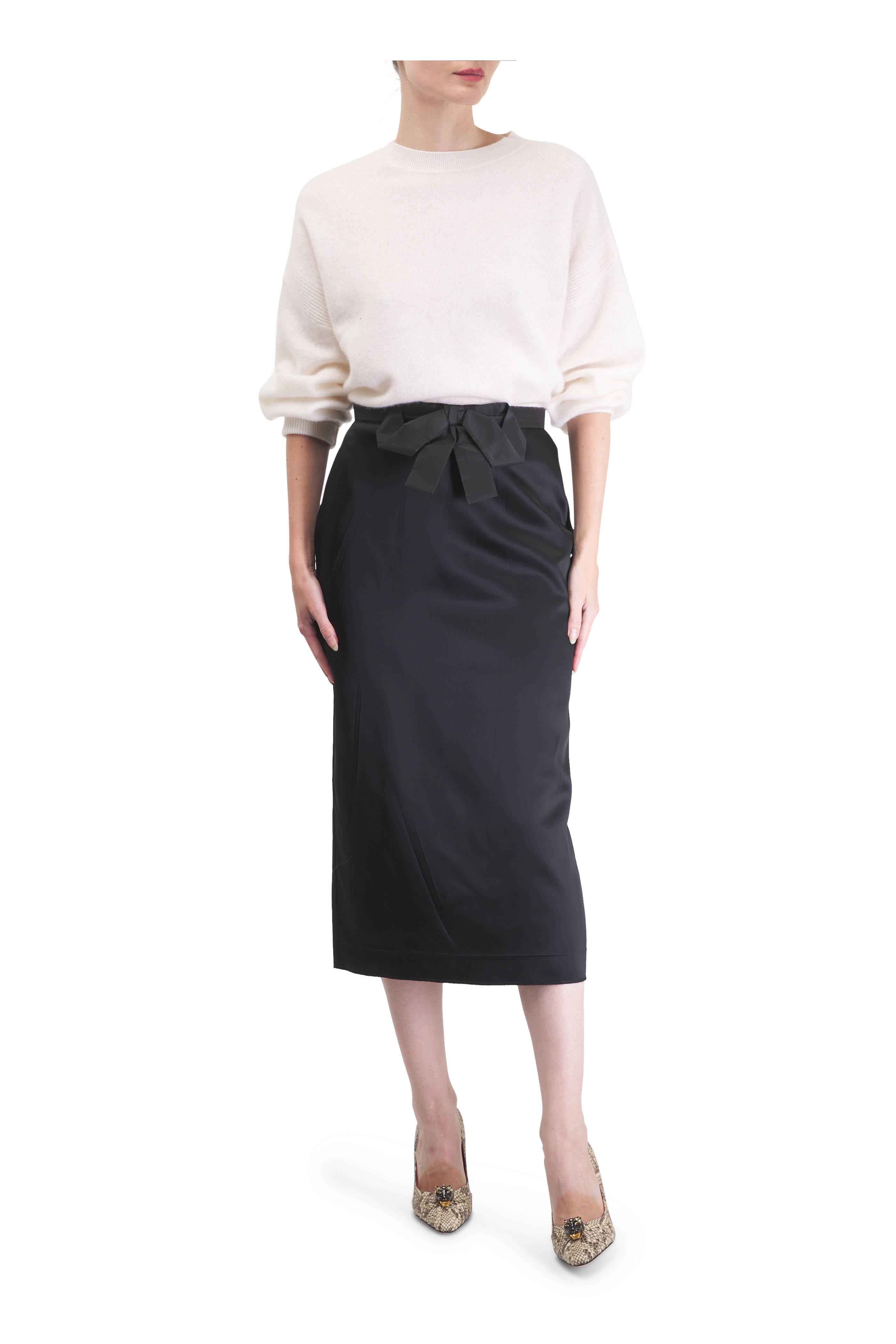 Concealed back zip. Bow detail at waist. Back vent. Made in Italy. Approximately 32" shoulder to hem (measurements taken from size 4). 100% acetate; contrasting fabric: 100% silk; lining: 100% silk. Dry clean.