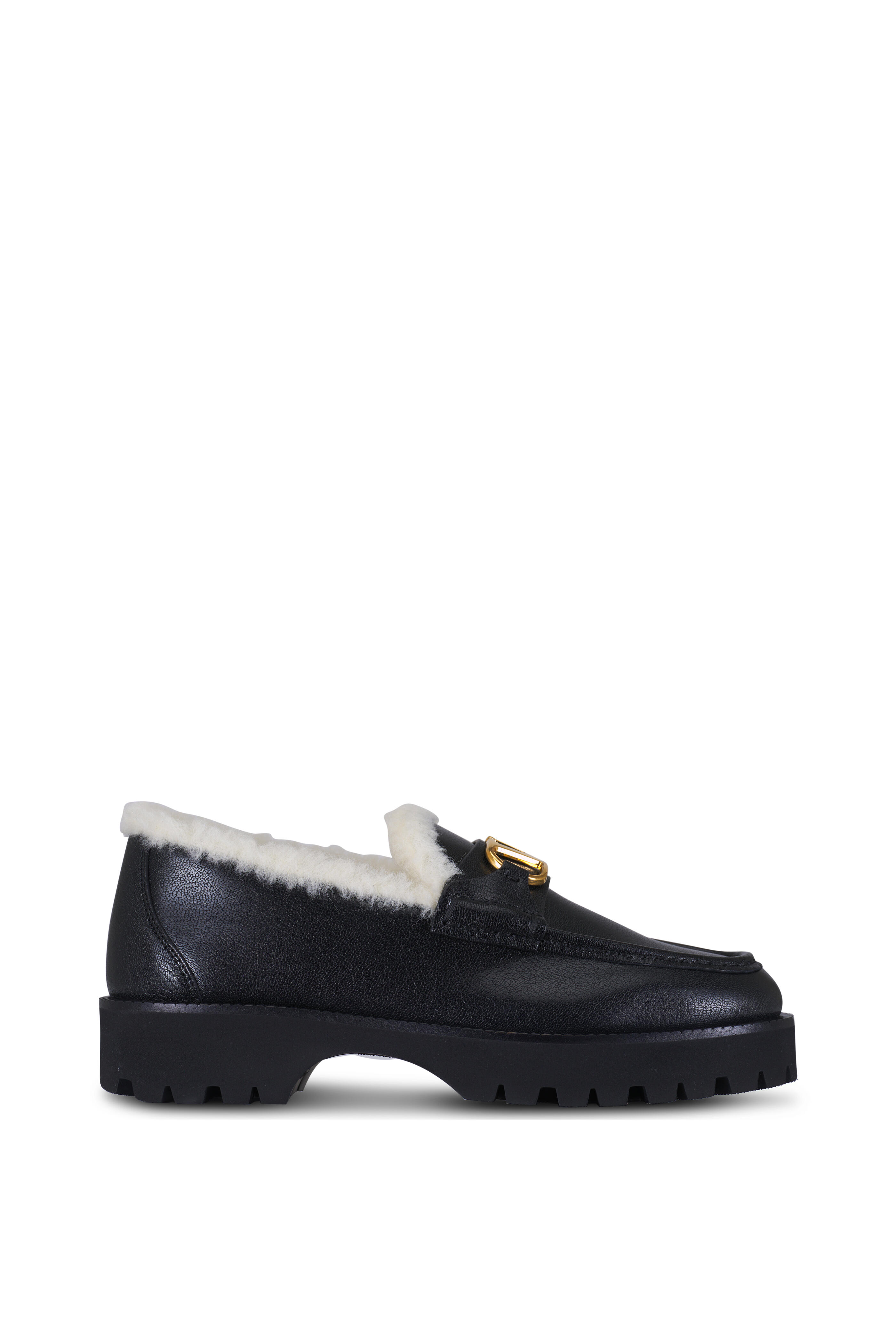 VLOGO Black Genuine Shearling Lined Leather Loafer