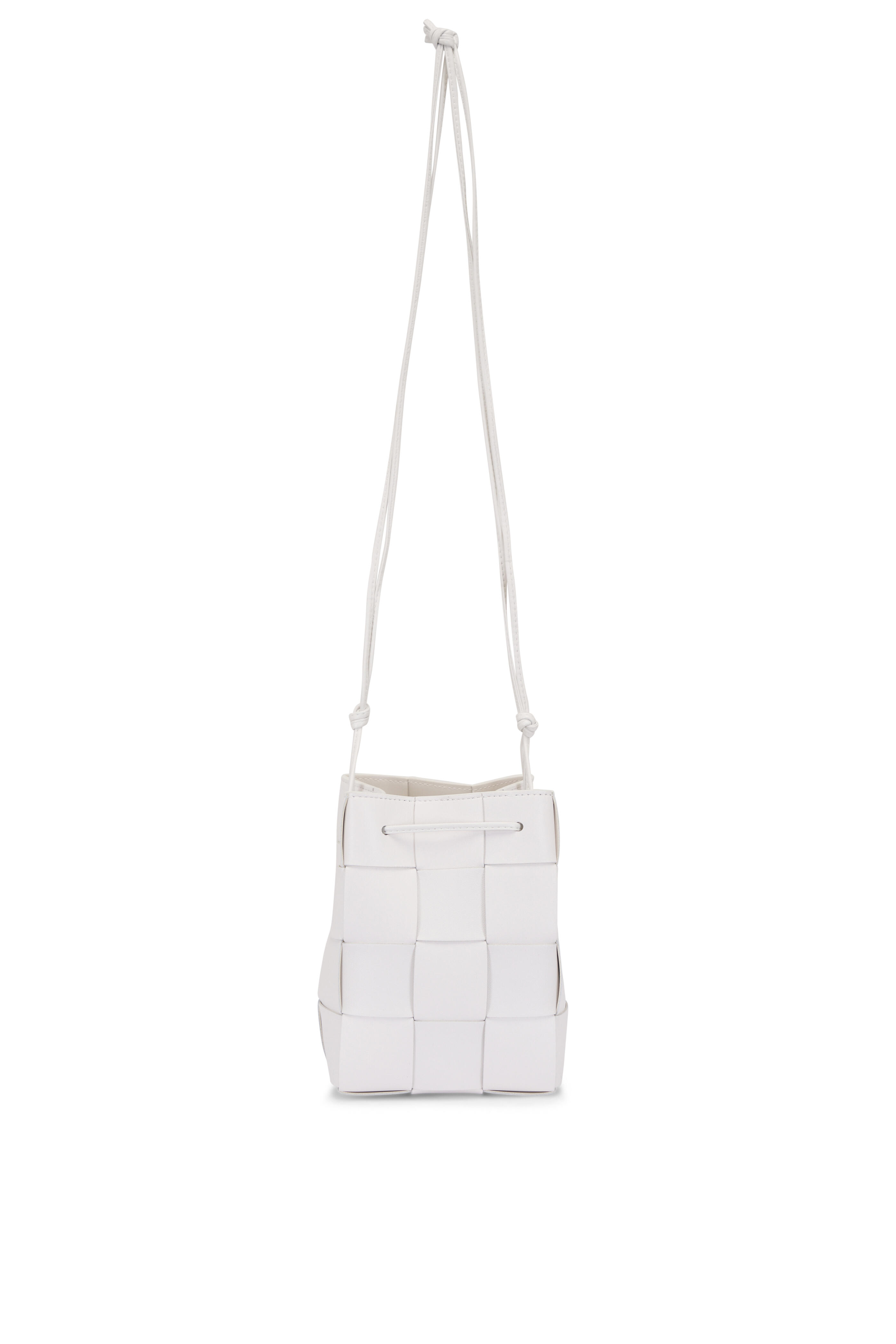 Intreccio lambskin leather. Drawstring closure. Single interior open pocket. Knotted shoulder strap. Calfskin leather lining. Made in Italy. Height: 18 cm | 7.1". Width: 14 cm | 5.5". Depth: 14 cm | 5.5". Strap drop: 50 cm | 19.7".