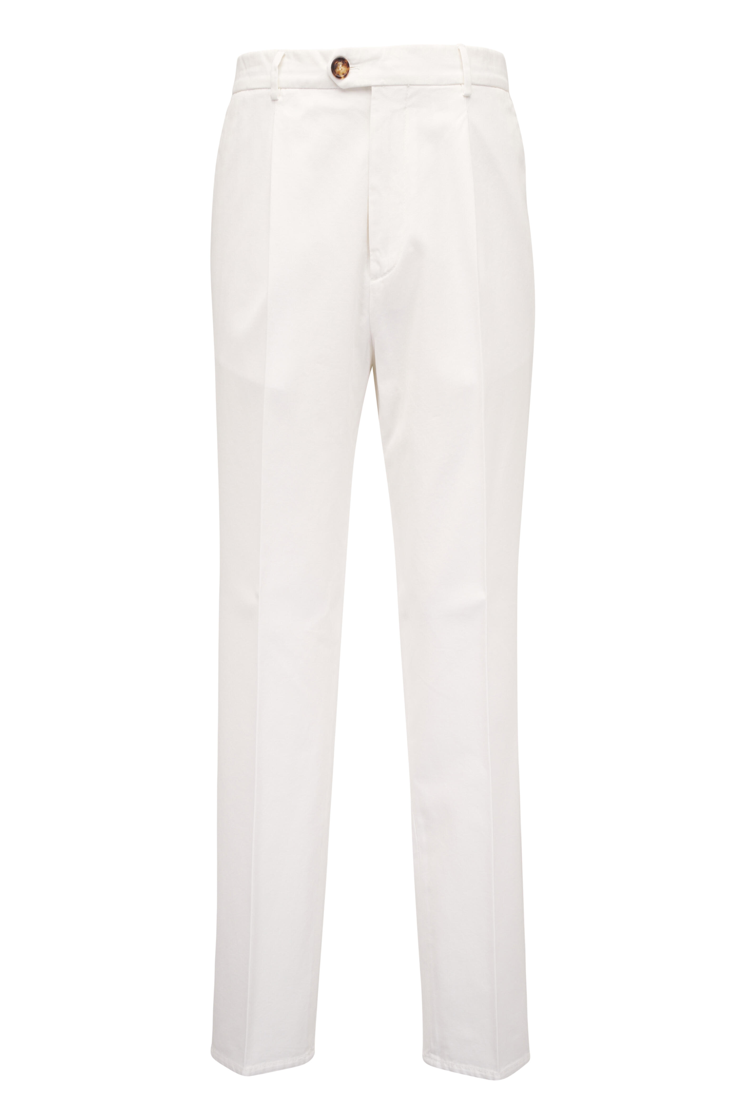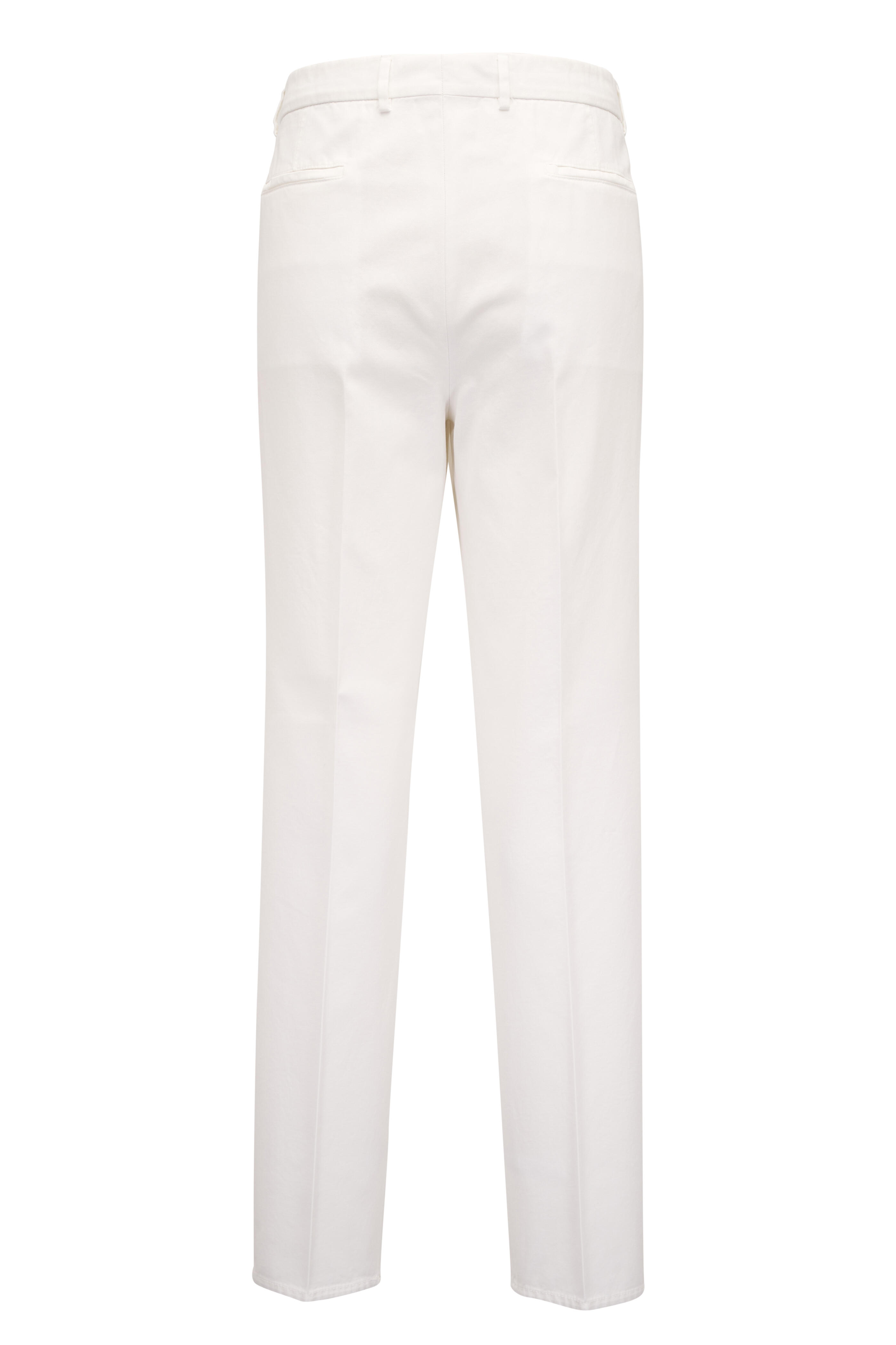 Zip fly; button closure. Belt loops. Front slip pockets; back welt pockets. Made in Italy. Leisure fit. 34" inseam. 100% cotton. Machine wash.