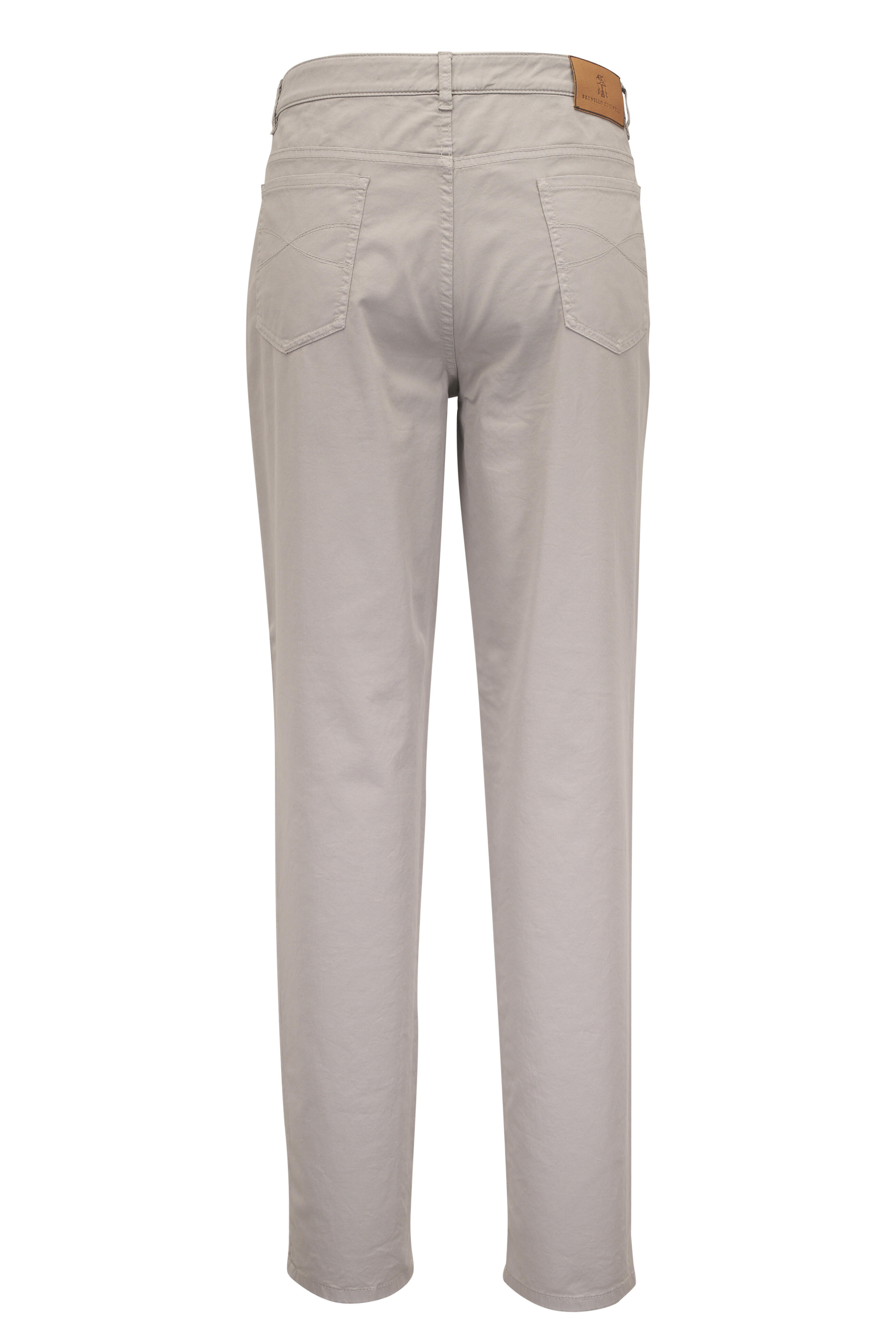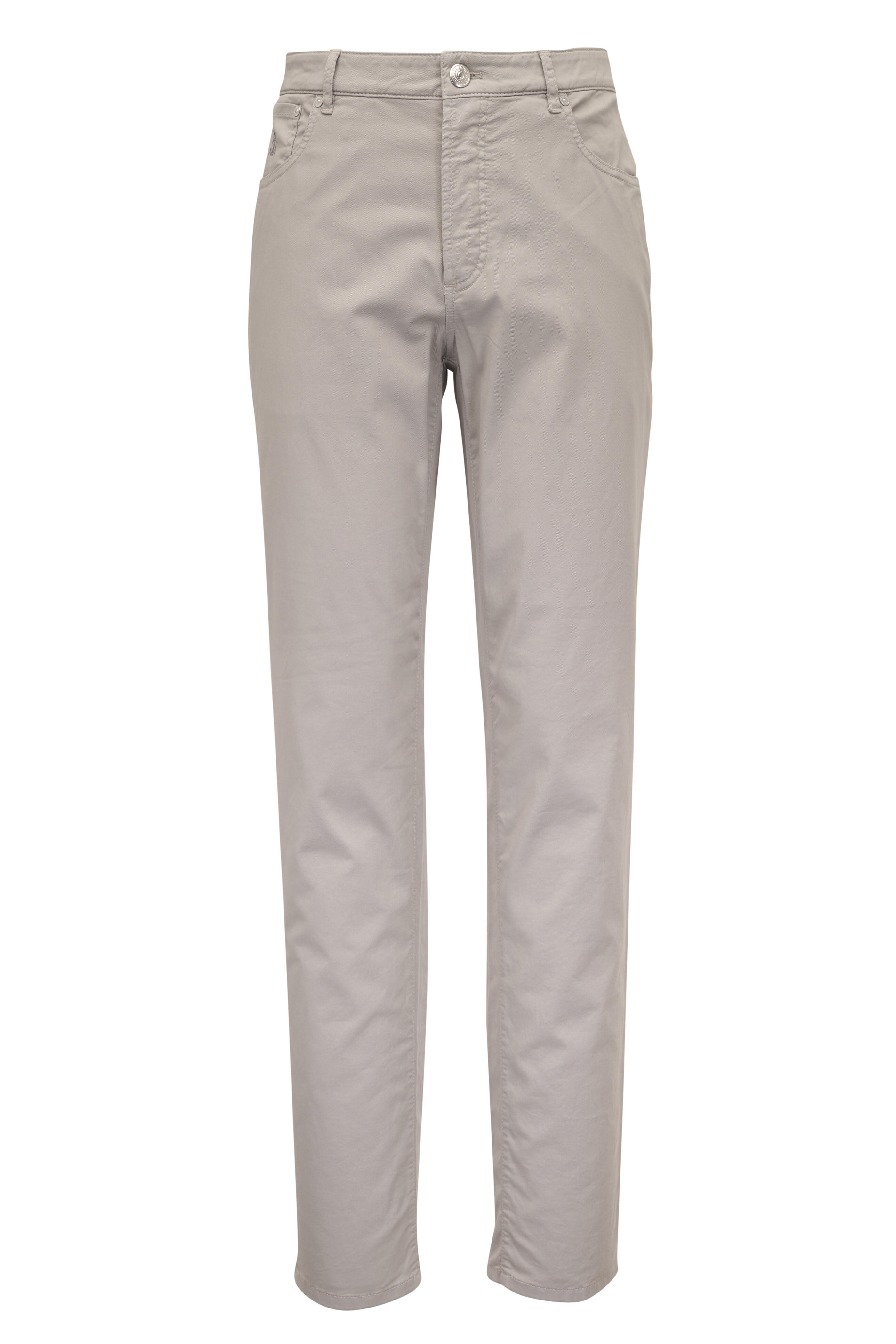 Belt loops. Concealed four button fly. Five pocket styling. Made in Italy. 32" Inseam (size 36 R). 97% cotton, 3% elastane. Machine wash.