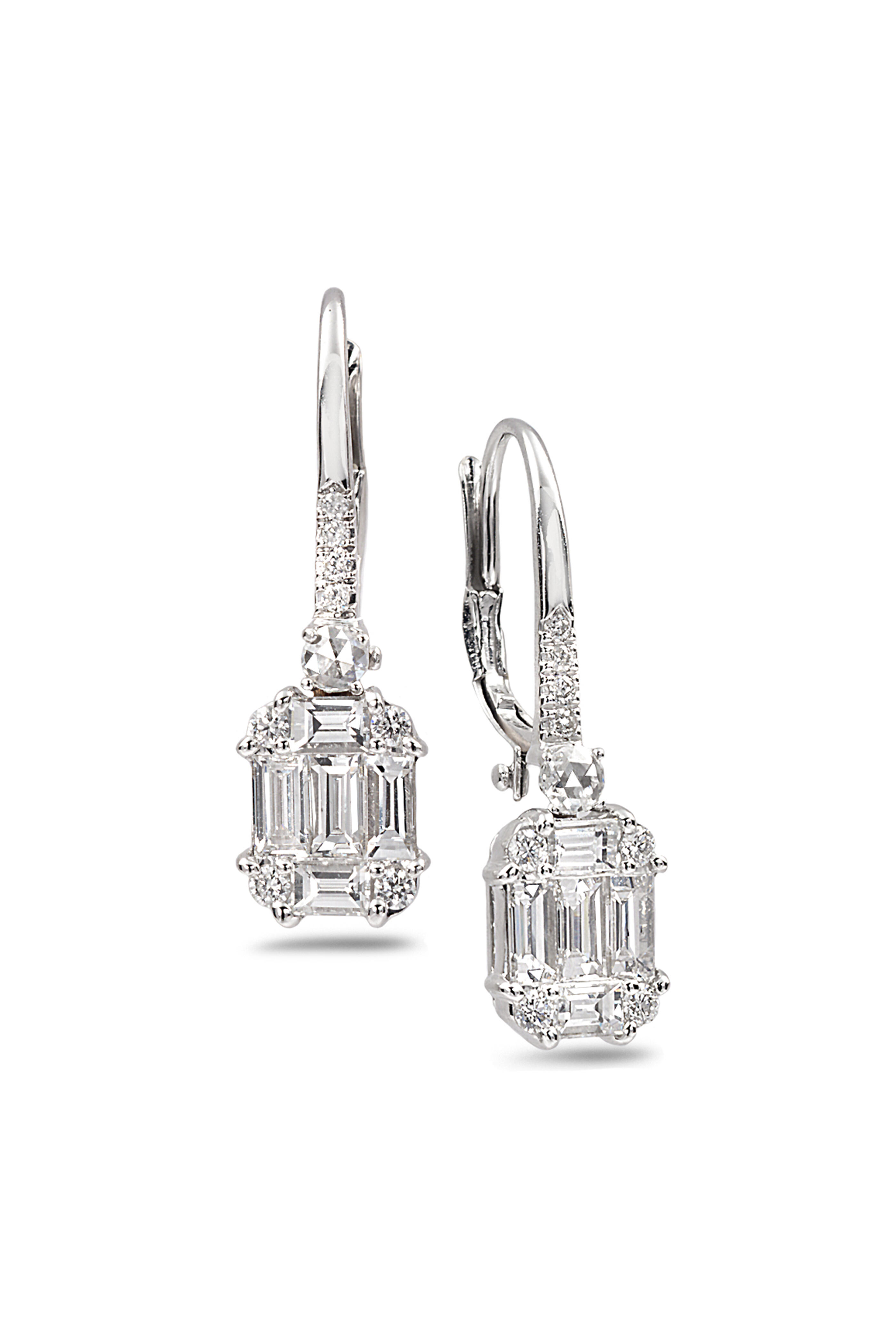 18k White Gold. White Rhodium. 1.104 ct White Diamond. Lever Back.