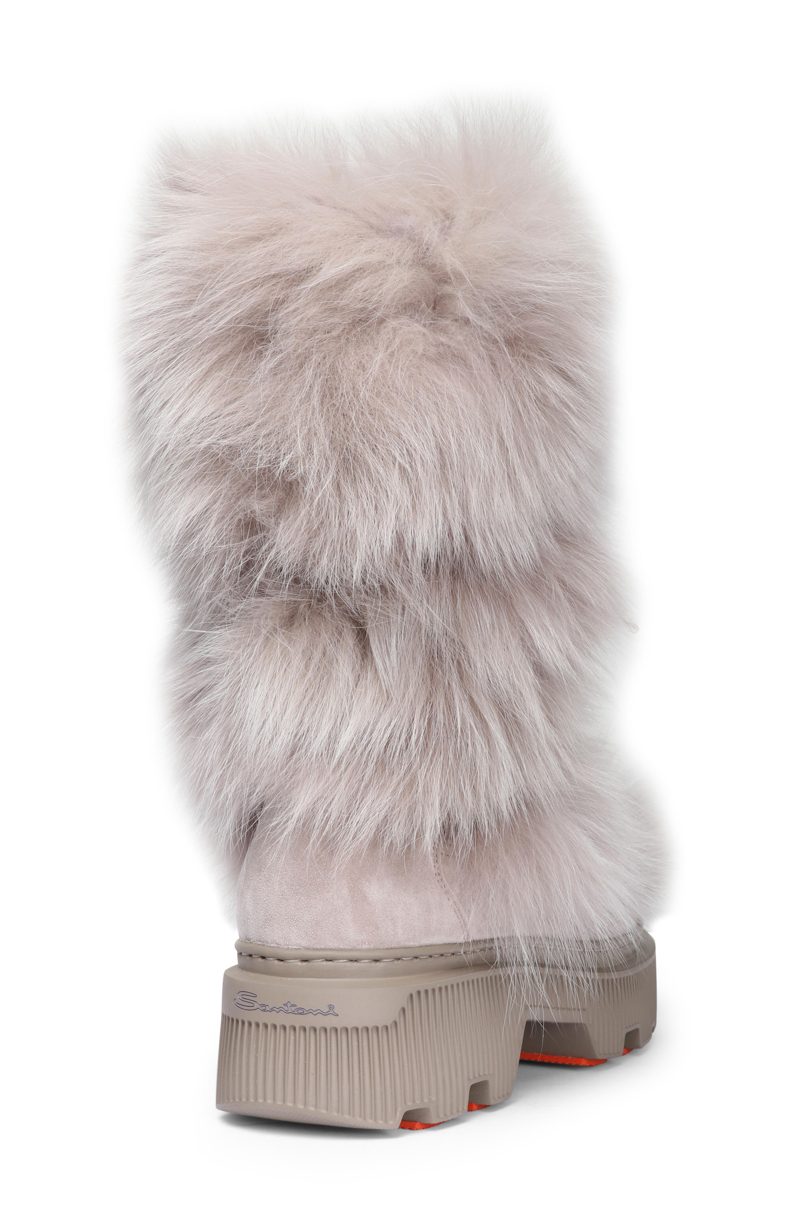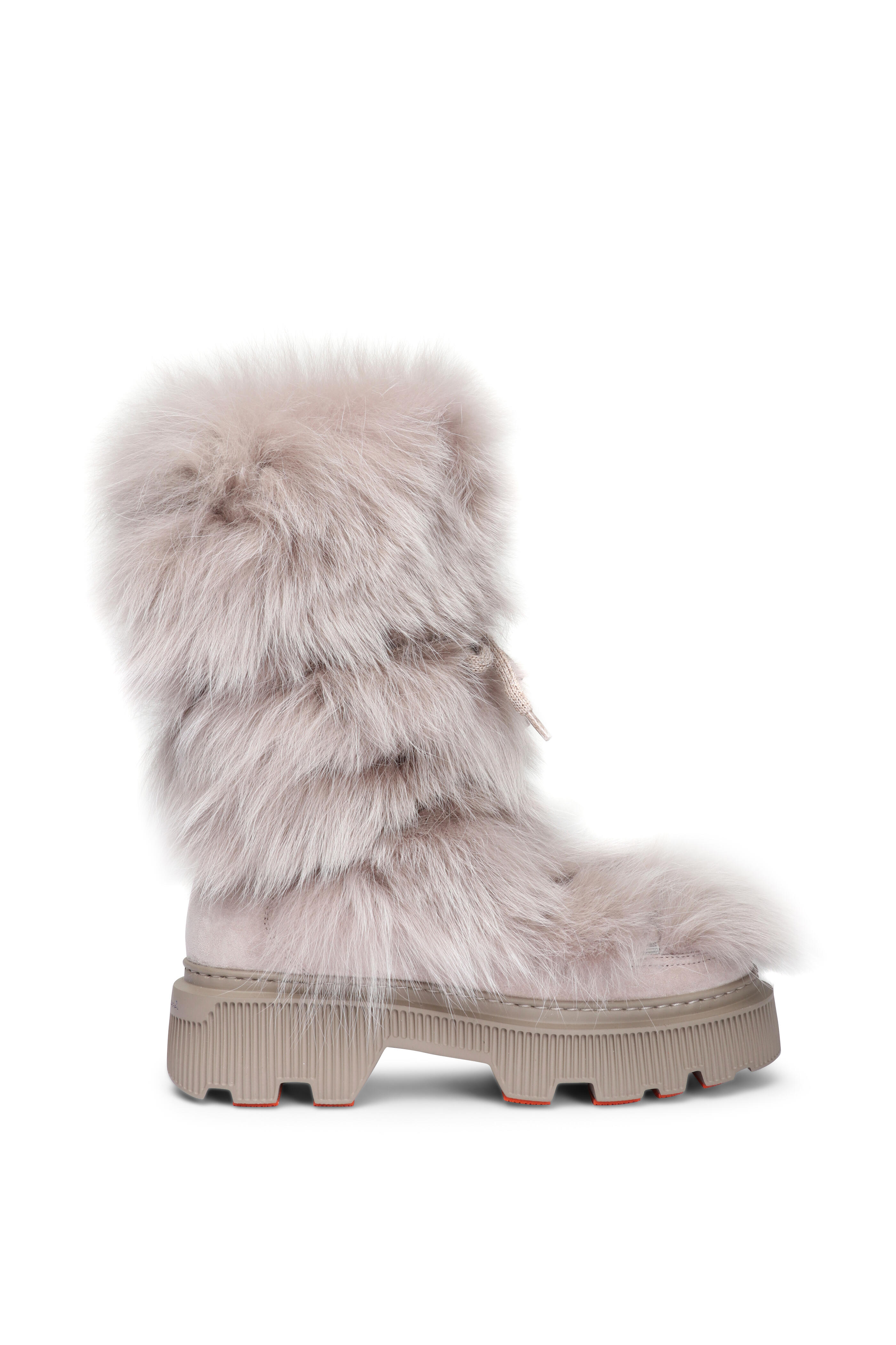 Suede and fox upper. Leather lining. Rubber lug sole. Round toe. Tie vamp. Made in Italy. Heel measurement: 50mm.