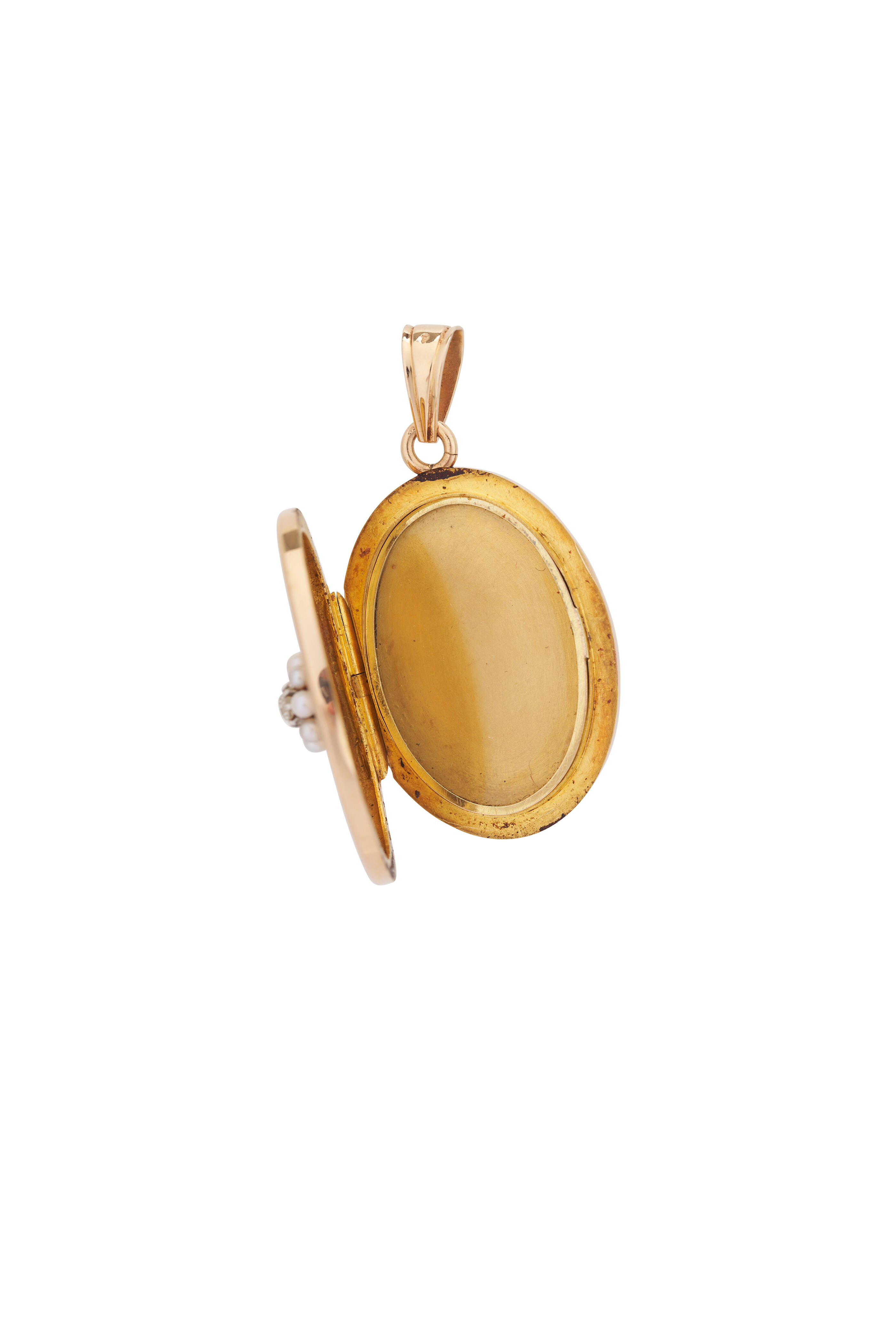 18k Yellow Gold. French Victorian Pearl. Diamond. *Necklace sold separately.
