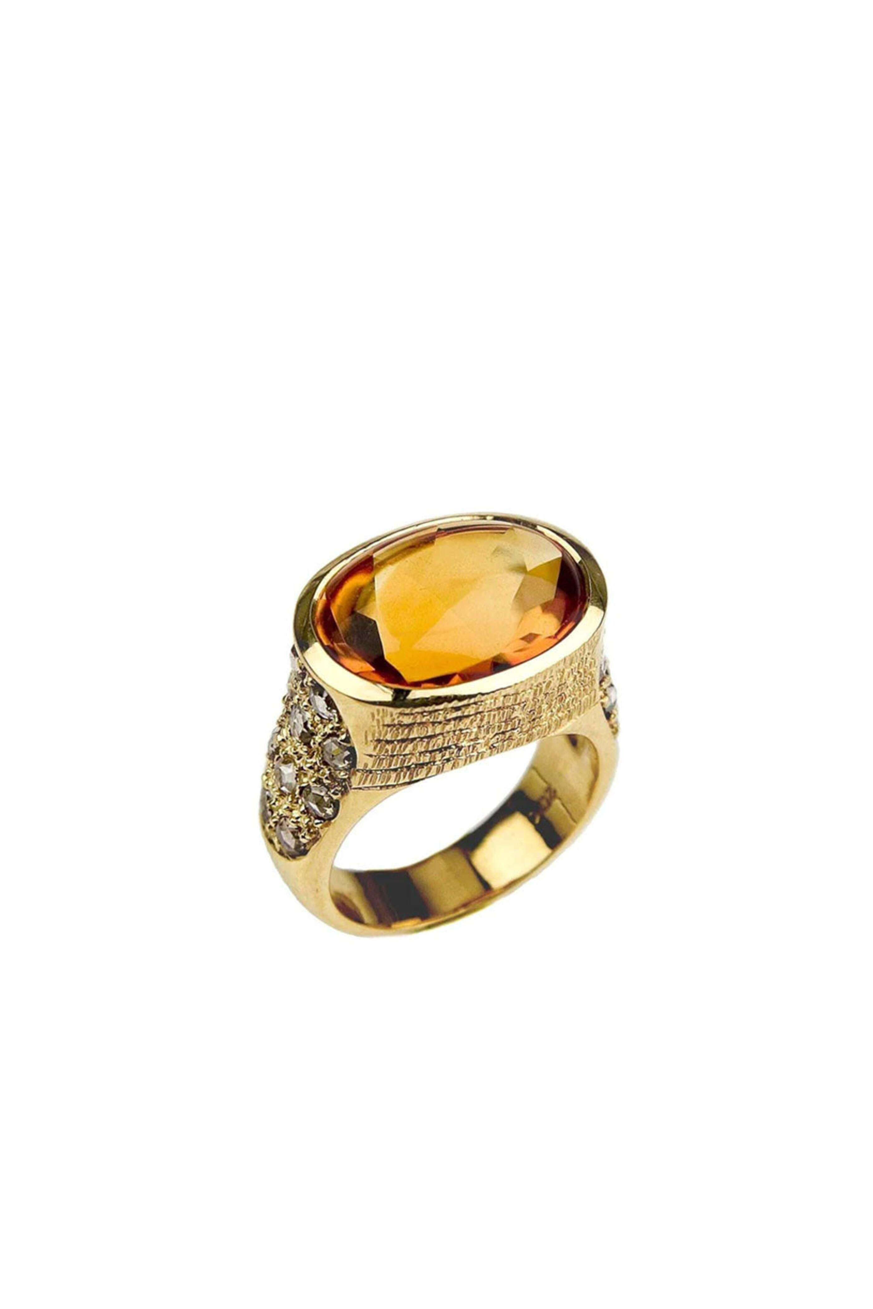 Coomi Eternity Madeira Citrine Ring. 20k yellow gold. Rose cut diamonds 1.33 total carat weight. Madeira citrine 7.74 total carat weight. Ring size 6.