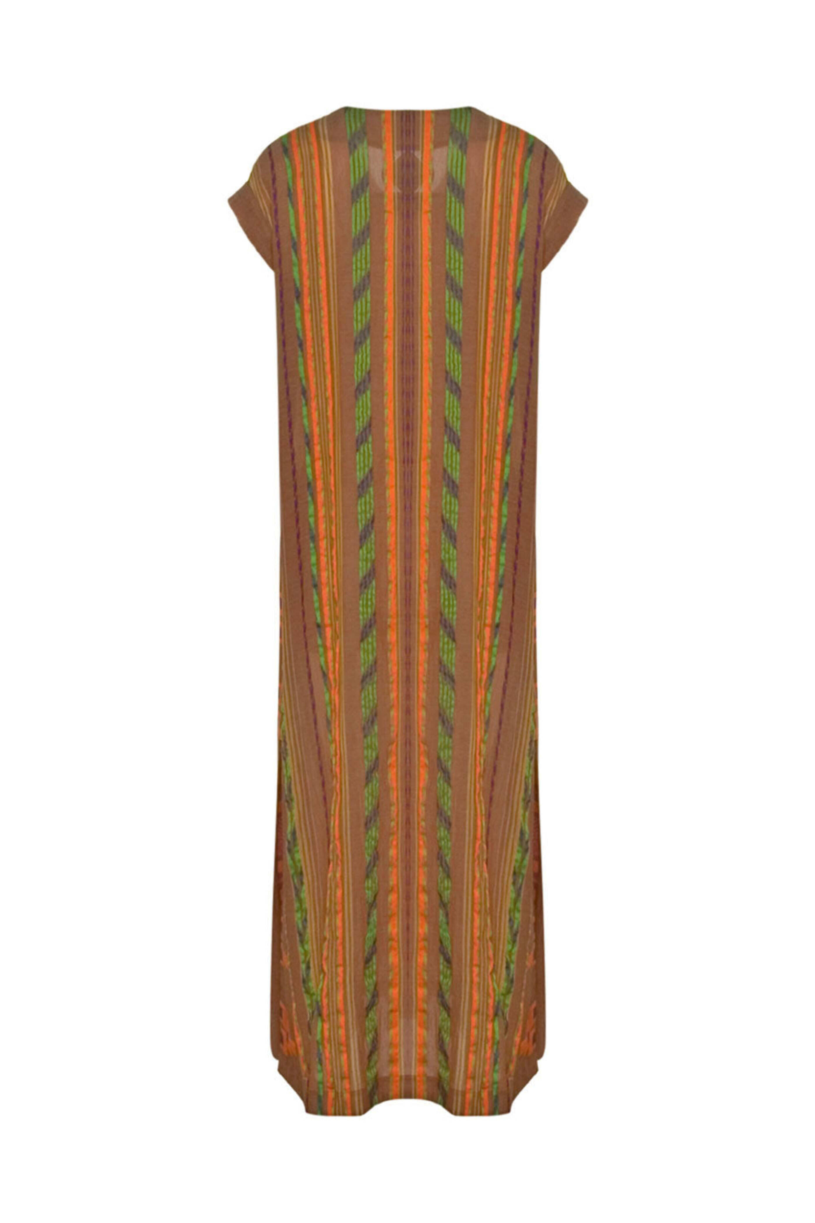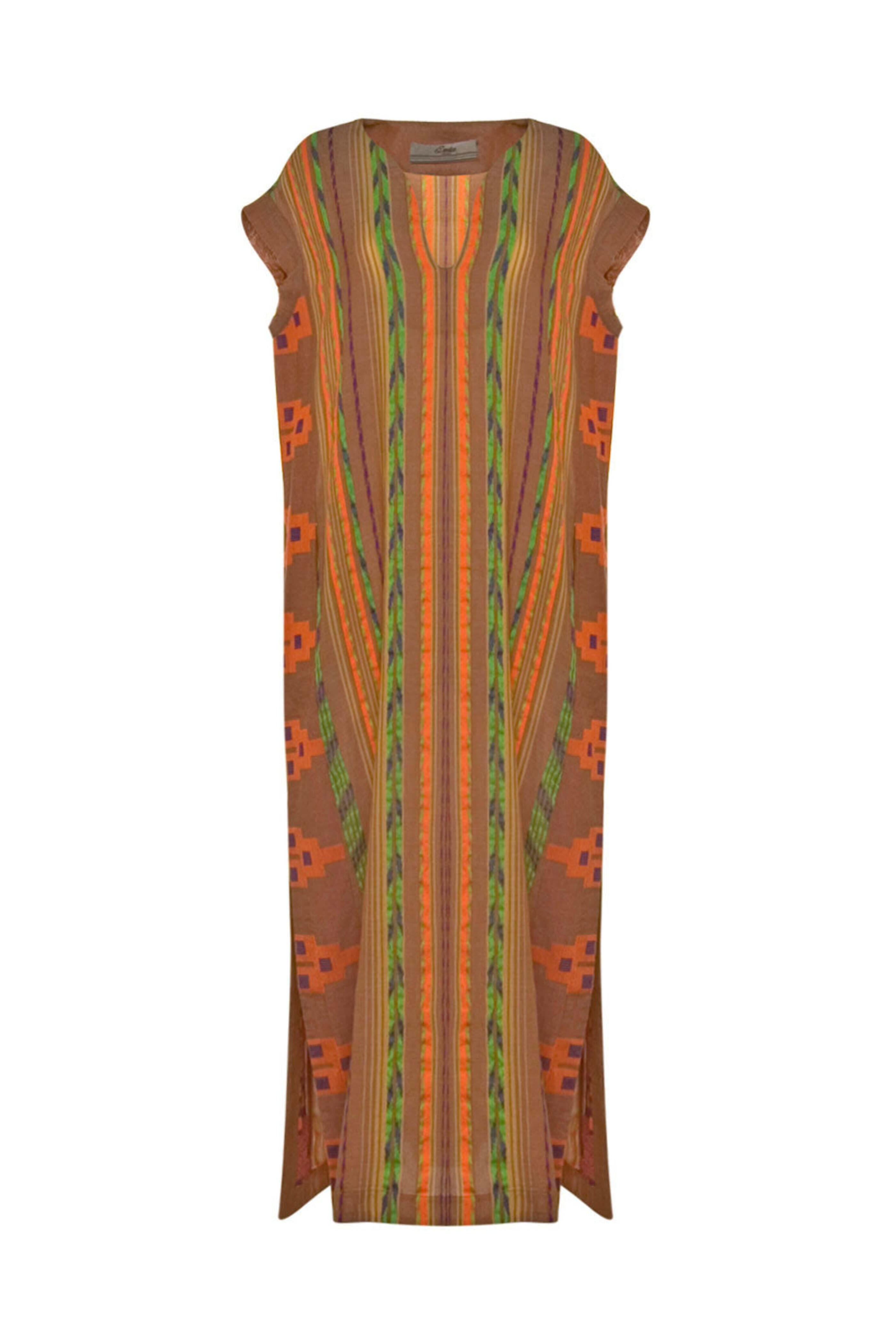 Beige and Orange Stripe Achatis Caftan Maxi Dress