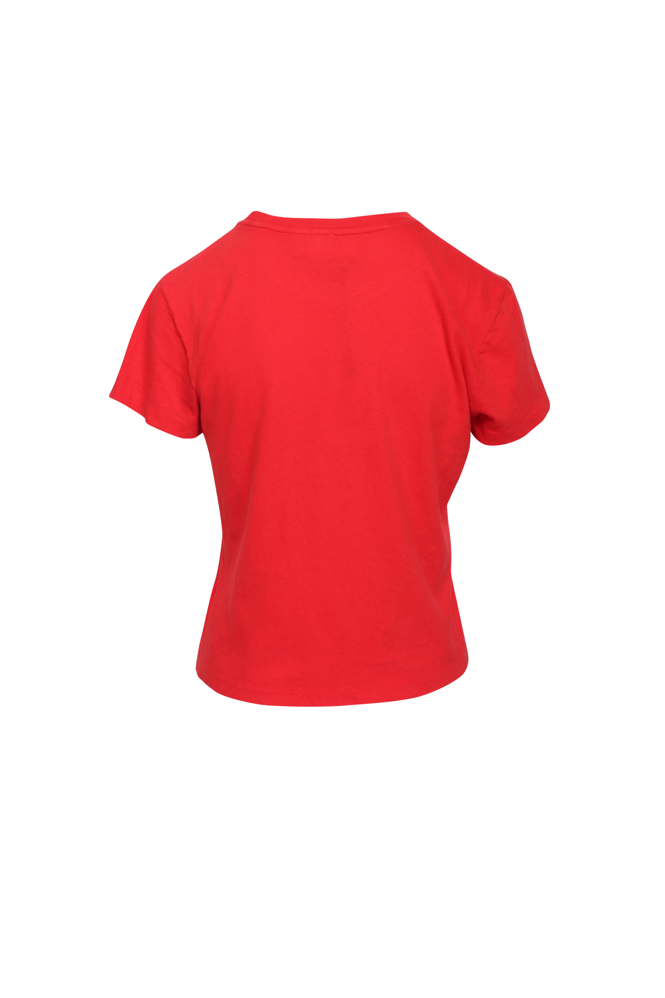 Crewneck. Short sleeves. Relaxed fit. Straight hem. “I Am What I Am” graphic. Made in USA. Length 21.5” (Size S). 100% cotton. Handwash.