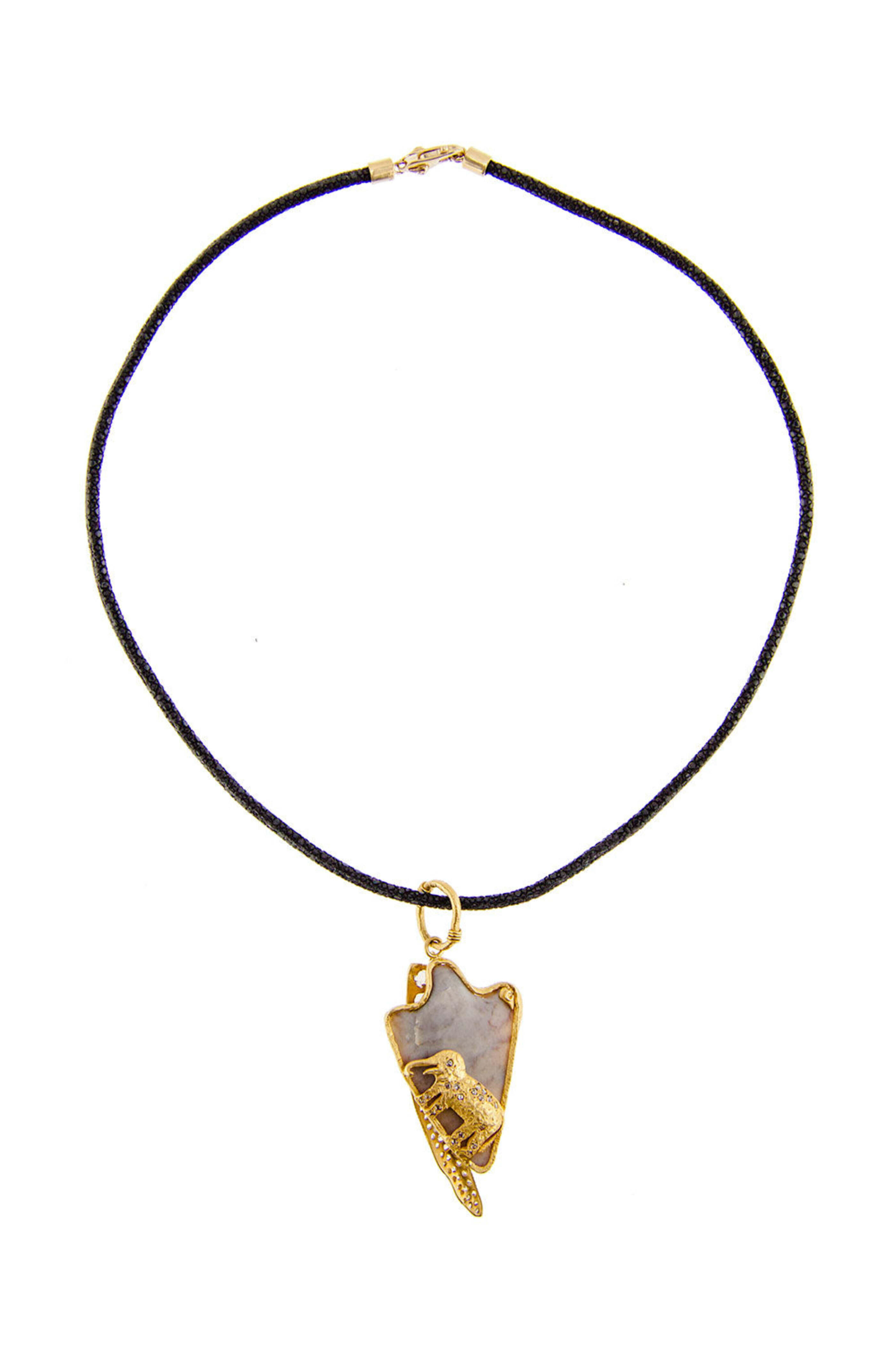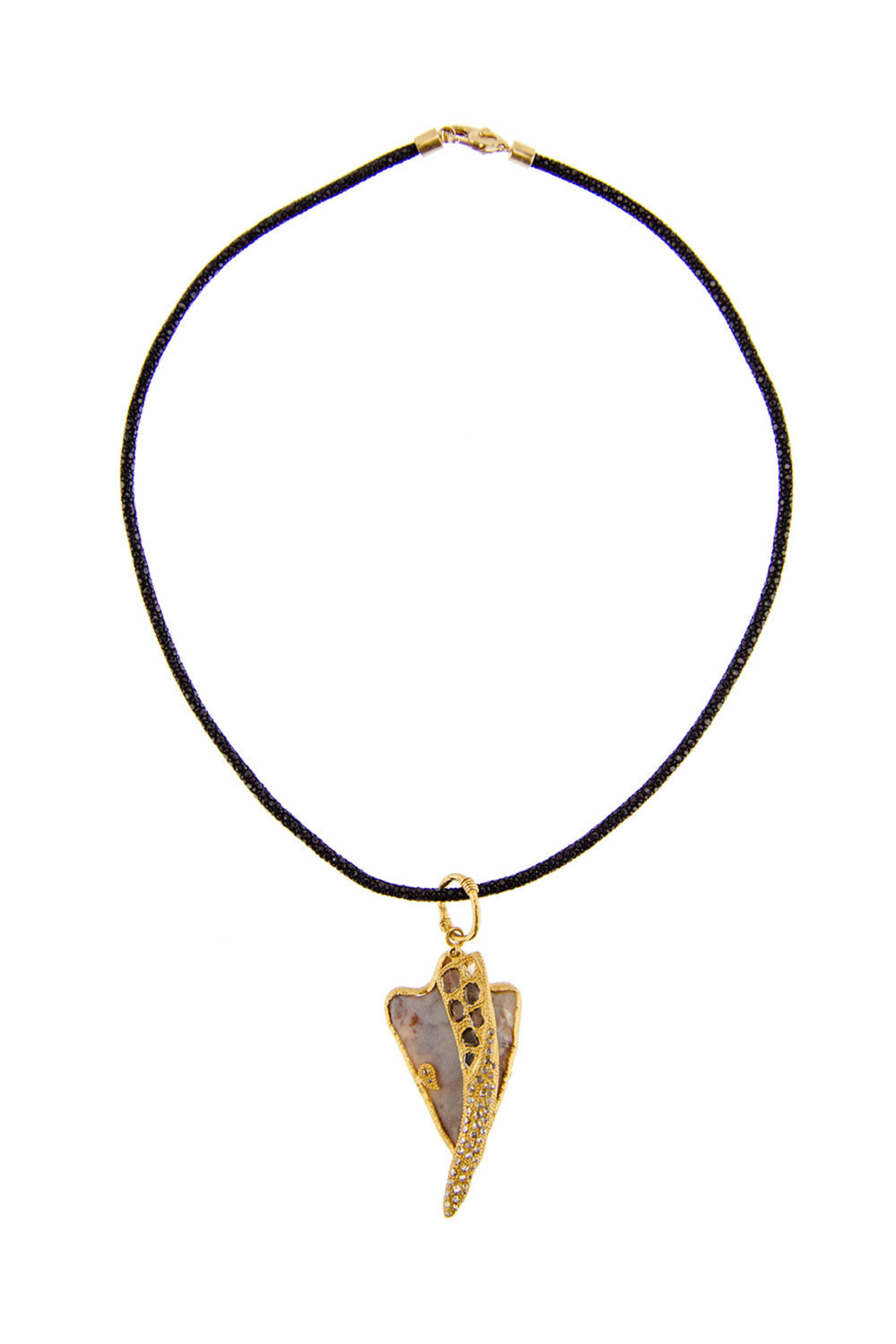 Coomi Black Stingray Cord Necklace Black stingray leather cord necklace with gold hardware 20k yellow gold 20" long Lobster clasp closure Shown with Antiquity Arrowhead Pendant.