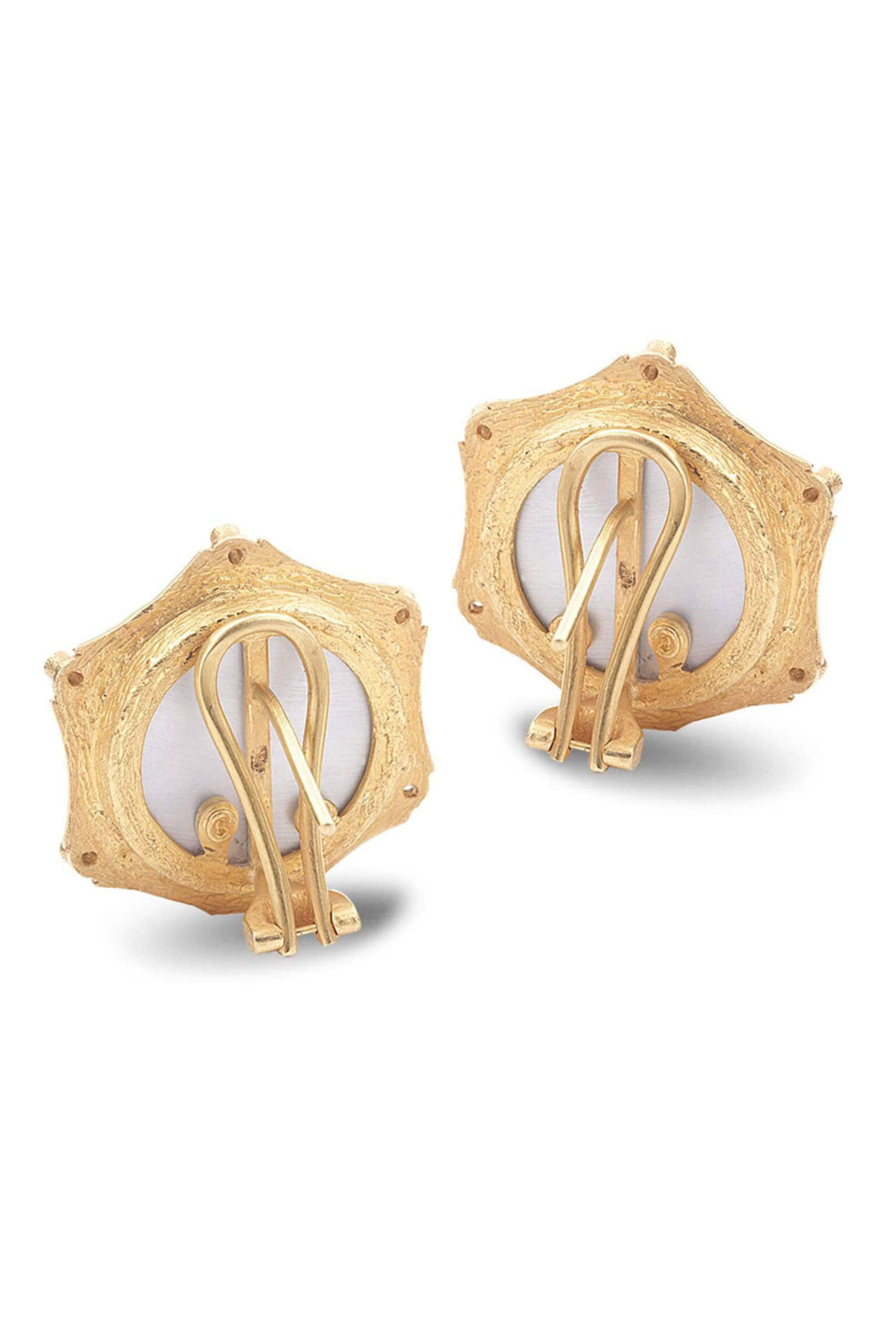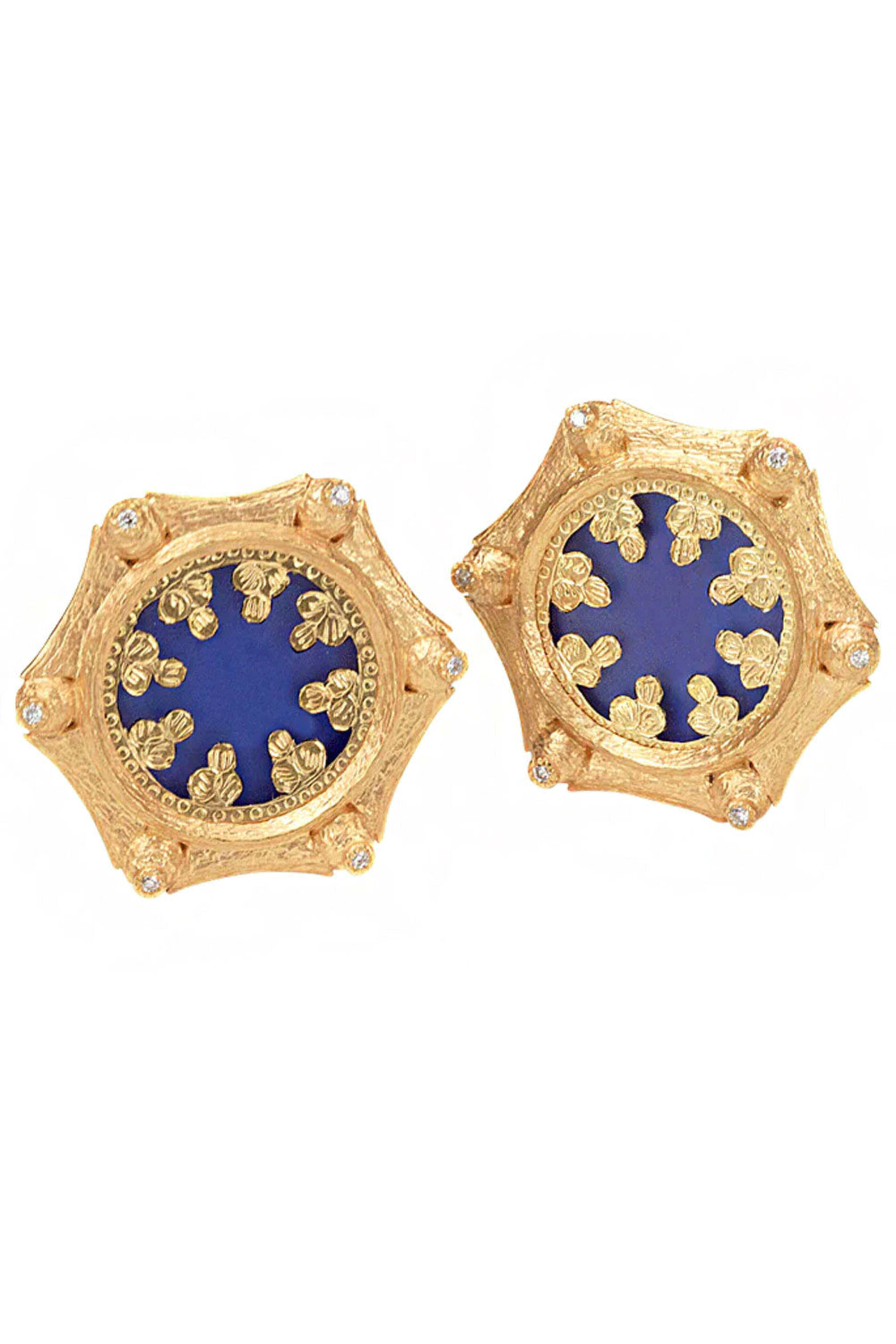 Coomi Thewa Blue Glass and Diamond Earrings. 20k gold. Diamond. Mother of pearl. Blue glass. 1 L. Push back with clasps.