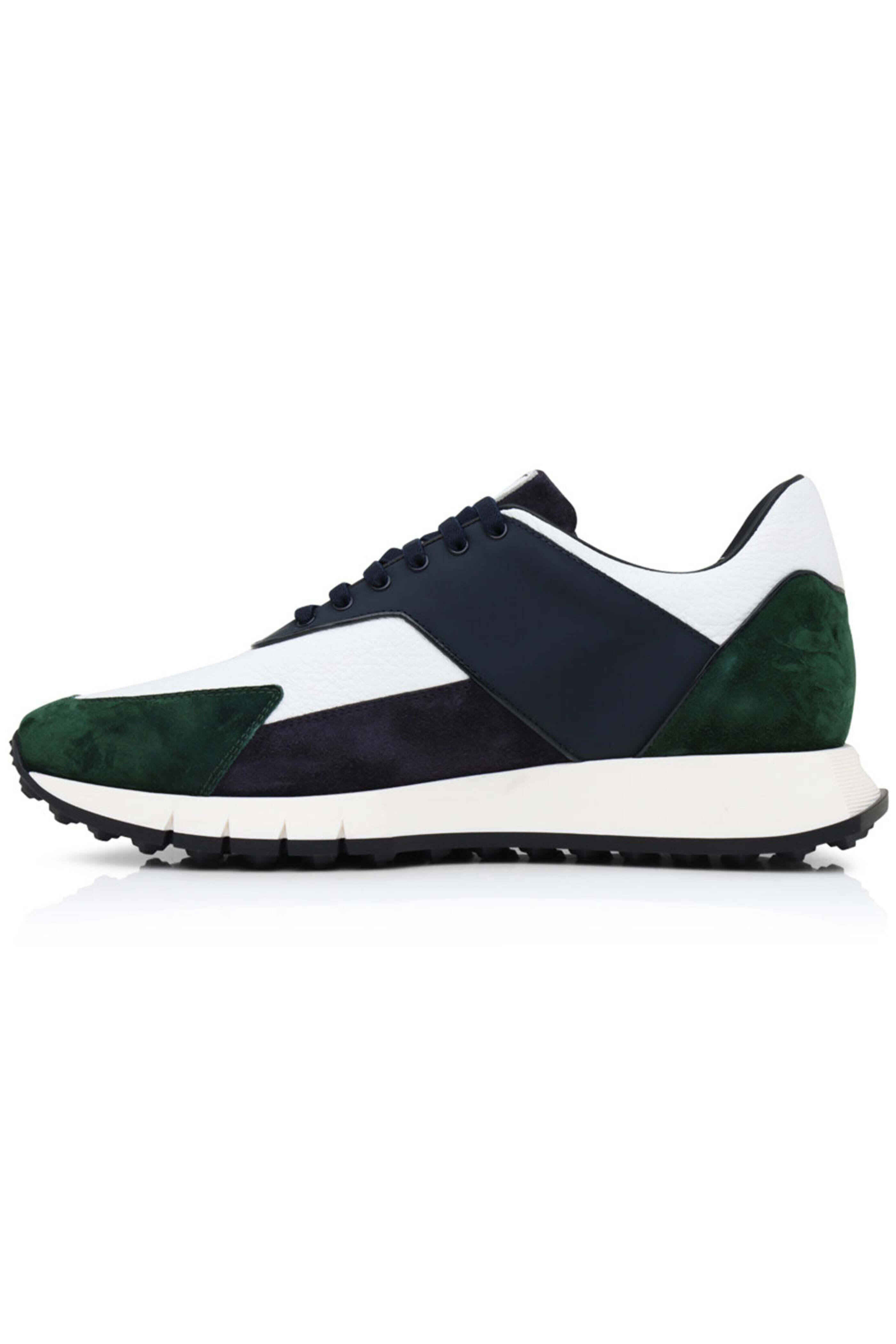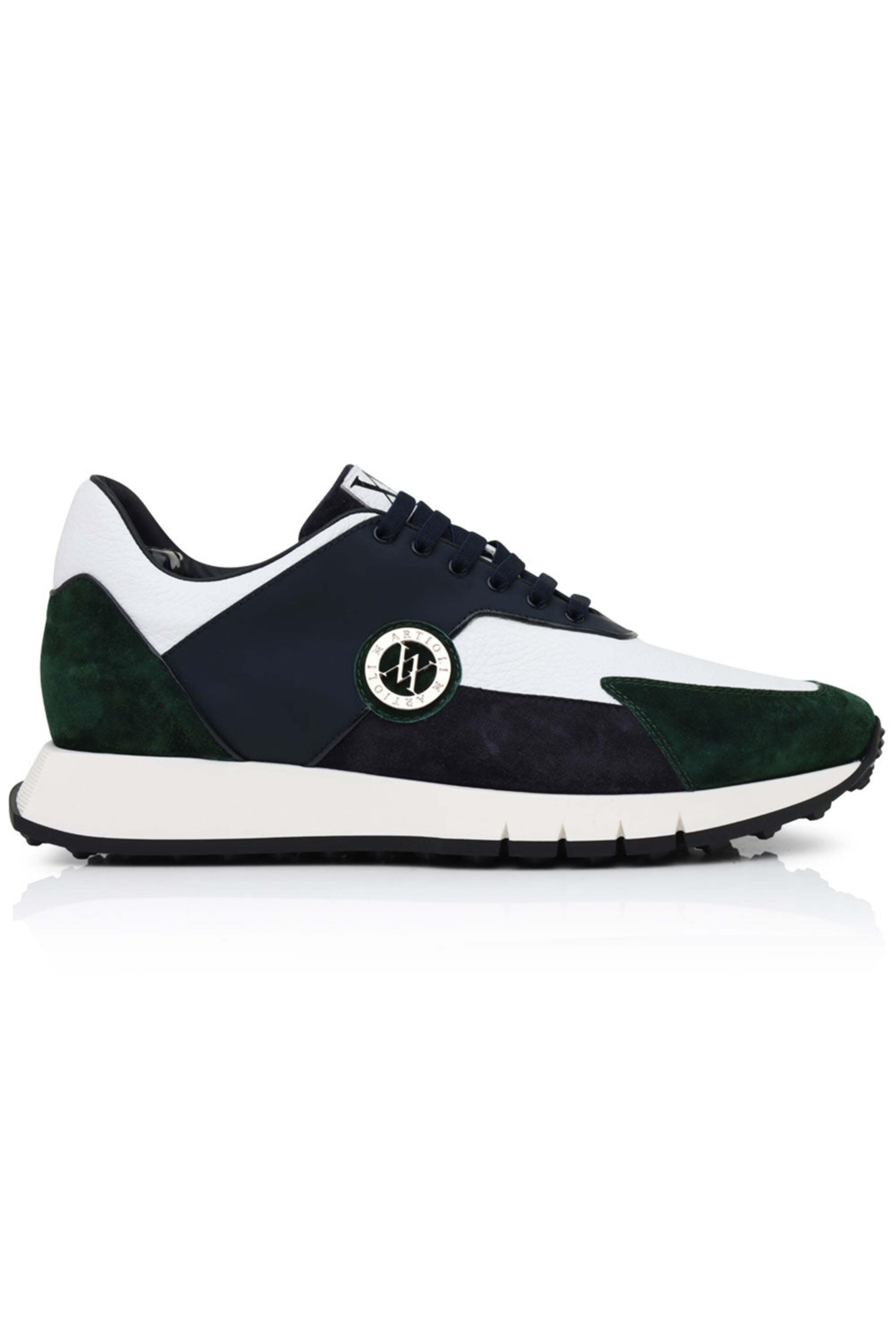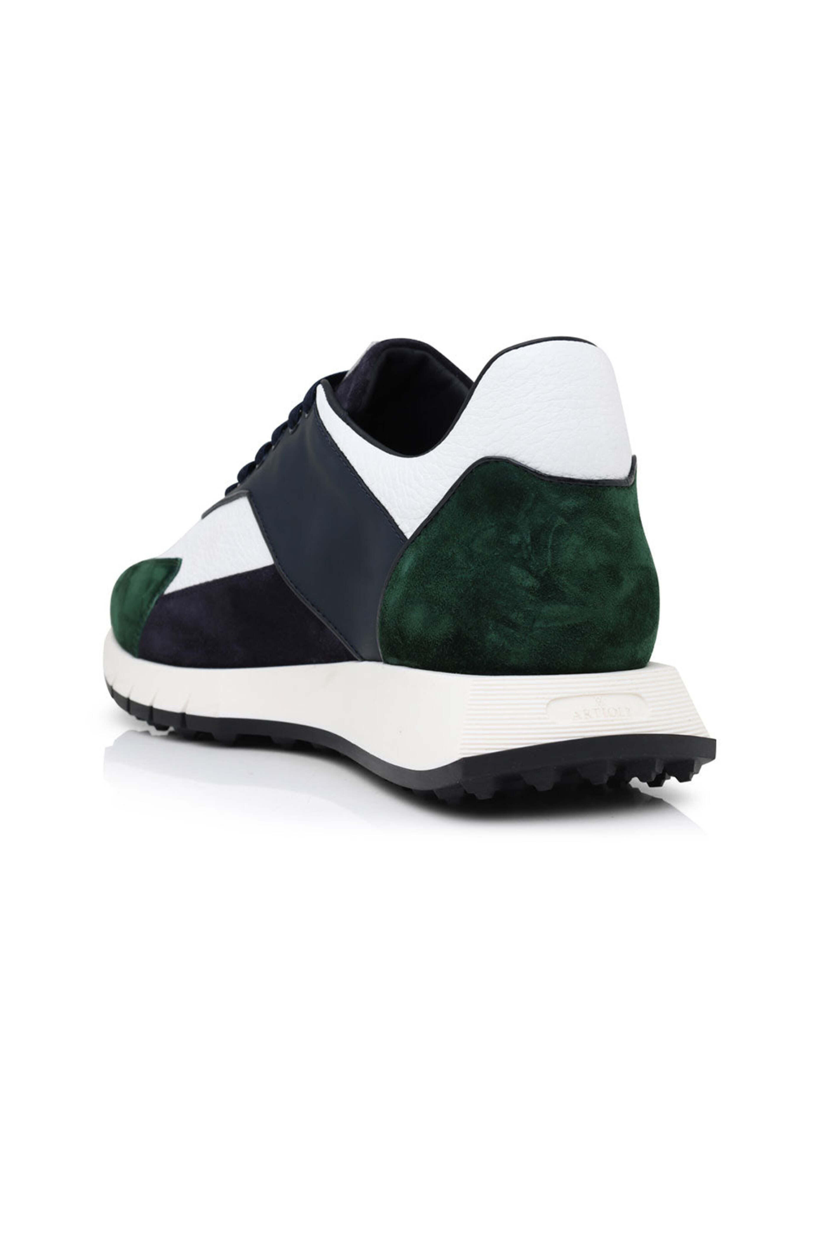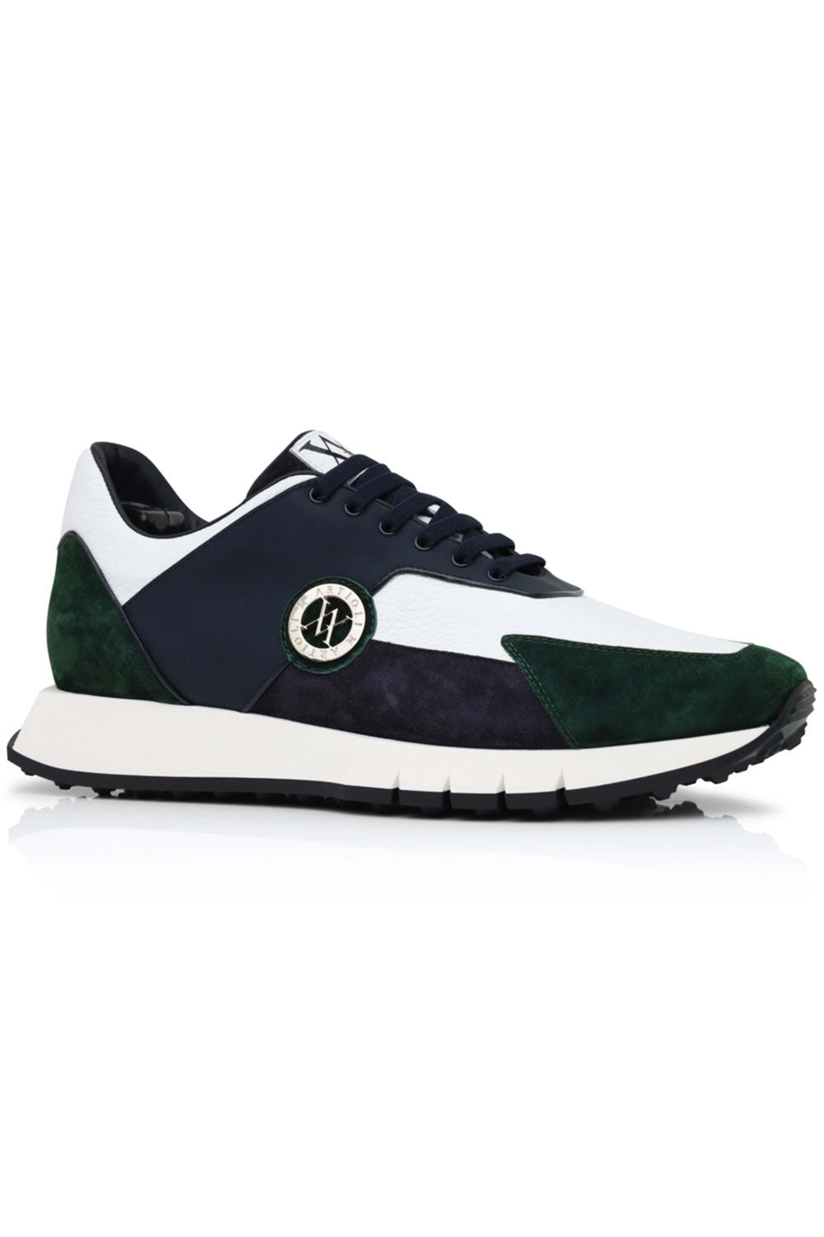 - Artioli Leather and Suede Sneaker in Green and Blue
