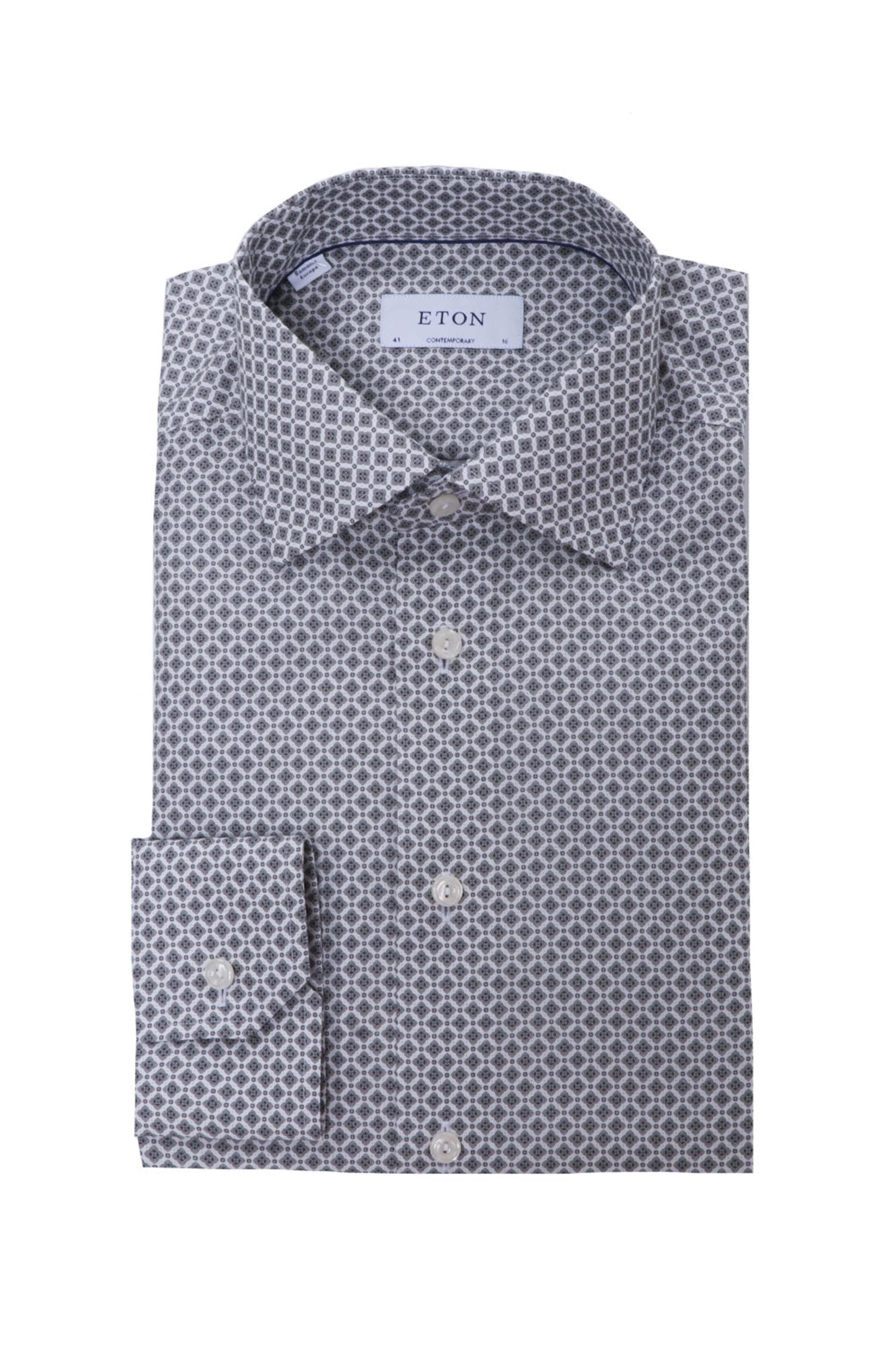 Eton Beige Medallion Dress Shirt. Semi-spread collar. Long sleeves. Button down closure. Single button mitered cuffs. Contemporary fit. 60% Cotton, 40% lyocell.