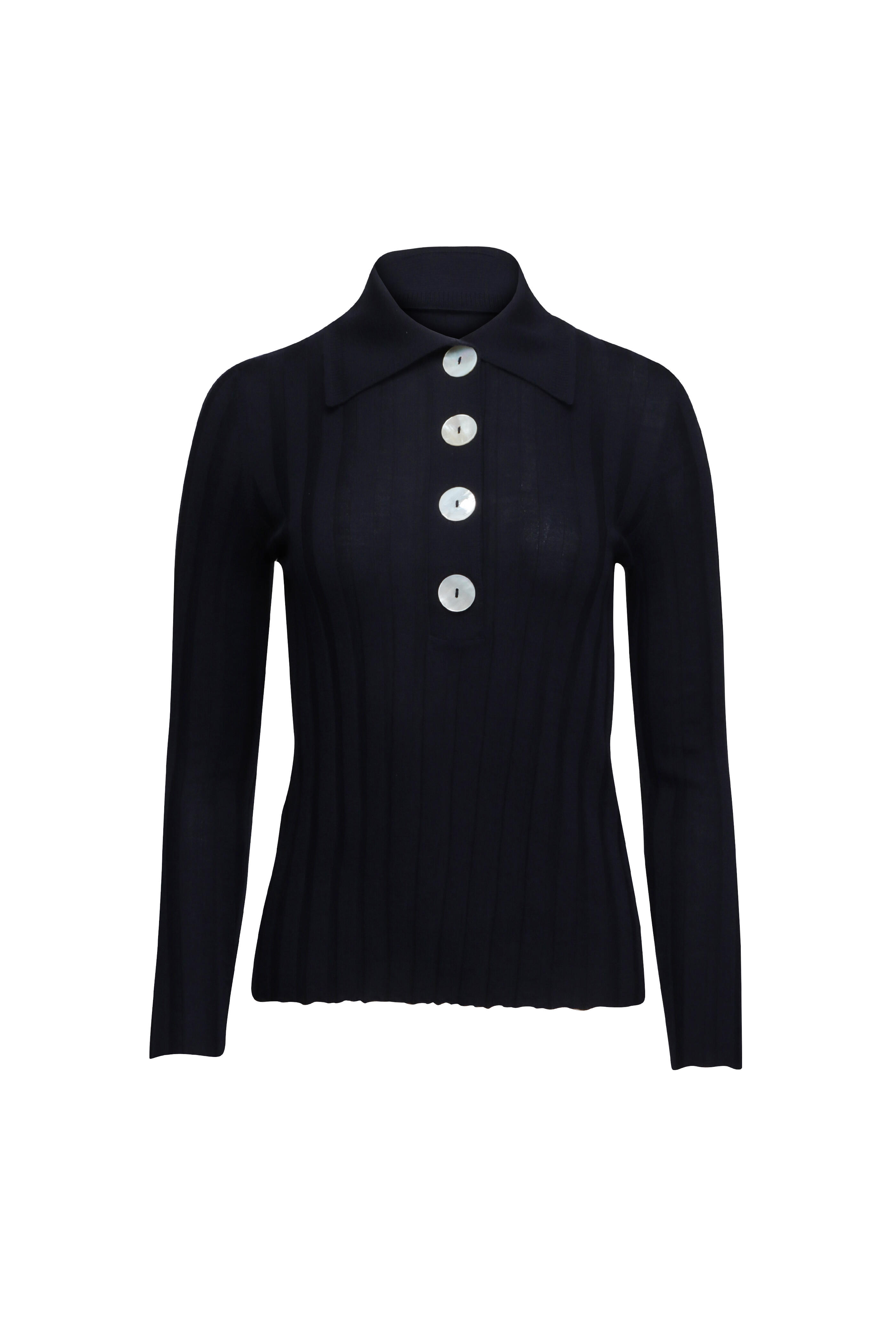 • Nackiye - Sugarman Navy Long Sleeve Knit Polo