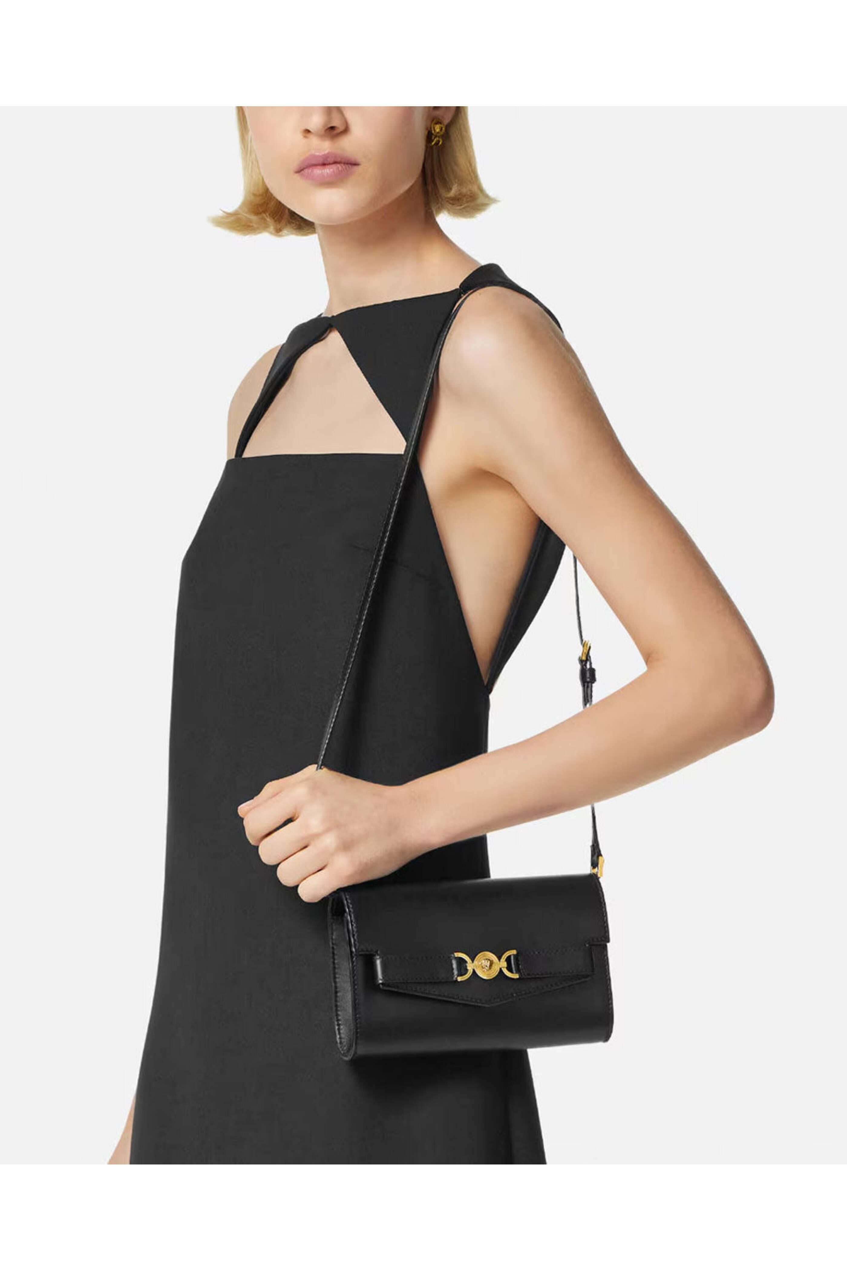 - Versace Mini Medusa 95 Crossbody Bag in Black and Gold