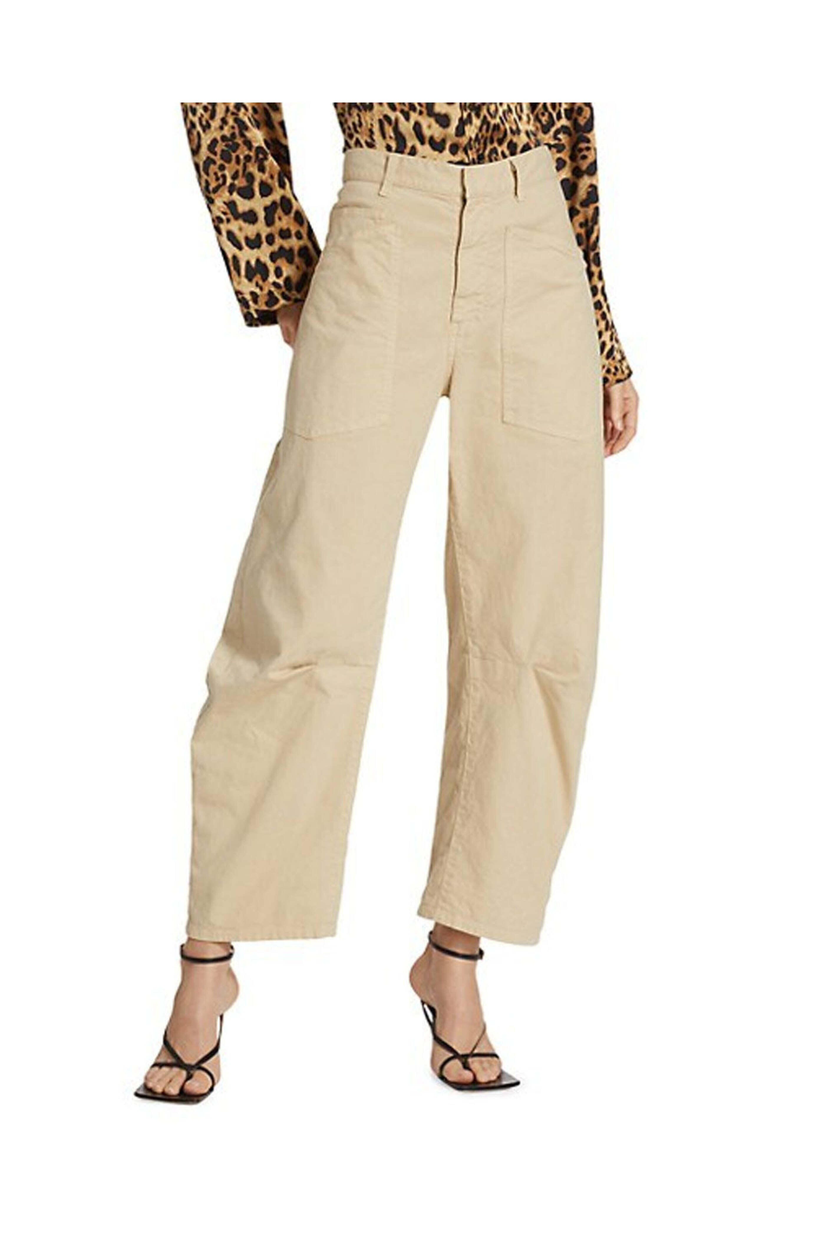 Nili Lotan Sandstone Shon Pant. Belt loops. Zip fly and hook-and-eye closure. Front patch pockets. Back patch pockets. Wide leg . Relaxed fit . 98% cotton/2% elastane.
