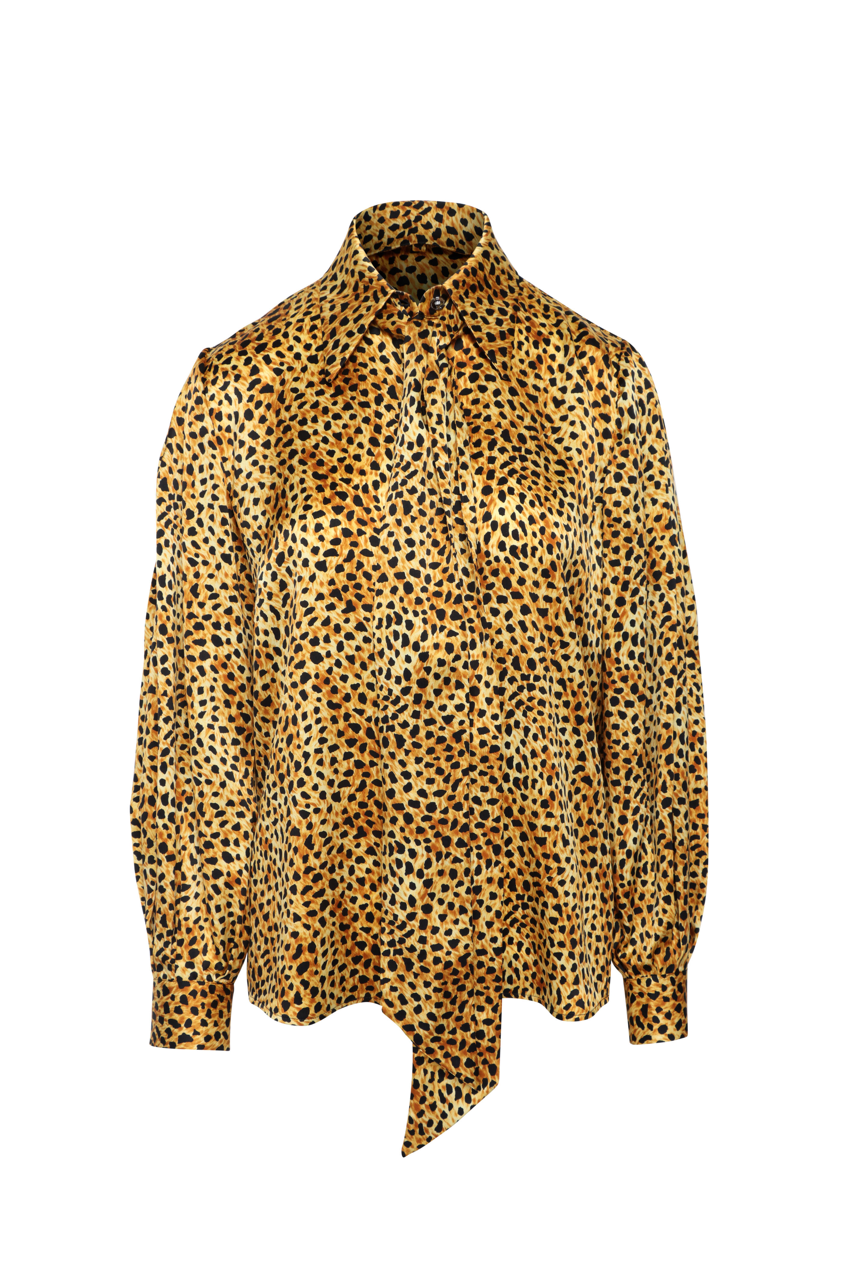 Animal Print Silk Tie Neck Blouse