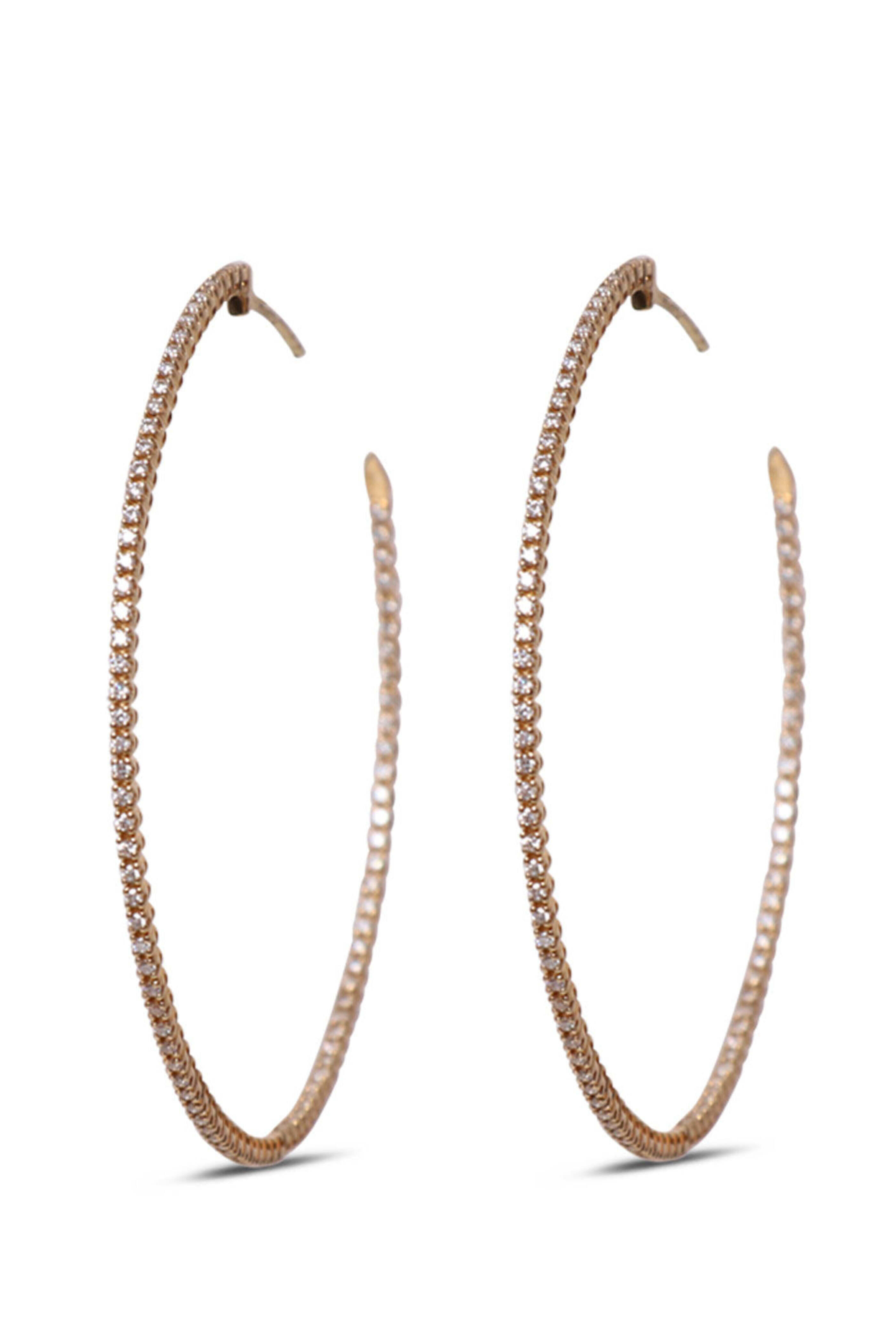 Coomi Diamond Hoops. 18k yellow gold. Diamond 0.85 total carat weight. 2€™ diameter. Push back post.