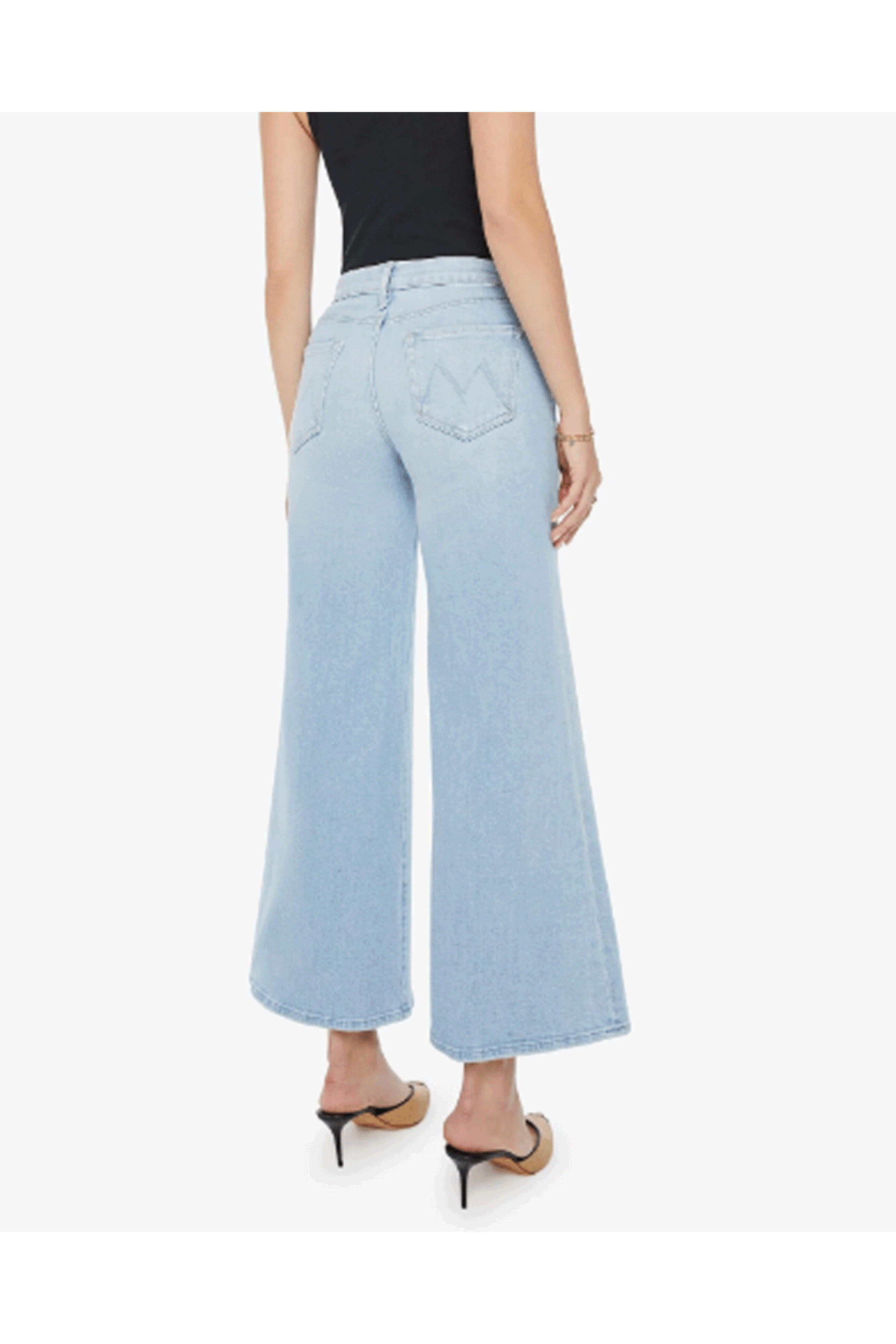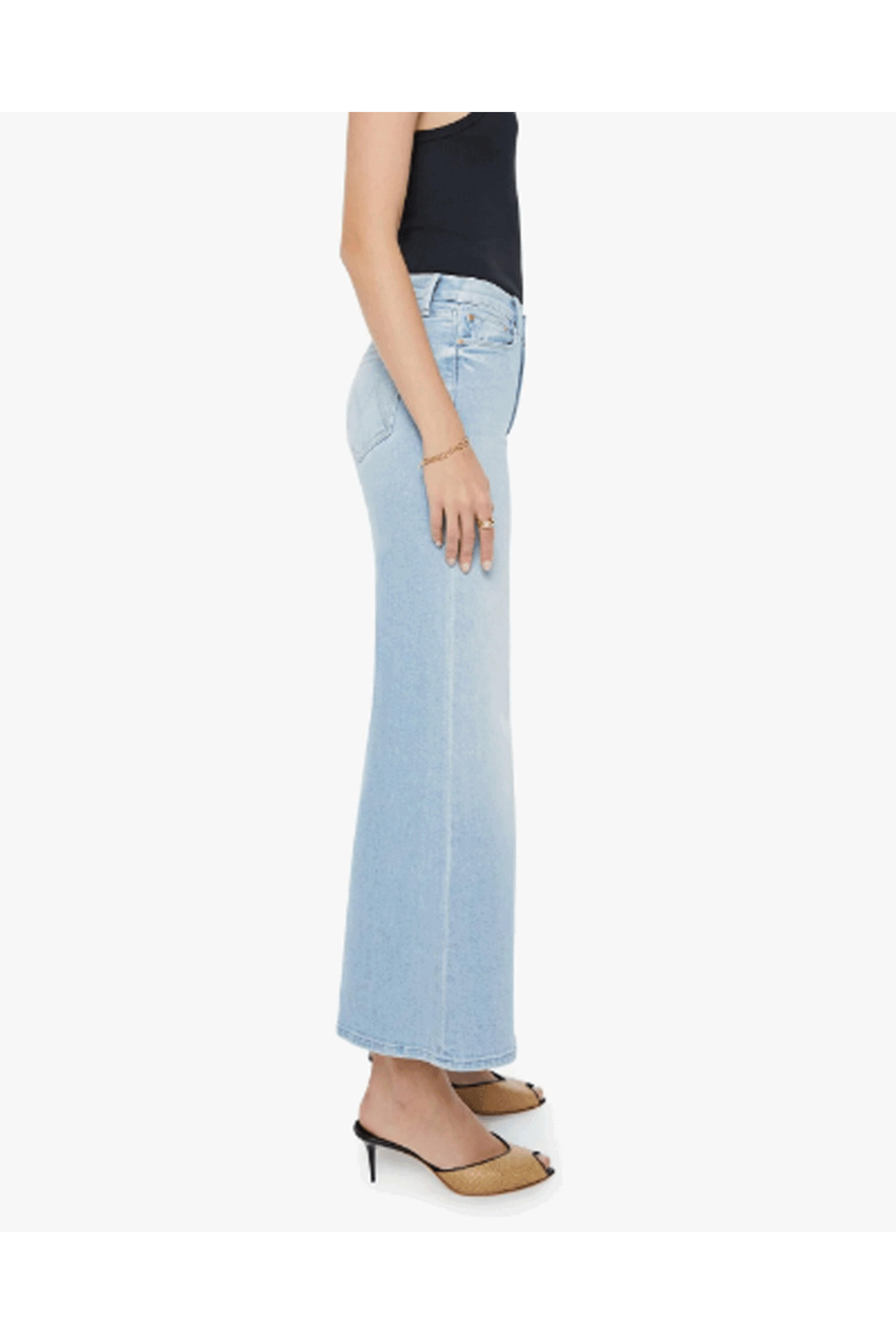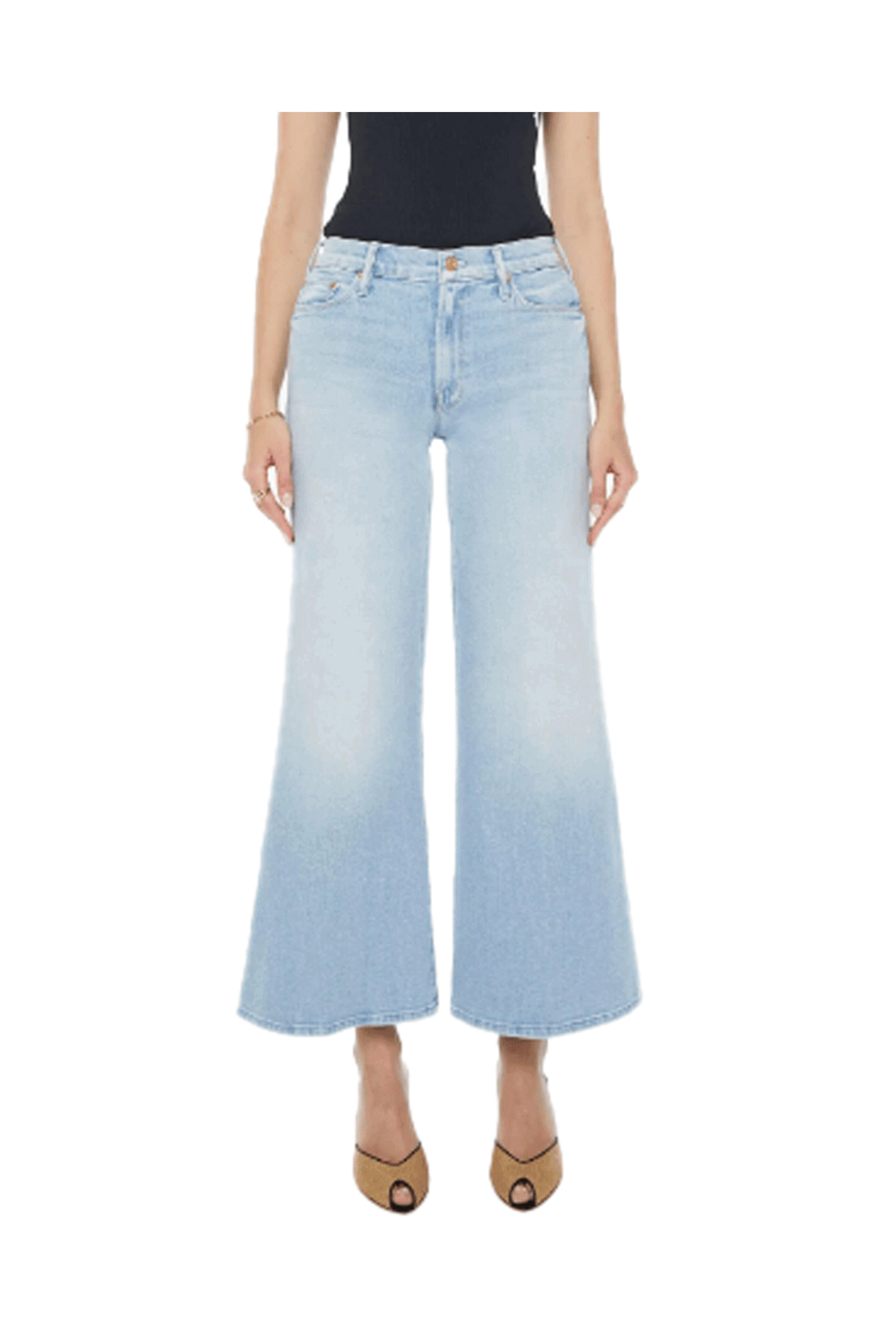 Mother The Twister Flood Jean in Lost Art. High rise. Button Closure. Zip fly. Five pocket style. Wide leg silhouette. Ankle length. Semi rigid denim fabrication. Made in LA. 96% cotton, 3% polyester, 1% elastane.