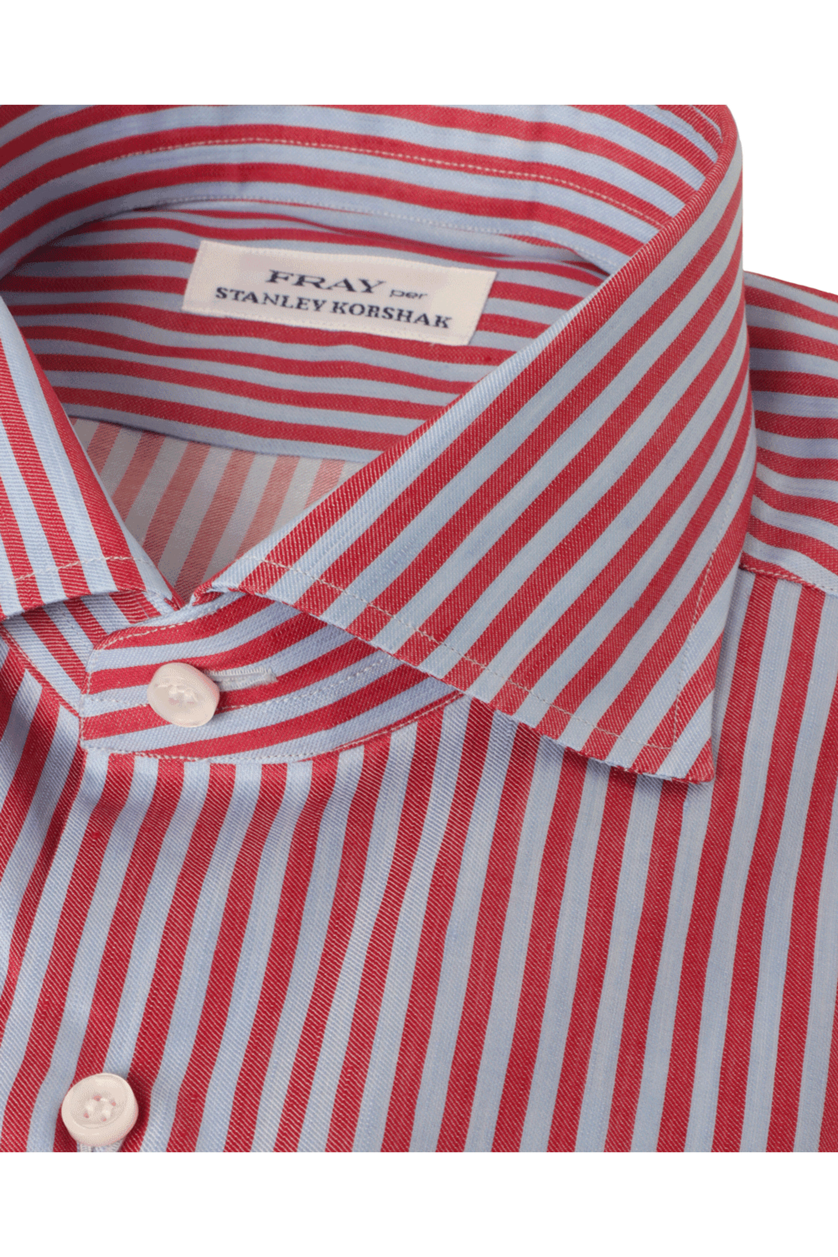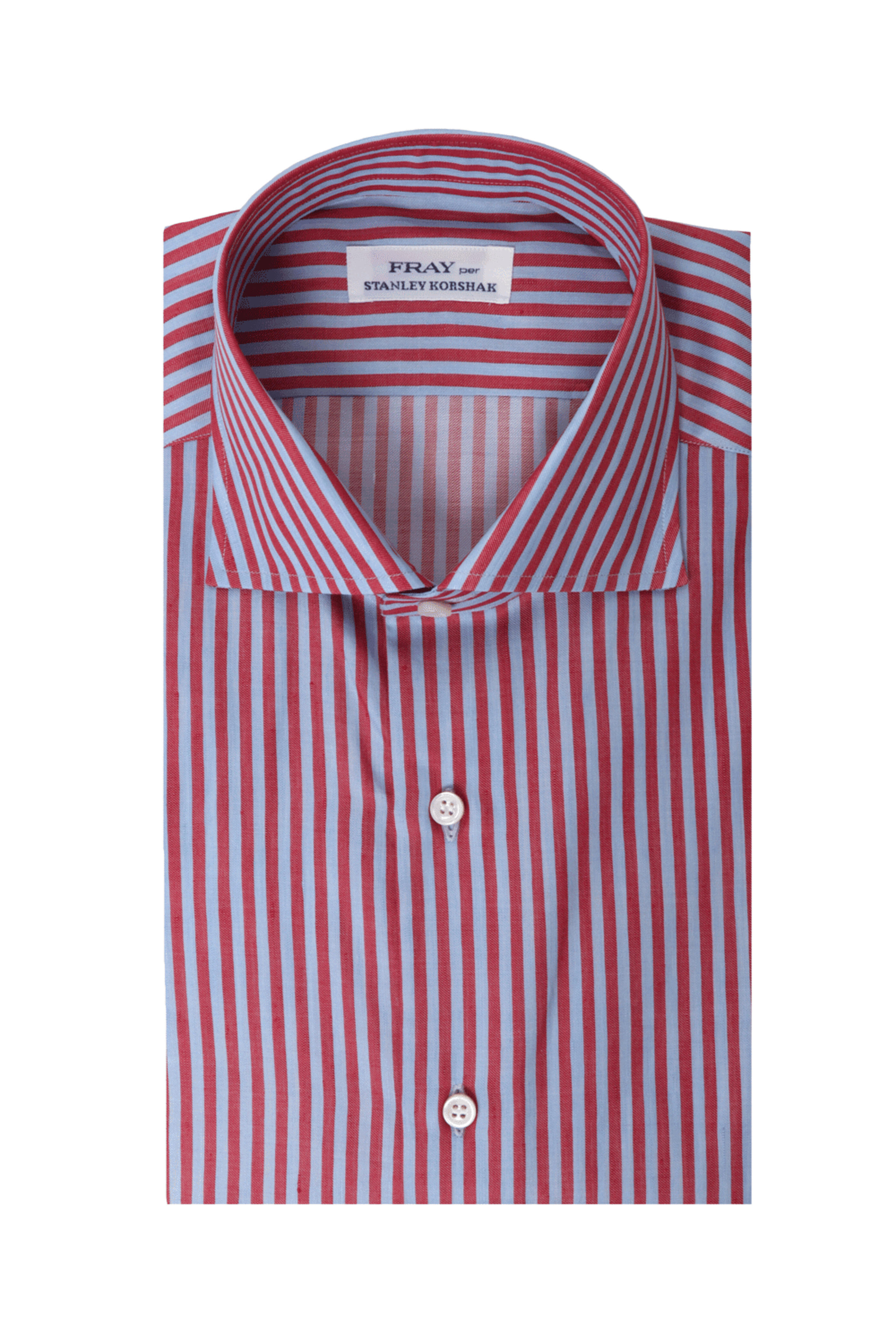 Spread collar. Button down front closure. Rounded barrel cuffs. Long sleeves. SK exclusive. Made in Italy . 65% cotton, 35% linen.