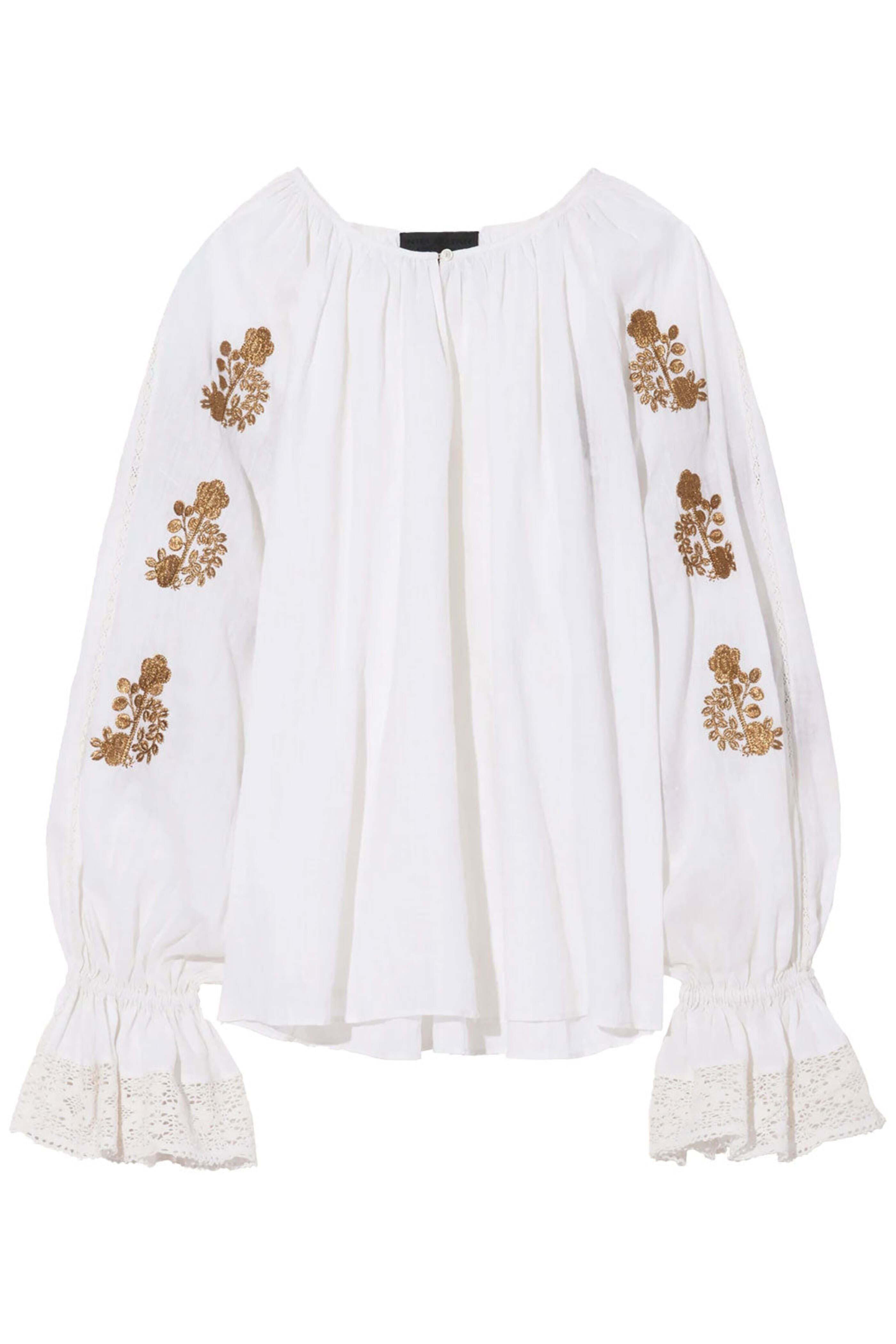 - Nili Lotan Gold Embroidered Fleurine Blouse