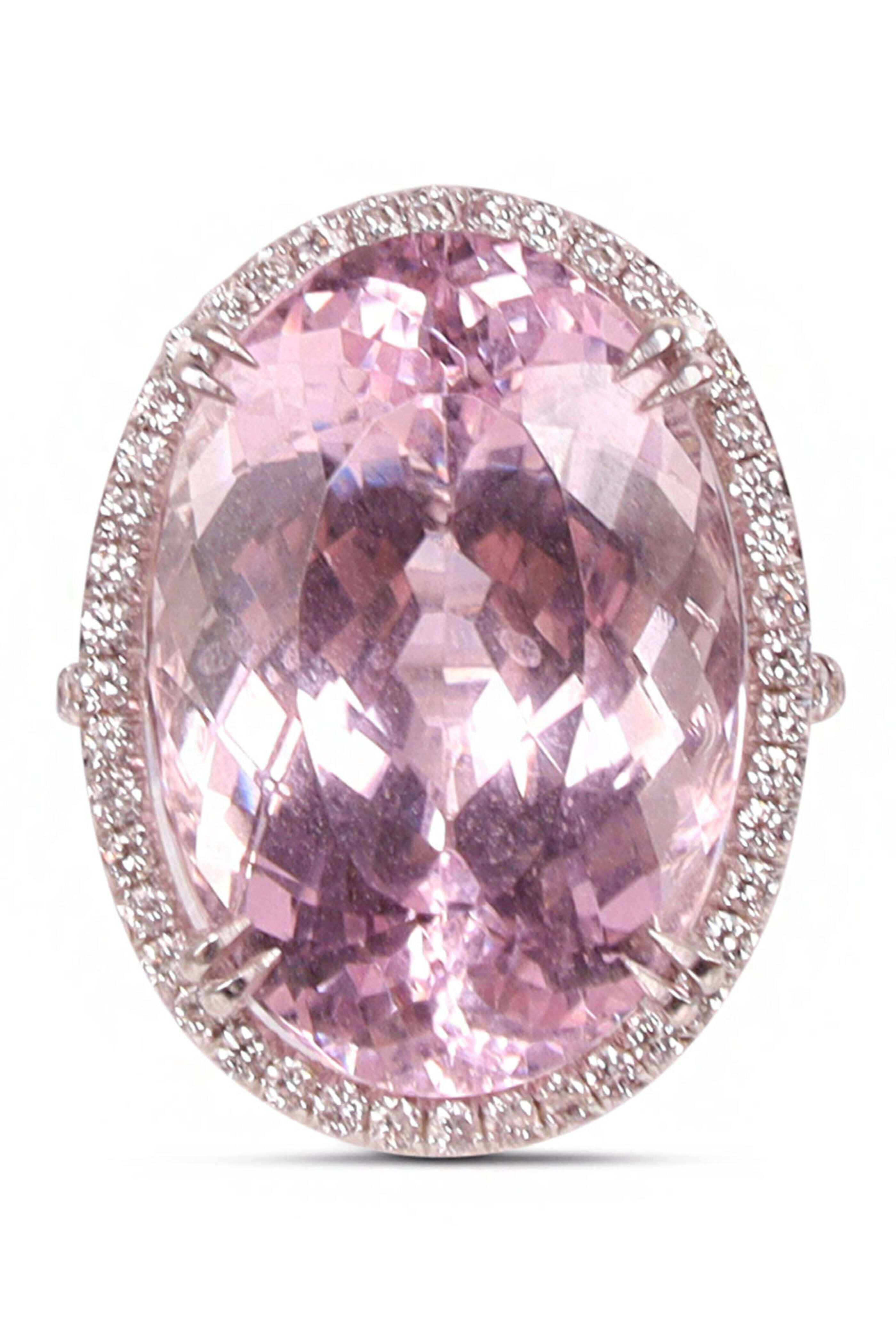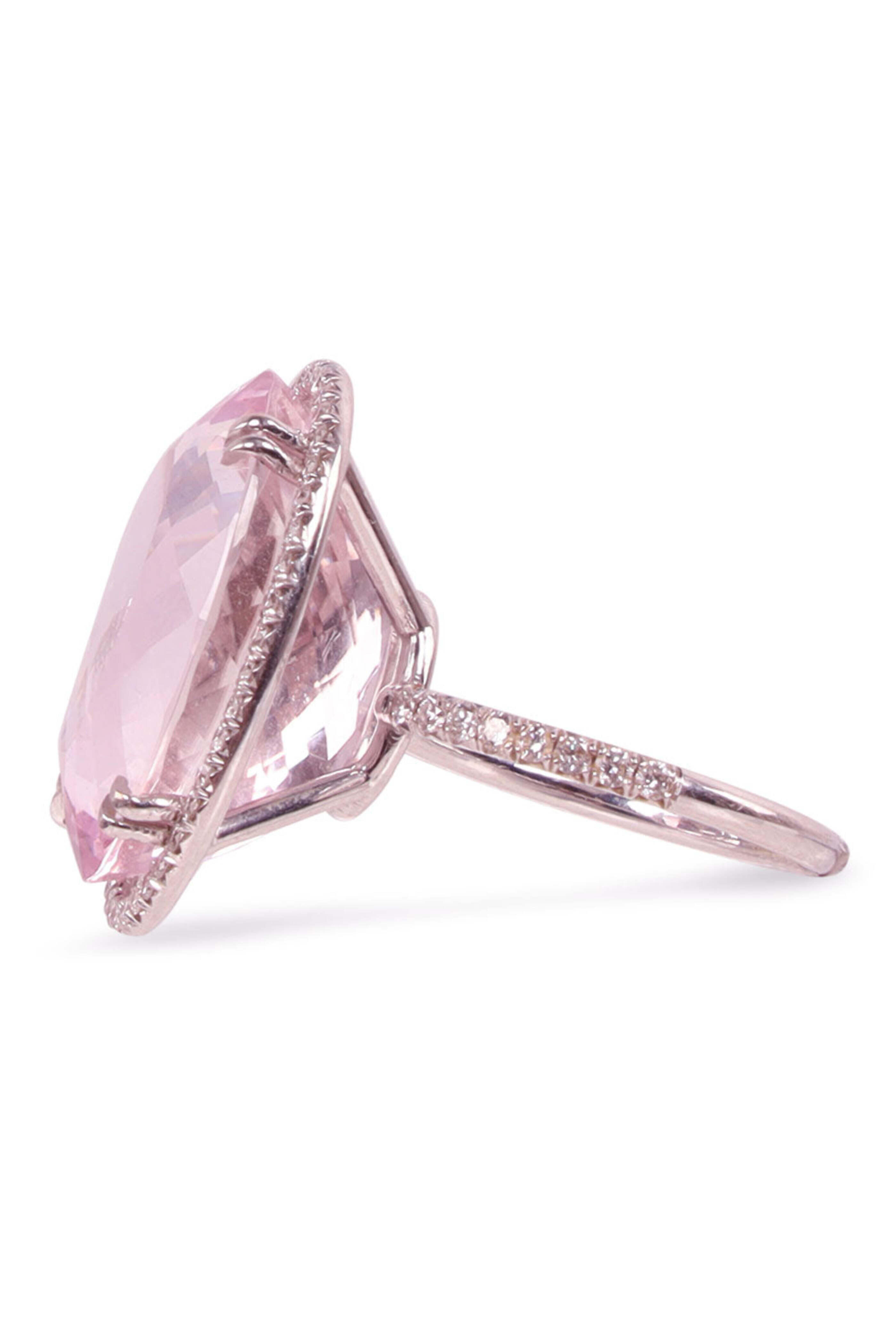 Darlene de Sedle Diamond and Kunzite Mirco Ring. 14k white gold. Pavé diamond 0.70 total carat weight. Kunzite 24.59 total carat weight. Large kunzite center with diamonds surrounding. Call for ring size.