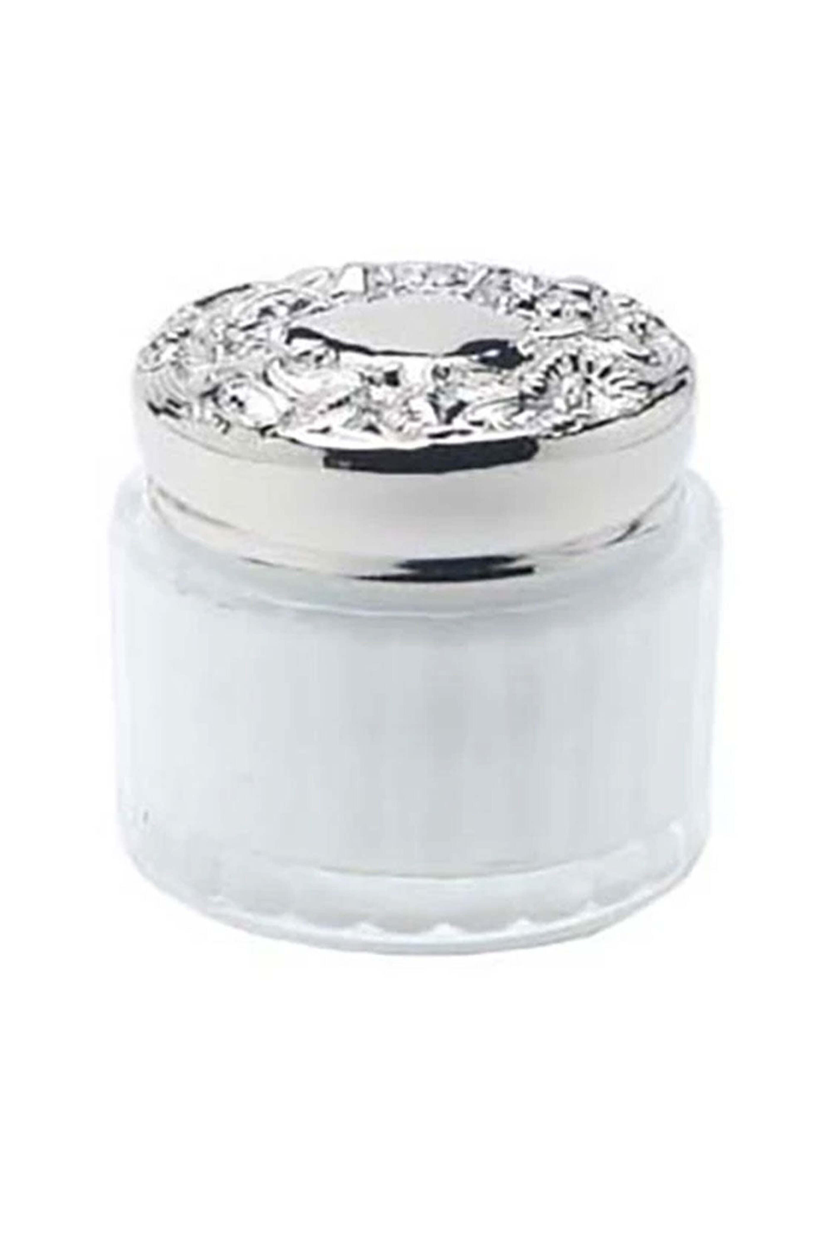 Lady Primrose Tryst Body Cream. Good for all skin types. Locks in moisture. Use day and night for best results. Vitamins C & E, peptides increase collagen levels, brightens and replenishes skin. Silver lids are nickel-plated and tarnish-free which means they'll last forever! . Lids suitable for engraving making jar a beautiful, personalized keepsake! . Reuse jar when empty for your own special treasures or collectibles! . 5 ounces. 3 x 3.25". Glass.
