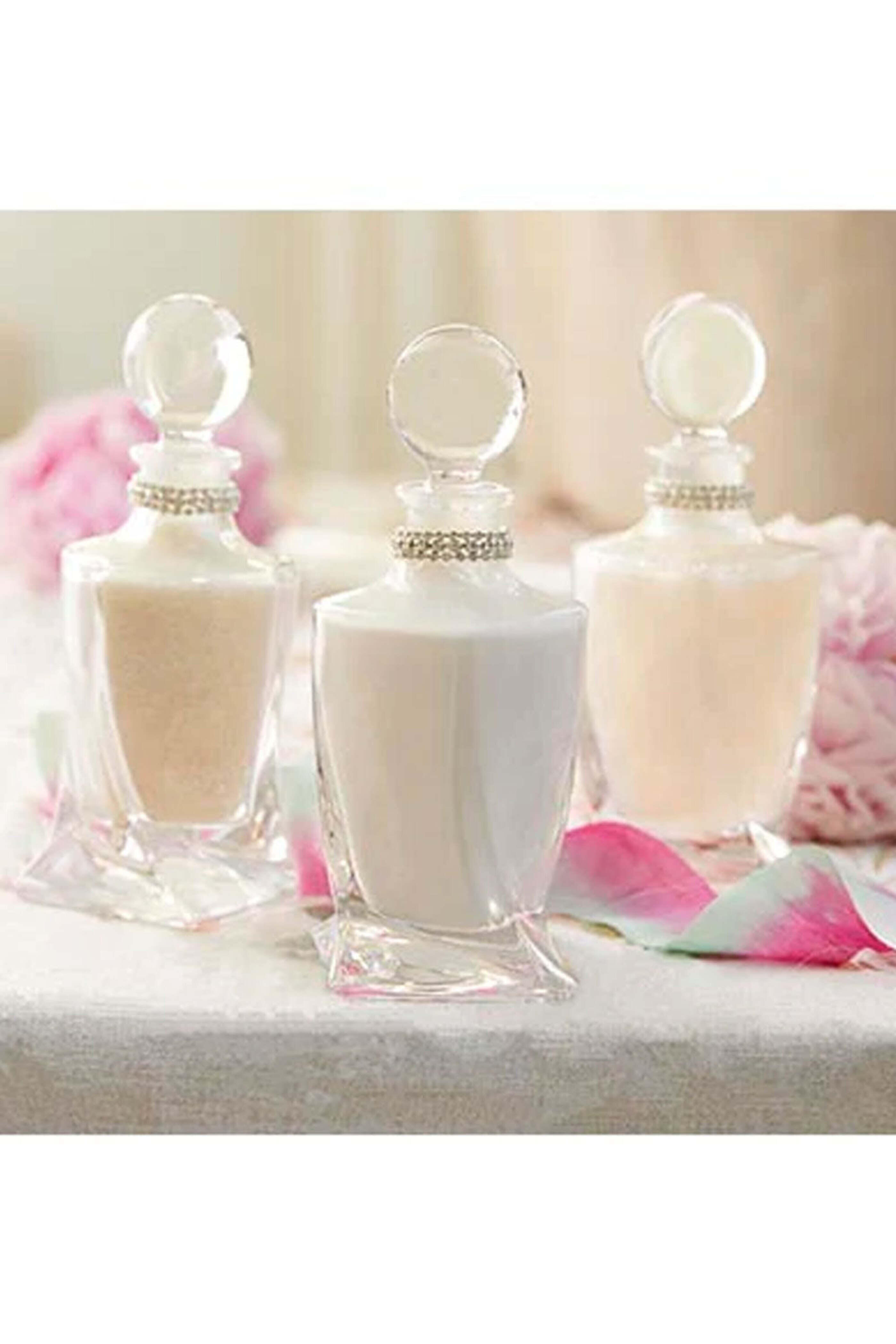 Lady Primrose Tryst Lotion Petite Decanter. Lotion infused with our Tryst scent, pearly white hue. Notes: white tea, white lily, chamomile, green florals, jasmine, fleur d'orangery. This lotion shimmers, packing in the benefits of shea butter, sweet almond oil, Pro-Vitamin B5, and Vitamins E & C, enhancing this lotion to moisturize, nourish and protect skin. pH balanced. Beautiful decanter can be Refilled, Reused or Repurposed. Glass Decanter 7" tall x 2" base. 7 oz.