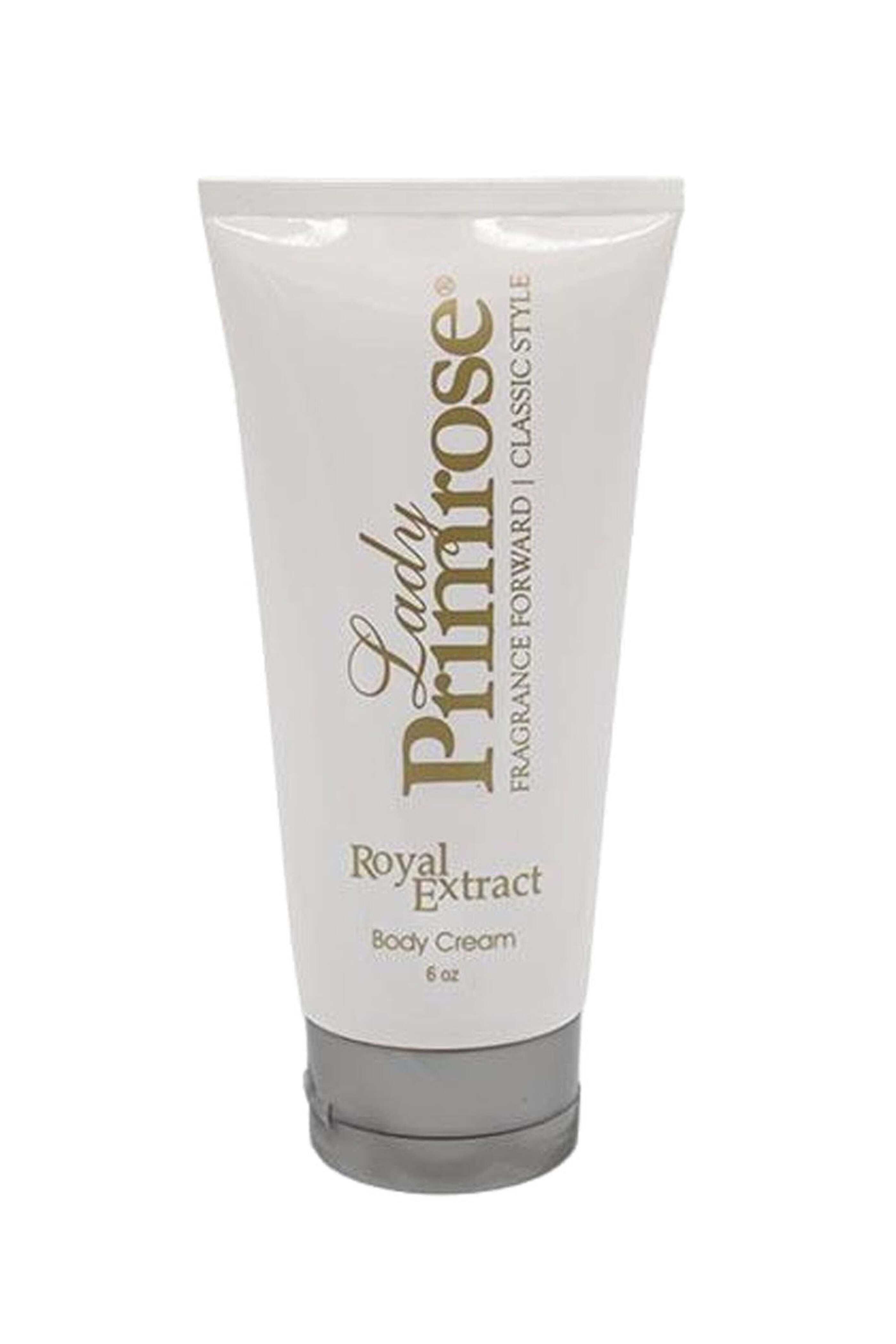 Lady Primrose Royal Extract Body Cream Refill. Creamy formula. Easy go-to option, works also to refill iconic glass jars. Infused with Royal Extract scent, light pink golden hue. Good for all skin types. 6 oz.