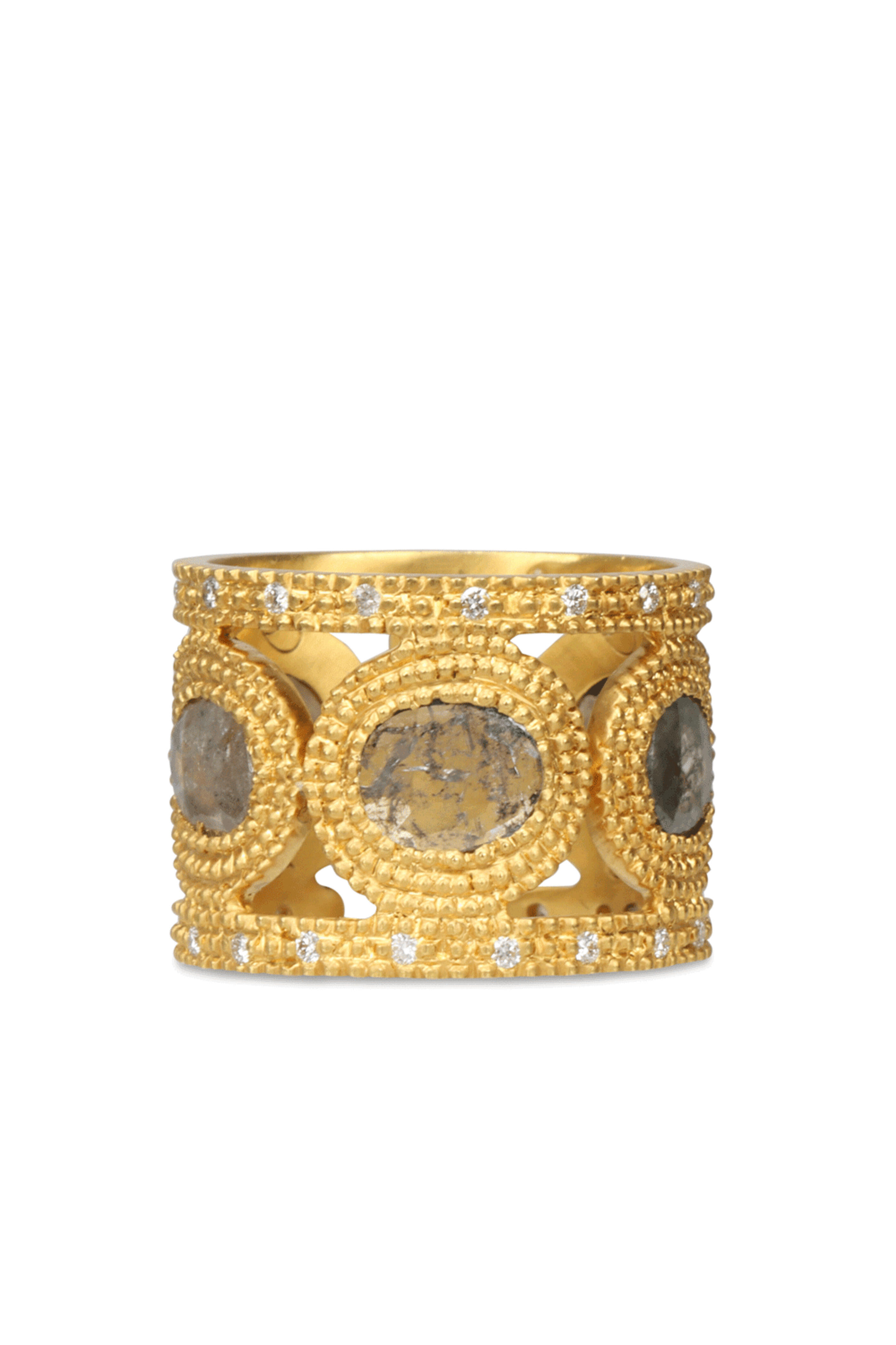 20k gold. Diamond 2.48 total carat weight. Double textured halo. Diamonds wrapped around bands. Cage design. Engraved detailing. Handmade. Ring size 7.